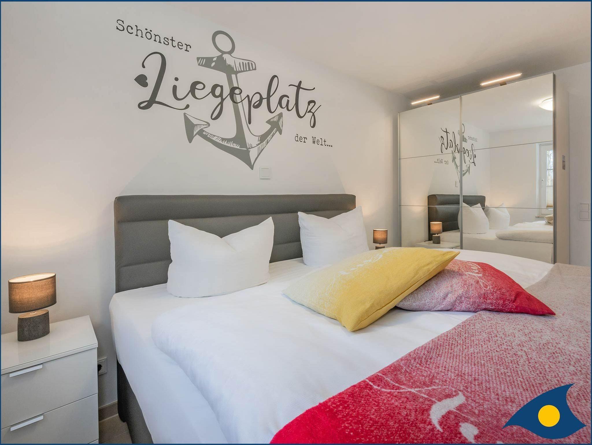 Das separate Schlafzimmer bietet ein Doppelbett, einen geräumigen Schrank für Ihre persönlichen Sachen und einen zweiten Fernseher. Das Badezimmer überzeugt mit einer ebenerdigen Dusche.