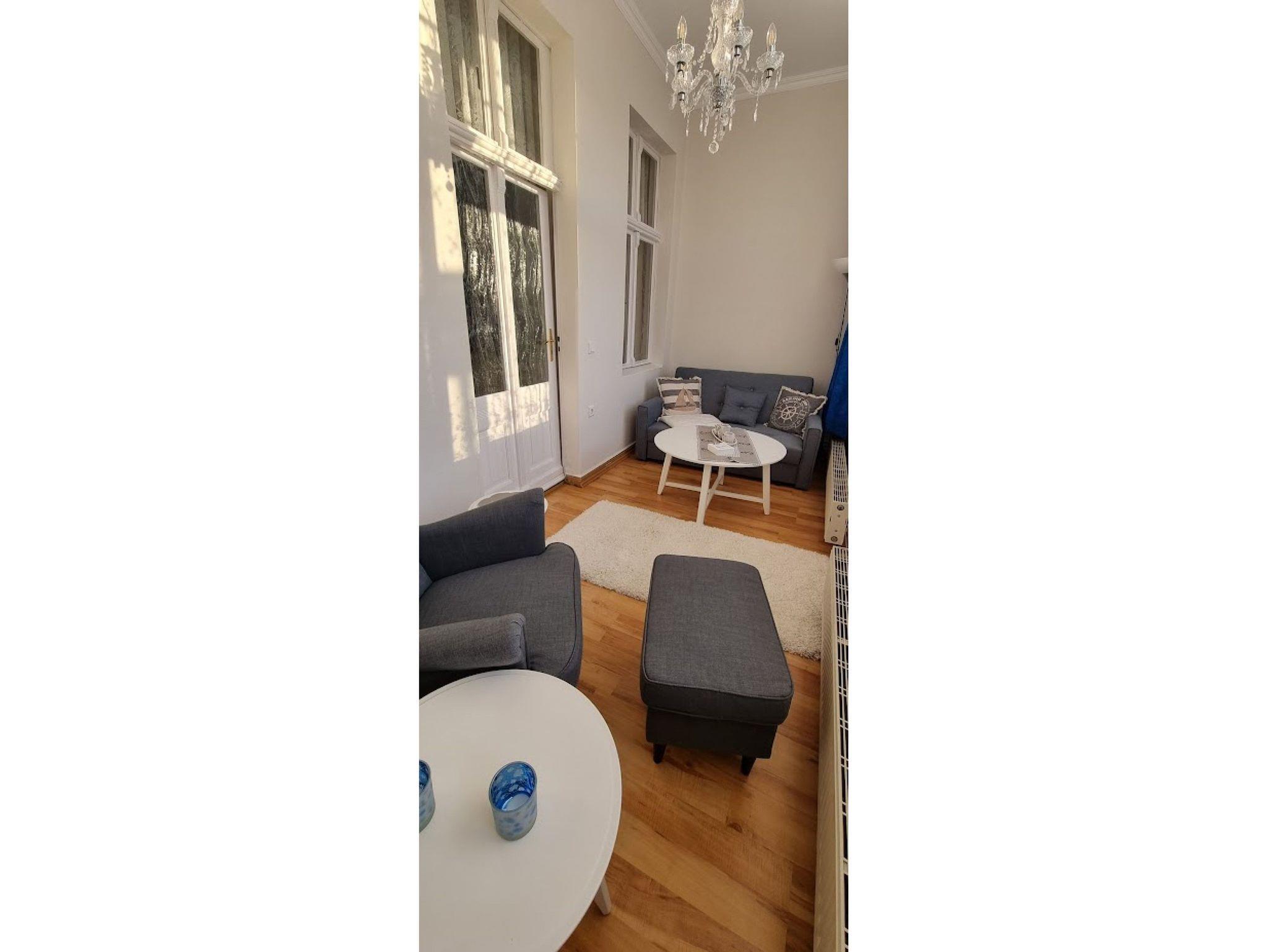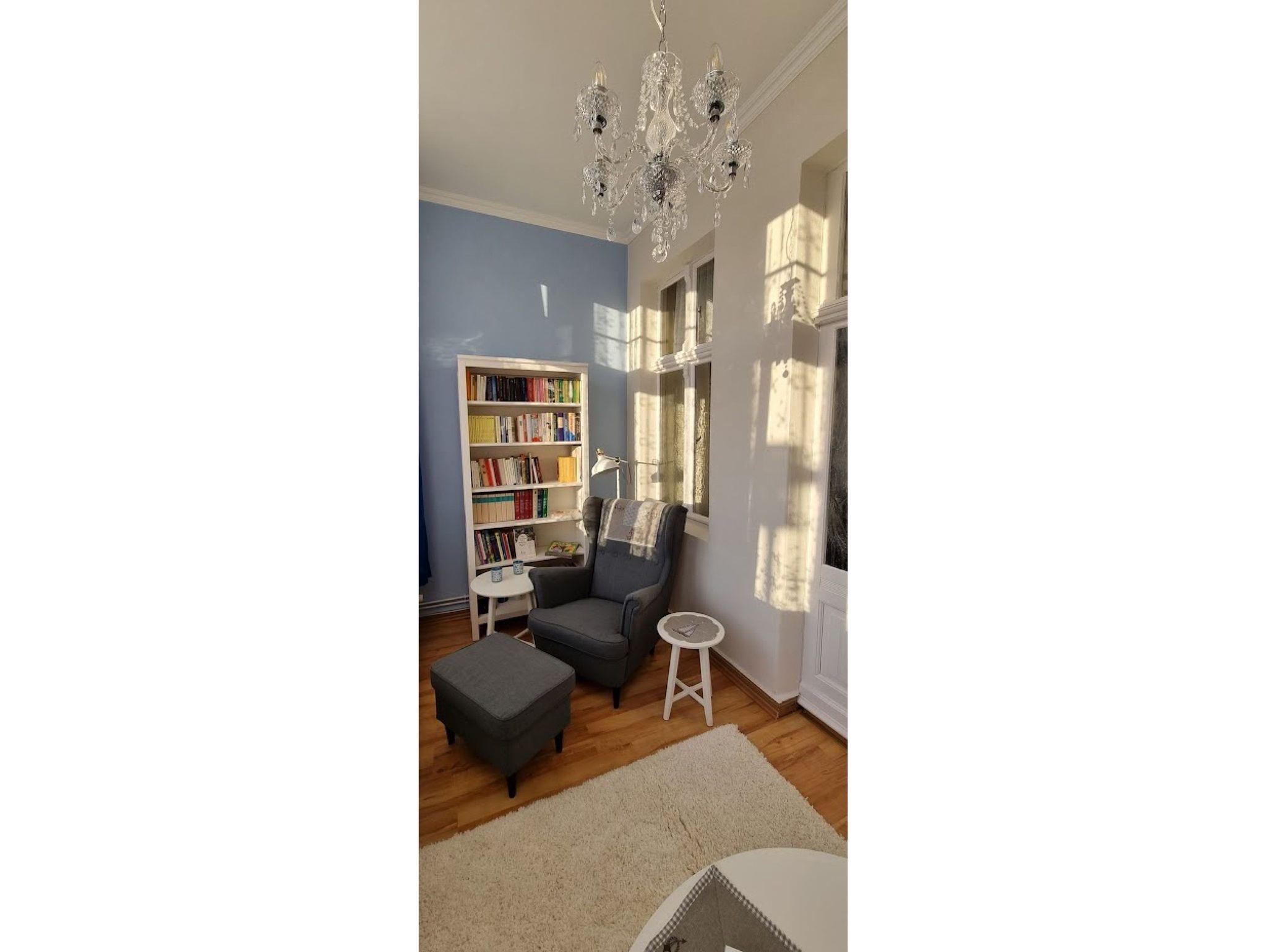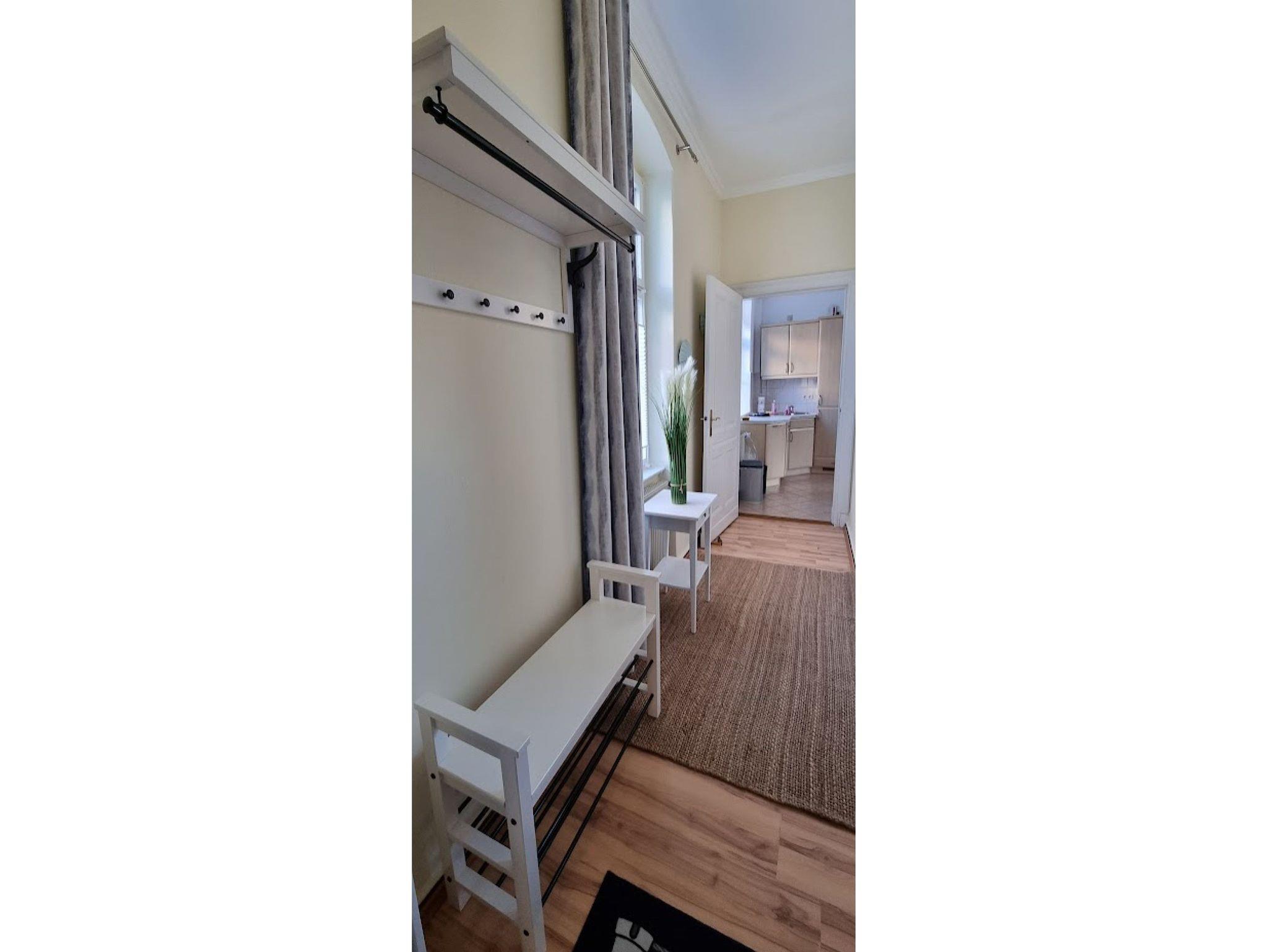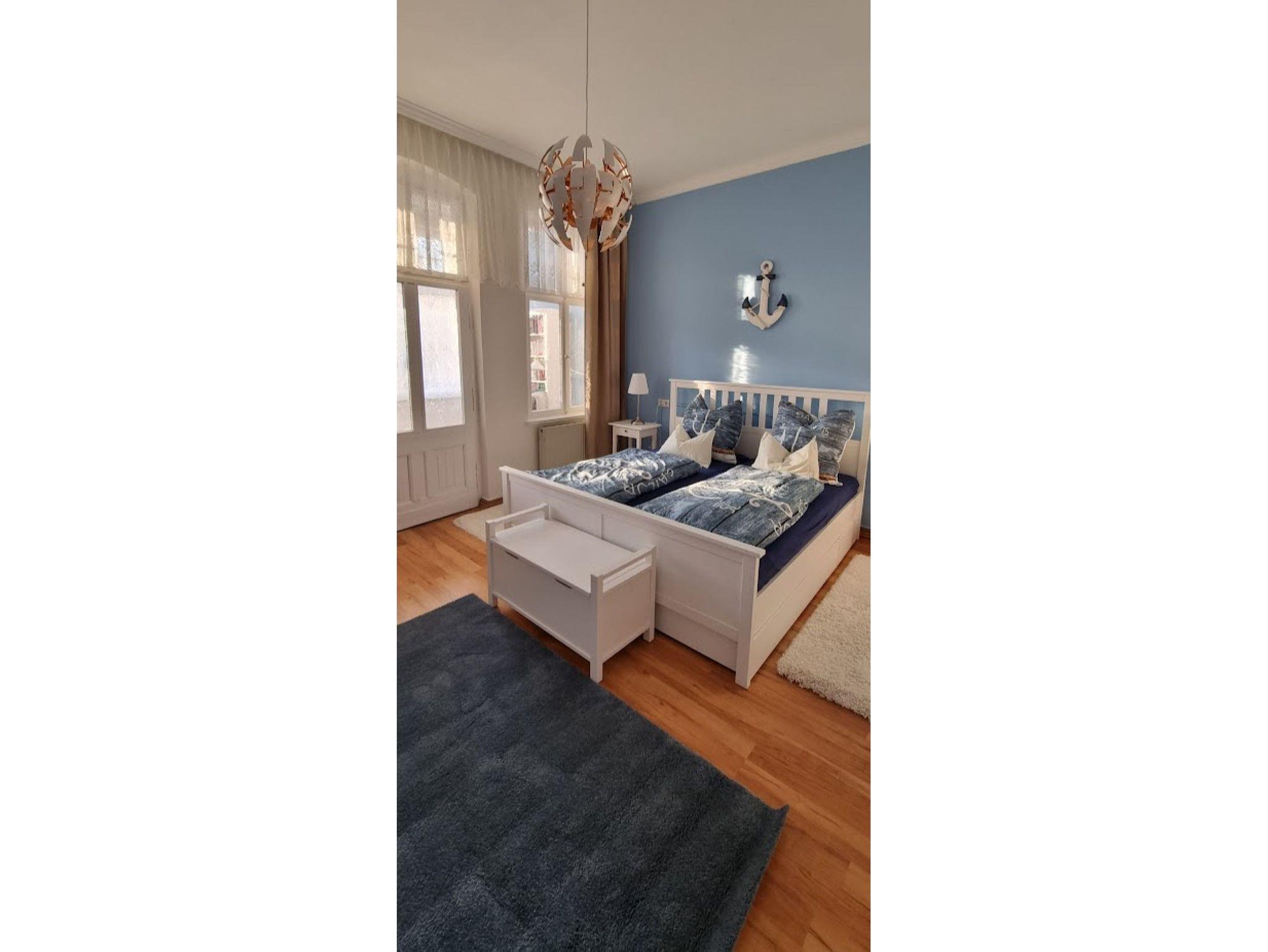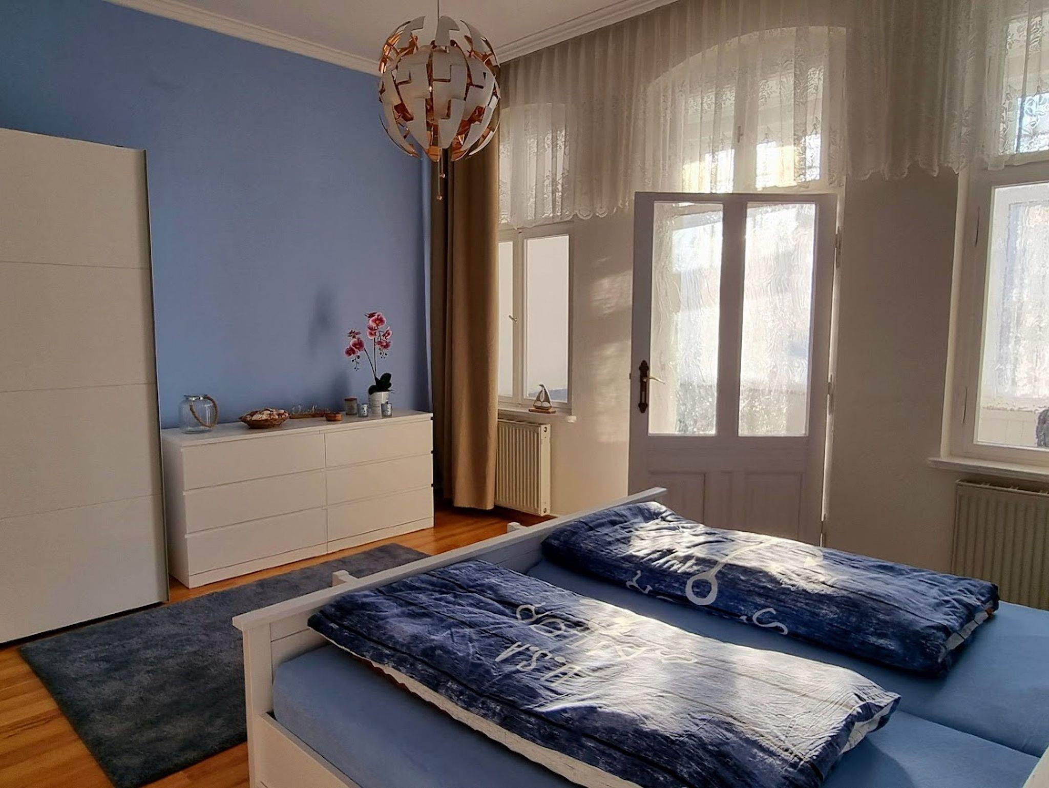 Die Ferienwohnung befindet sich in der ersten Etage der Villa Gertrud mit separatem Eingang zur Wohnung. Ein großer Wohnbereich mit Sofa, großen Flat- Screen TV, W-Lan und Essbereich. Die Veranda ist mit einer kuschligen Leseecke und Schlafsofa ausgestattet. Die Aufbettung für die dritte Person steht in der Veranda zur Verfügung (1,40x2,00€).