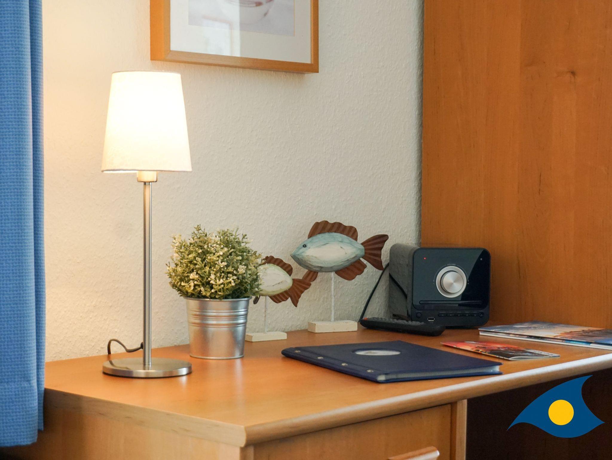 Die Wohnung liegt im 1. Obergeschoss mit Blick nach Südwesten, auf den idyllischen Buchenwald und verfügt ebenfalls über seitlichen Meerblick. Sie beherbergt alles, was Sie für einen entspannten Urlaub für zwei Personen benötigen.