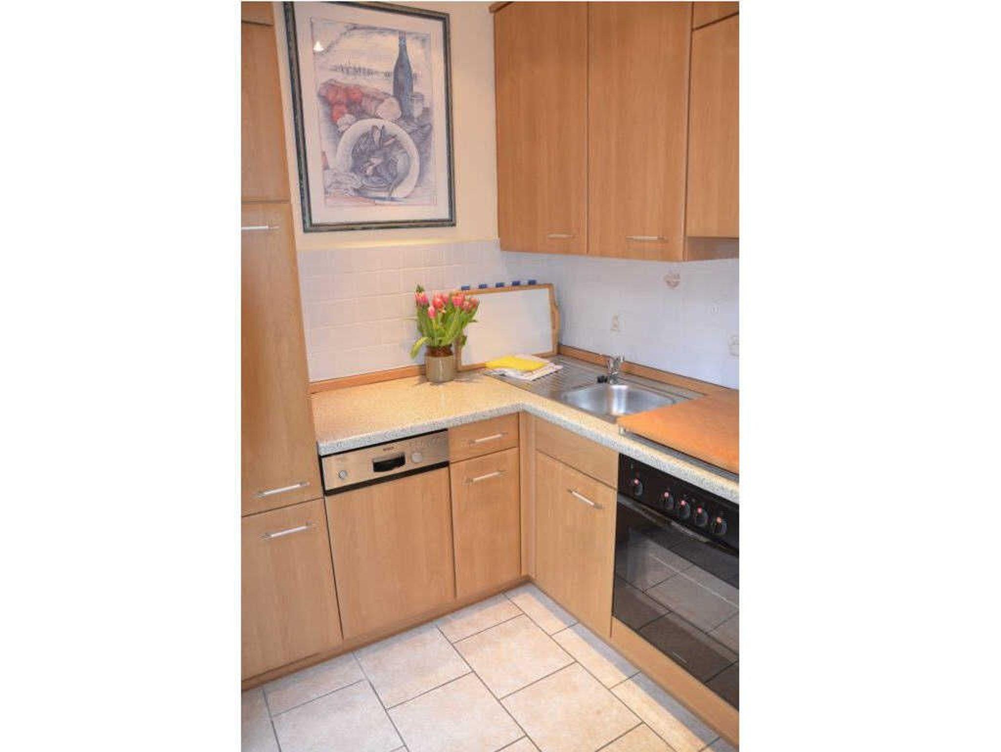 Das Wohnzimmer hat einen Essplatz am sonnigen Fenster ? von hier aus gelangen Sie in die separate Küche und zur 40 qm großen Terrasse. Die Küche ist mit Spülmaschine, Kühlschrank mit Gefrierfach, Herd mit Backofen, Kaffeemaschine, Wasserkocher und Toaster ausgestattet.
