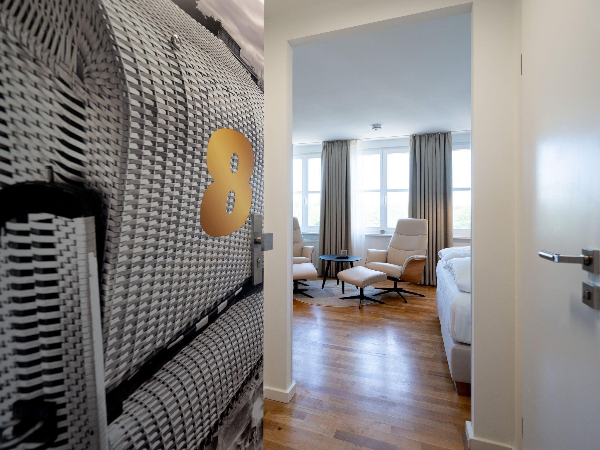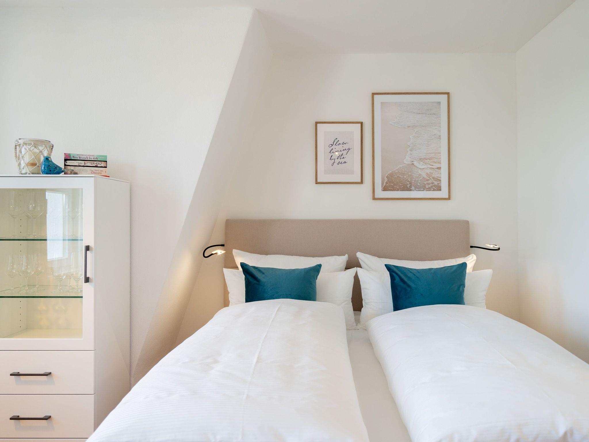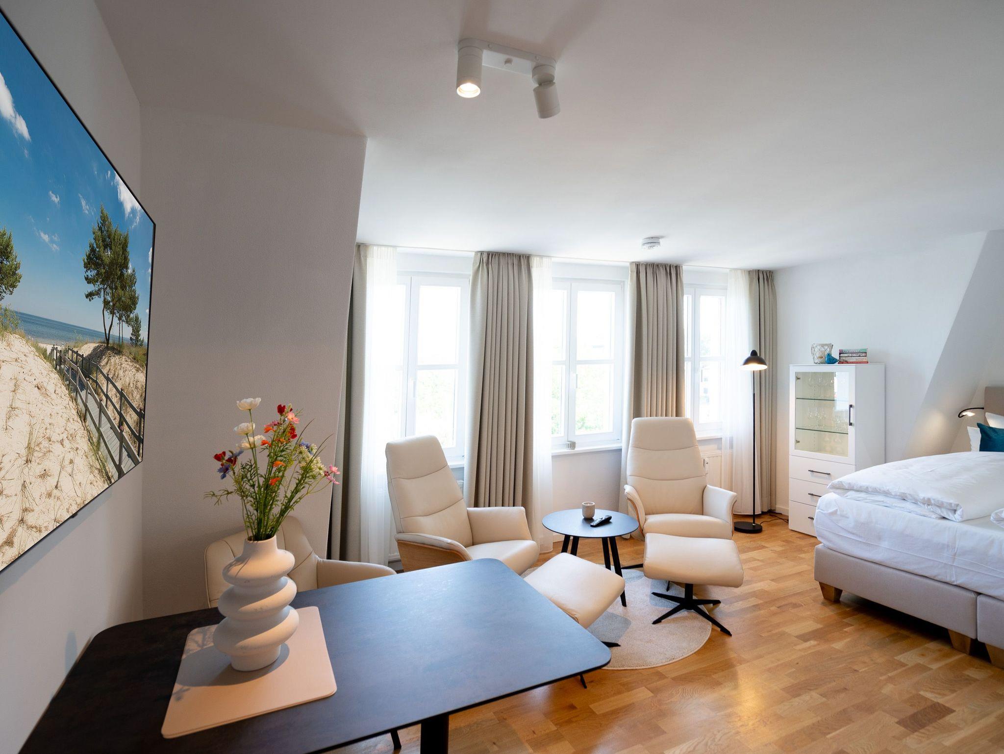 Charmantes 1-Raum-Appartement Nr. 8 im Dachgeschoss ? kompakt, komfortabel, komplett. Das 1-Raum-Appartement im Dachgeschoss der Villa Elisabeth bietet auf 27?m² eine stilvolle, gut durchdachte Unterkunft für zwei Personen ? perfekt für alle, die Komfort auf kleinem Raum schätzen. Der offene Wohnbereich ist hell und einladend gestaltet. Die moderne Küchenzeile ist ausgestattet mit einem 2-Platten-Cerankochfeld, Spülmaschine, Kühlschrank mit Gefrierfach und Nespresso-Kapselmaschine ? ideal für Frühstück, Snack oder Spaghetti in Urlaubslaune. Am Esstisch für zwei lassen sich Mahlzeiten oder Reisepläne entspannt genießen. Zwei bequeme Relaxsessel mit Fußhocker und ein 55-Zoll-Flat-TV sorgen für entspannte Stunden ? ganz gleich, ob Sie Serien schauen oder einfach mal abschalten möchten. Das komfortable Boxspringbett (1,60?m x 2,00?m) verspricht erholsame Nächte, der Kleiderschrank bietet Stauraum für Ihr Gepäck. Das innenliegende Bad ist kompakt, aber funktional ? mit Dusche (85?cm x 70?cm), Waschtisch und WC ausgestattet. Ein fester PKW-Stellplatz (Nr.?8) steht Ihnen auf dem Hof zur Verfügung. Selbstverständlich ist kostenfreies WLAN ebenfalls vorhanden. Ein durchdachter Rückzugsort unterm Dach ? klein, fein und mit allem, was man braucht.