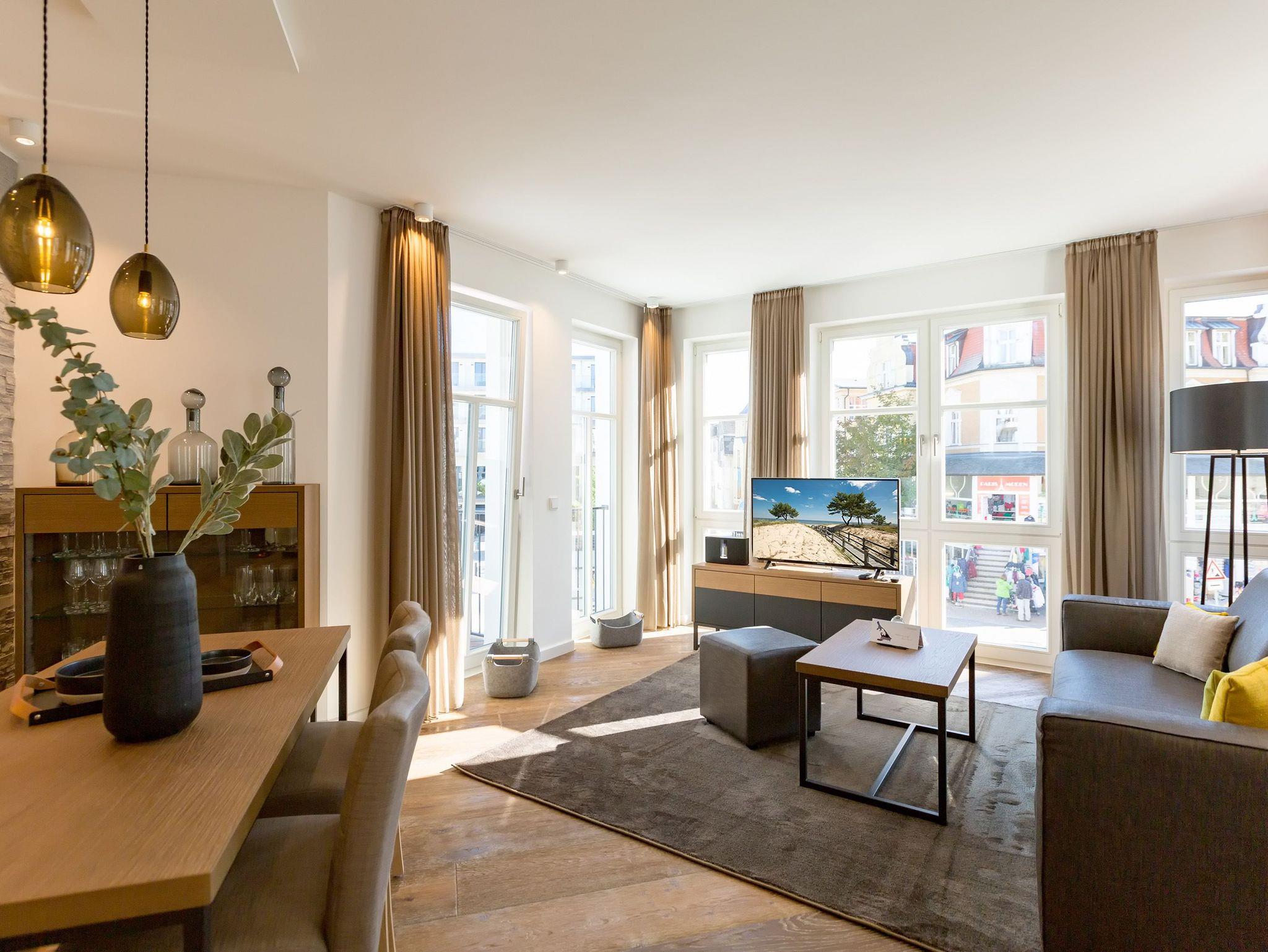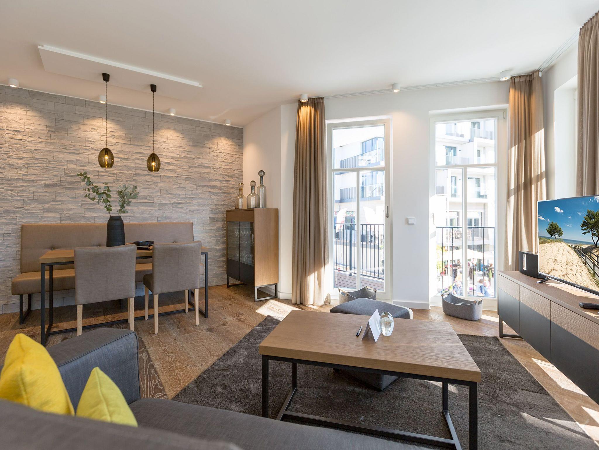 Modernes Appartement in Bansin mit Sauna, Meerblick und zwei Balkonen für entspannte Ostseeferien.