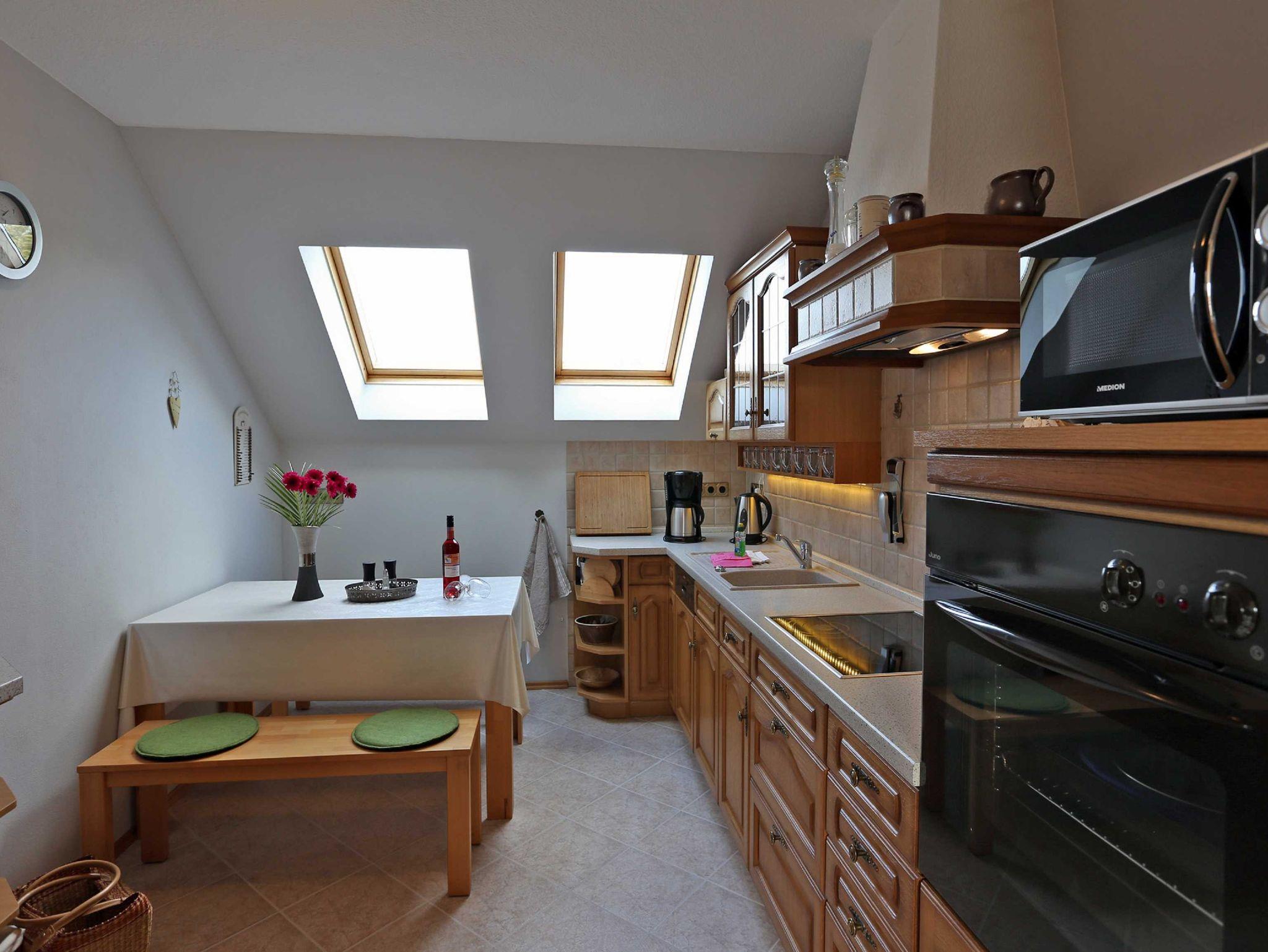Zur Ausstattung zählen im Wohnzimmer ein Flachbildfernseher mit DVD-Player und ein Kamin für die kälteren Jahreszeiten. Kaminholz kann man im Baumarkt in Bansin erwerben. In der Ferienwohnung sind Bücher und Brettspiele vorhanden. Die Küche bietet Ihnen mit einem Backofen, einem Ceranfeld mit 4 Platten, einer Mikrowelle und eine Kühl- und Gefrierkombination eine perfekte Kochmöglichkeit.