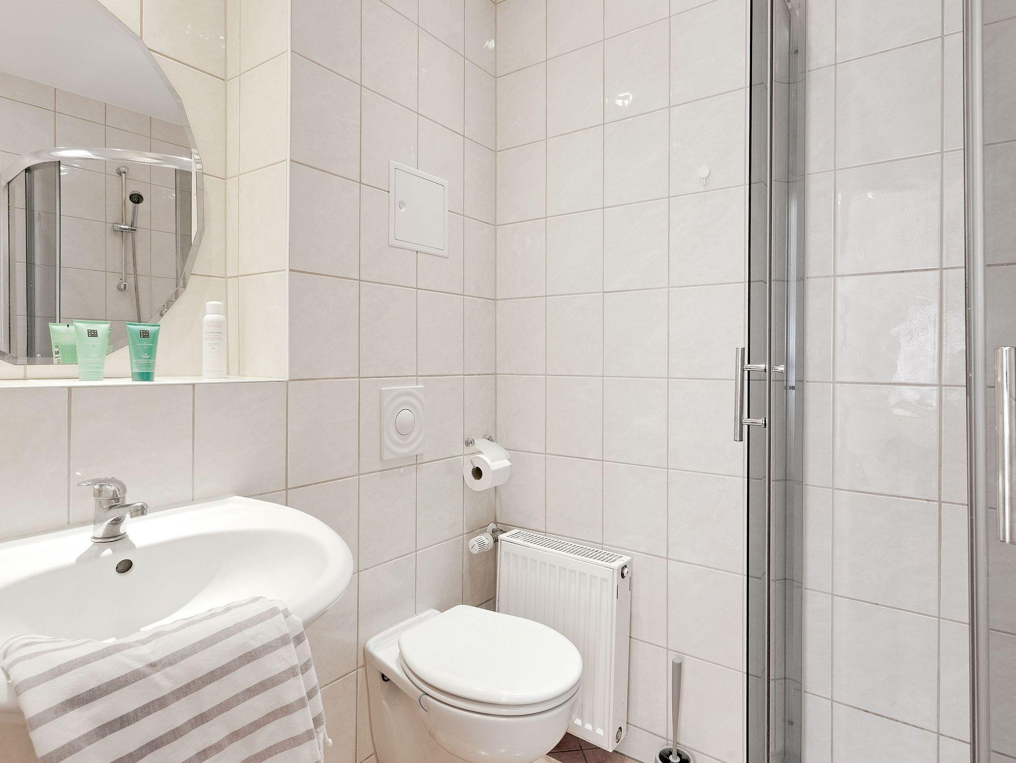 Die Wohnung ist mit Dusche/WC und einem separaten Gäste-WC ausgestattet.