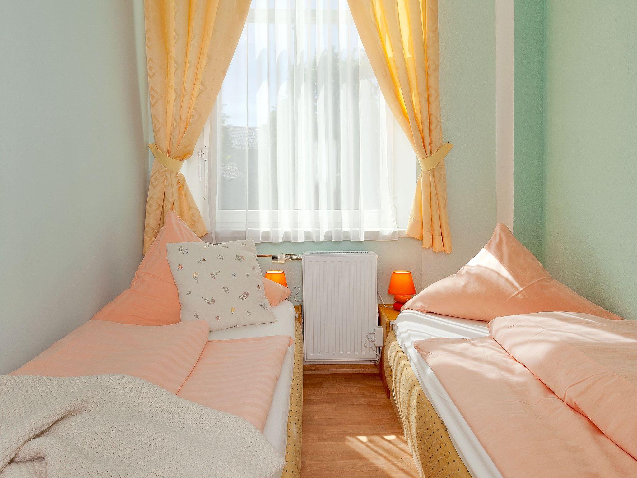 In dem anliegenden kleinen Schlafraum befinden sich zwei 80 cm x 2 m große Einzelbetten.