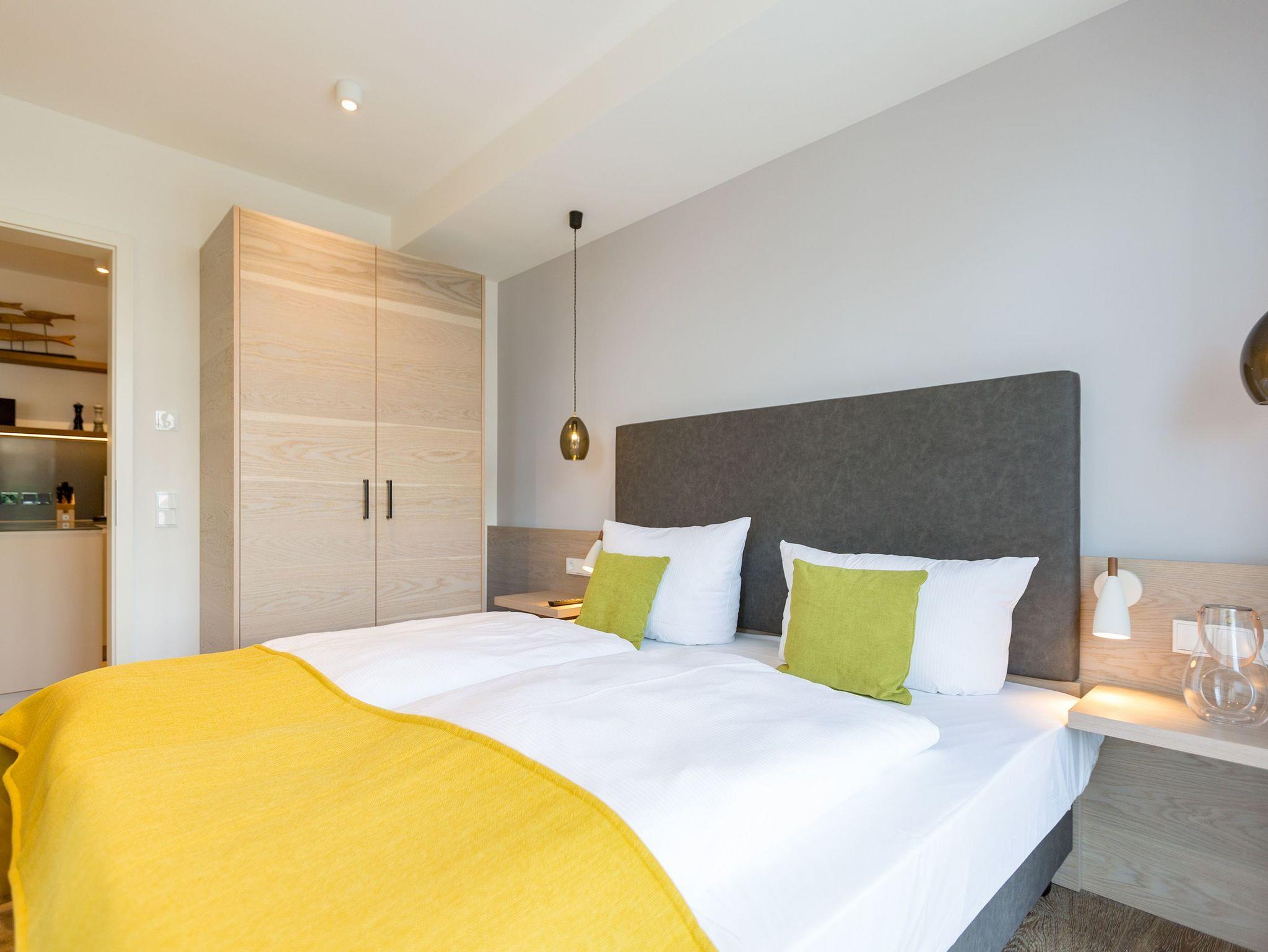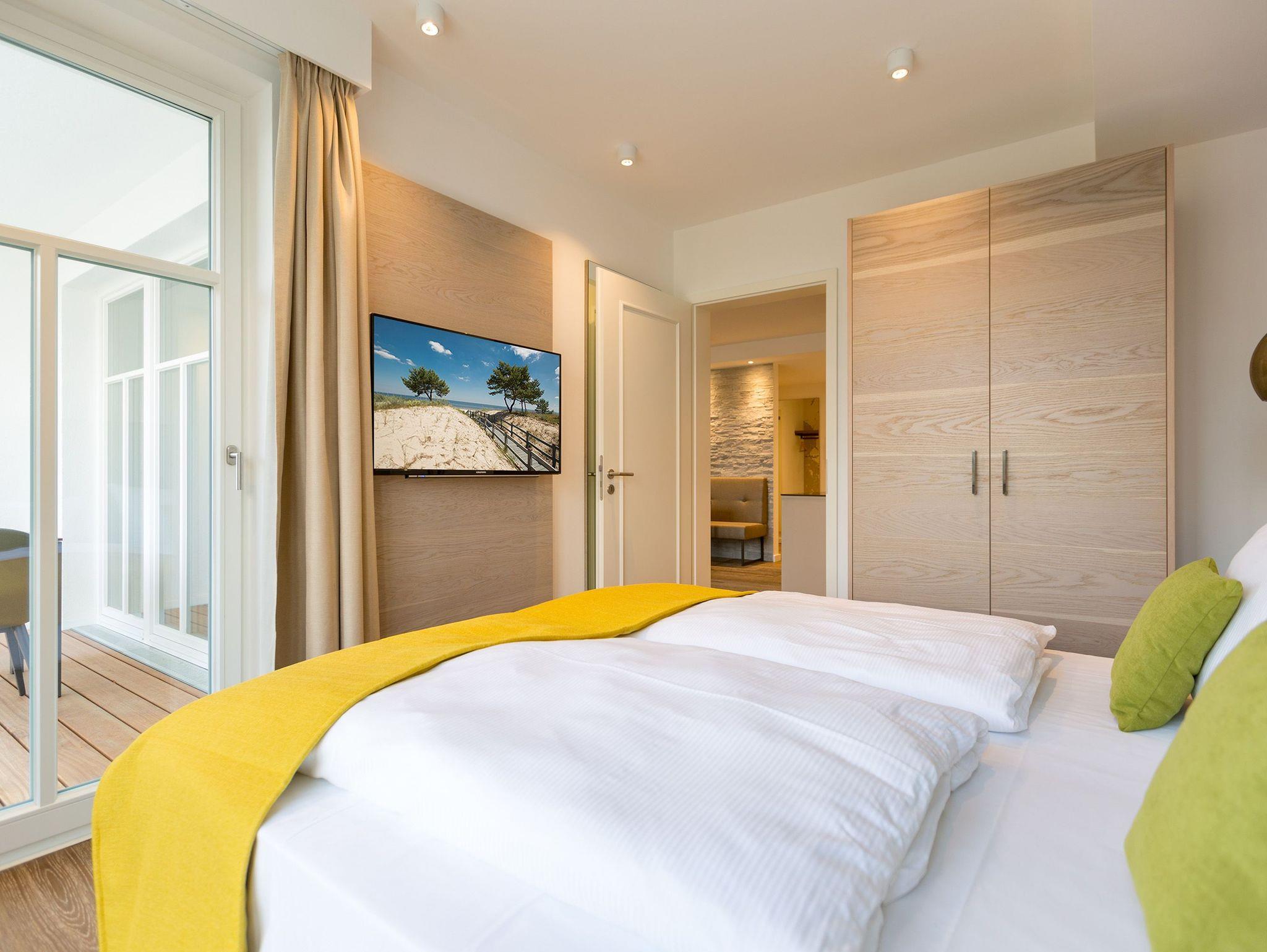 Ein Kuschelreich für Zwei mit viel Platz zum Leben, Lieben und Loslassen ist das 51 Quadratmeter große Urlaubsparadies im 1. Oberschoss des Beachhouses. Eleganz und Stil durchzieht das Zwei-Raum-Appartement vom Eingang bis hinaus auf den Balkon. Denn vom Innenarchitekten konzipiert, strahlt es viel Ruhe und Harmonie aus. Kommen Sie runter, schalten Sie ab und genießen Sie den seitlich eingeschränkten Blick zur Ostsee vom Balkon aus. Durch die bodentiefen Fenster können Sie das Meer auch im Inneren rauschen hören. Die Einrichtung ist stylisch und exklusiv. Von der Stange ist hier nichts. Die hochwertigen Design-Möbel, Lampen und Accessoires machen Ihre Auszeit zu etwas ganz Besonderem. Denn oberstes Gebot in diesem Paradies ist Wohlfühlen. Ob auf dem bequemen Sofa oder am Esstisch jeder Atemzug wird zur Entspannung. Auch den geliebten Vierbeiner können Sie hier mitbringen. Denn Haustiere sind erlaubt. Ein schöner Gas-Kamin sorgt per Knopfdruck für Romantik. Kochen Sie gemeinsam in der voll ausgestatteten Küche, die zum Wohnzimmer hin offen ist. Mikrowelle, Herd, Kühlschrank, Kaffeemaschine, Geschirrspülmaschine alles steht zu Ihrer Verfügung. Edles Geschirr gibt den passenden Rahmen für feine Gerichte oder gar Mehr-Gang-Menüs. Im Wohnzimmer wie auch im Schlafzimmer befindet sich ein Flat-TV. Zudem gibt es eine Hi-Fi-Anlage mit Bluetooth. Ins Internet kommen Sie kostenlos. Auch die Nächte werden in dem Appartement zum erholsamen Vergnügen. Dafür sorgt das urgemütliche Boxspringdoppelbett (1,80 m x 2,00 m). Viel Platz zum Verstauen der Urlaubsgarderobe haben Sie im Schrank. Im geräumigen Badezimmer erwartet Sie sogar noch eine Finnische Sauna. Da wird der Urlaub zur echten Wellness-Auszeit. Regendusche, Waschtisch und WC gehörend selbstredend ebenfalls zur Badausstattung dazu. In einem Hauswirtschaftsraum finden Sie einen Wasch-Trockner. Für eine rundum sorglose Auszeit ist alles für Sie bereitet. Die Betten sind frisch bezogen und Handtücher liegen bereit. In der modernen Tiefgarage ist für Sie der Stellplatz Nr. 7 im Doppelparker oben (max. Höhe 2,00 m, max. Länge 5,10 m, max. Breite 2,50 m, max. Last 2.600 kg) reserviert.