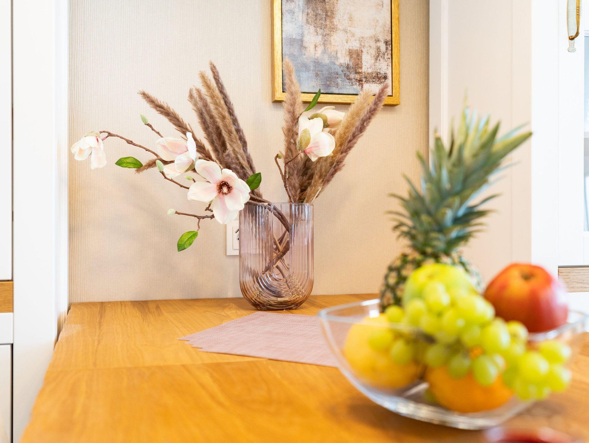 Die ideale Raumaufteilung für bis zu sechs Personen verspricht Urlaubsgenuss pur. Treten Sie ein: ein großzügiger Wohnbereich mit einem exklusiven Gaskamin erwartet Sie bereits, sodass Sie eine angenehme Wohlfühlatmosphäre das gesamte Jahr über genießen. Eine bequeme Couchgarnitur und ein Flat TV runden den Komfort perfekt ab und laden zum Entspannen und Füße hochlegen ein.