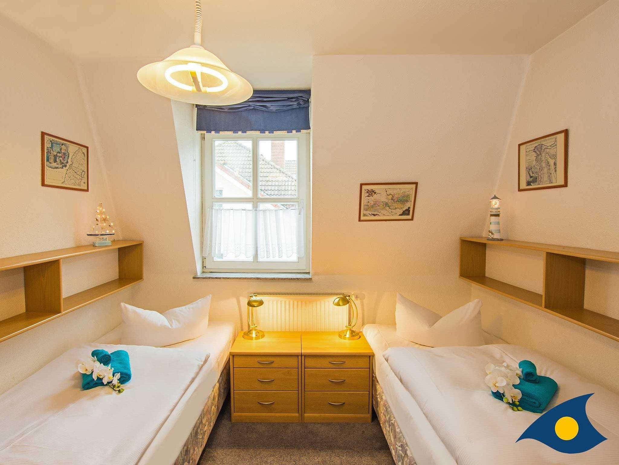 Im Schlafzimmer stehen die Betten getrennt. In das offene Turmzimmer gelangen Sie über eine Treppe. Hier finden Sie eine Schlafcouch für die dritte und vierte Person und einen Schreibtisch. 2 Fernseher sind in der Wohnung vorhanden. Genießen Sie die fantastische Rundumsicht auf Meer, Strand und Promenade.