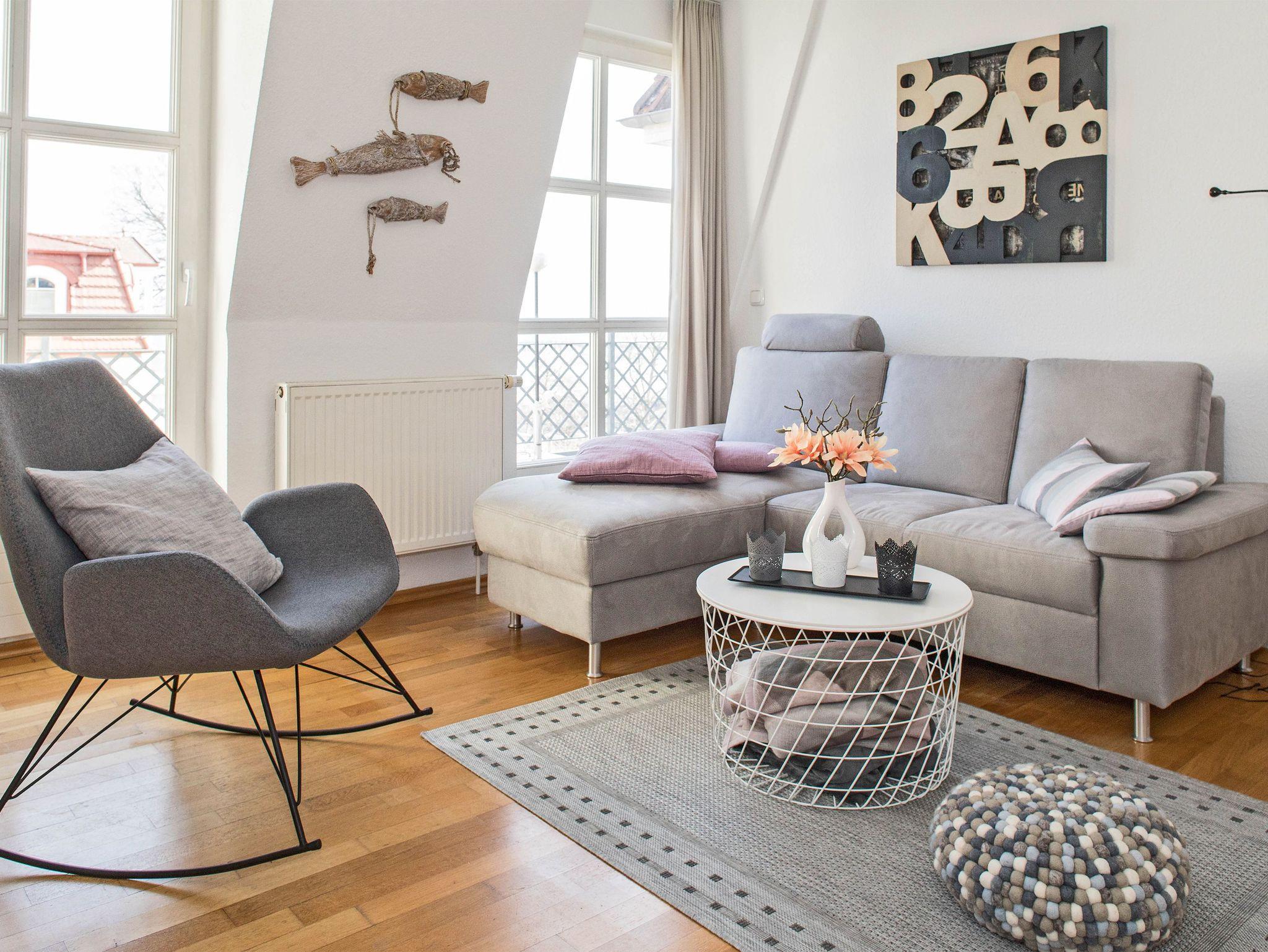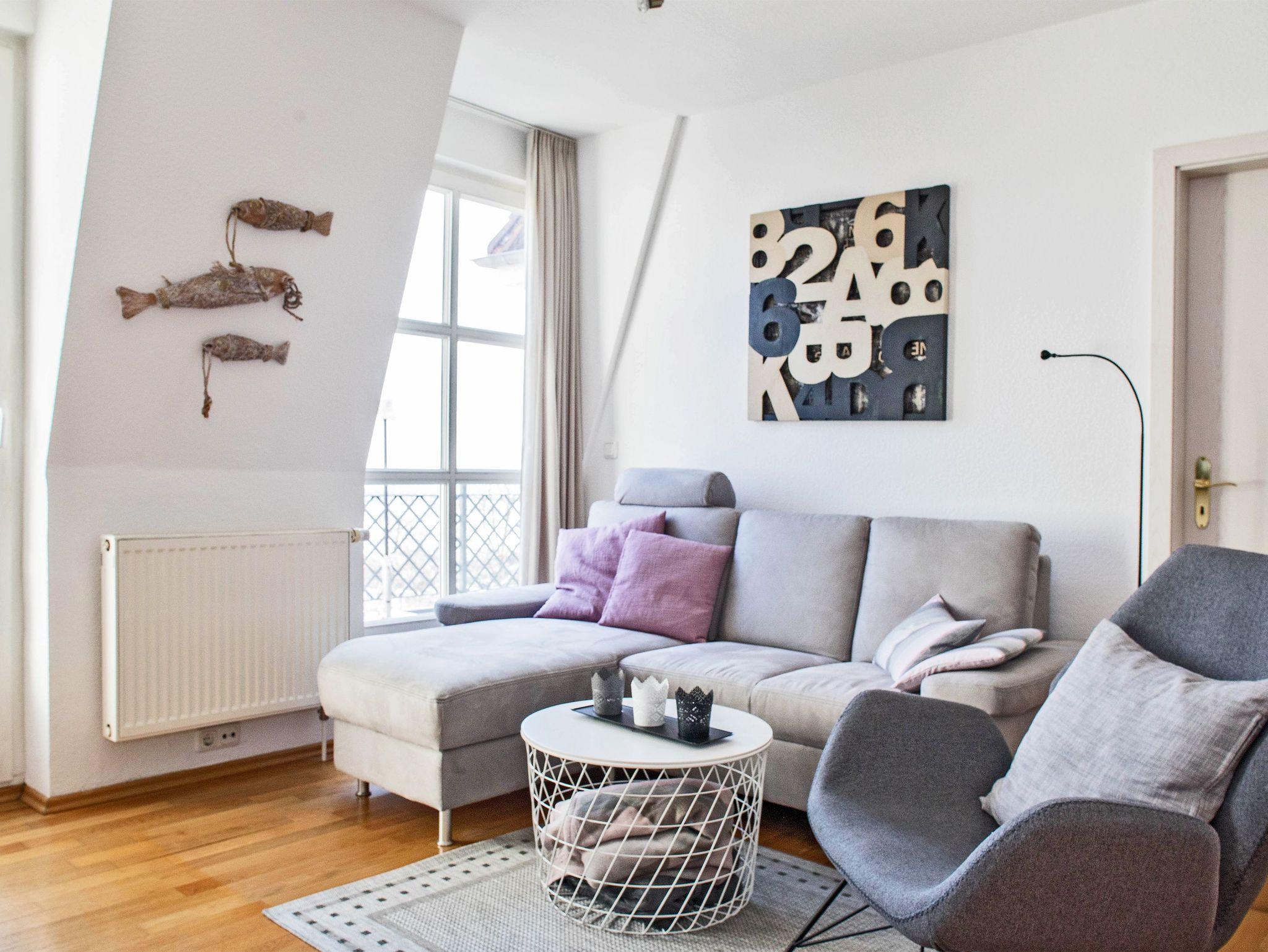 Zu diesem modern und liebevoll eingerichteten Zweiraumappartement gehört ein 13 qm großer Balkon mit traumhaftem Blick zur Ostsee.
