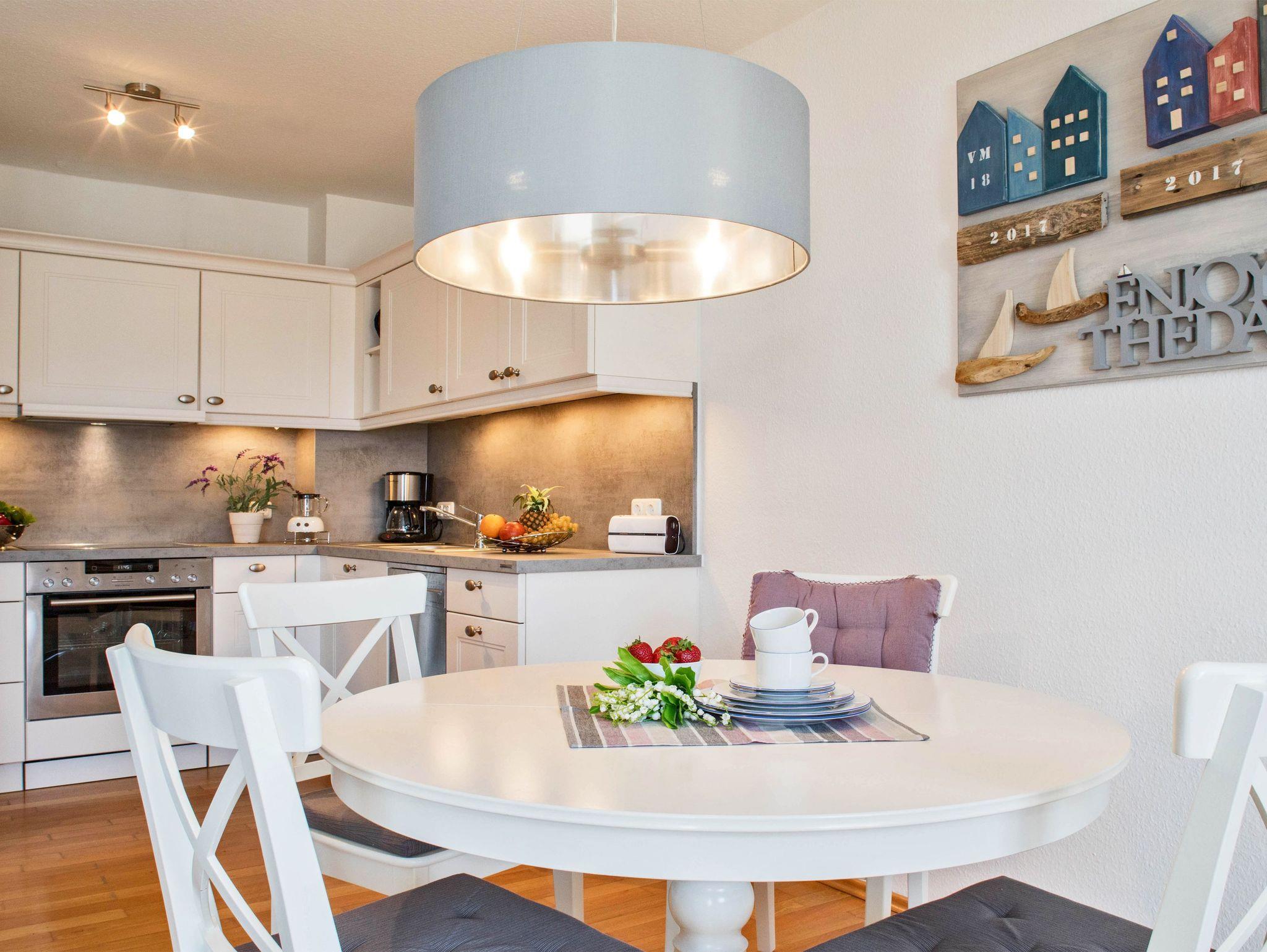 Die originelle Einrichtung wird ergänzt durch viele maritime Details und einige stimmungsvolle Bilder. Die Küche ist mit einem Backofen und einer Spülmaschine sowie weiteren Annehmlichkeiten ausgestattet.