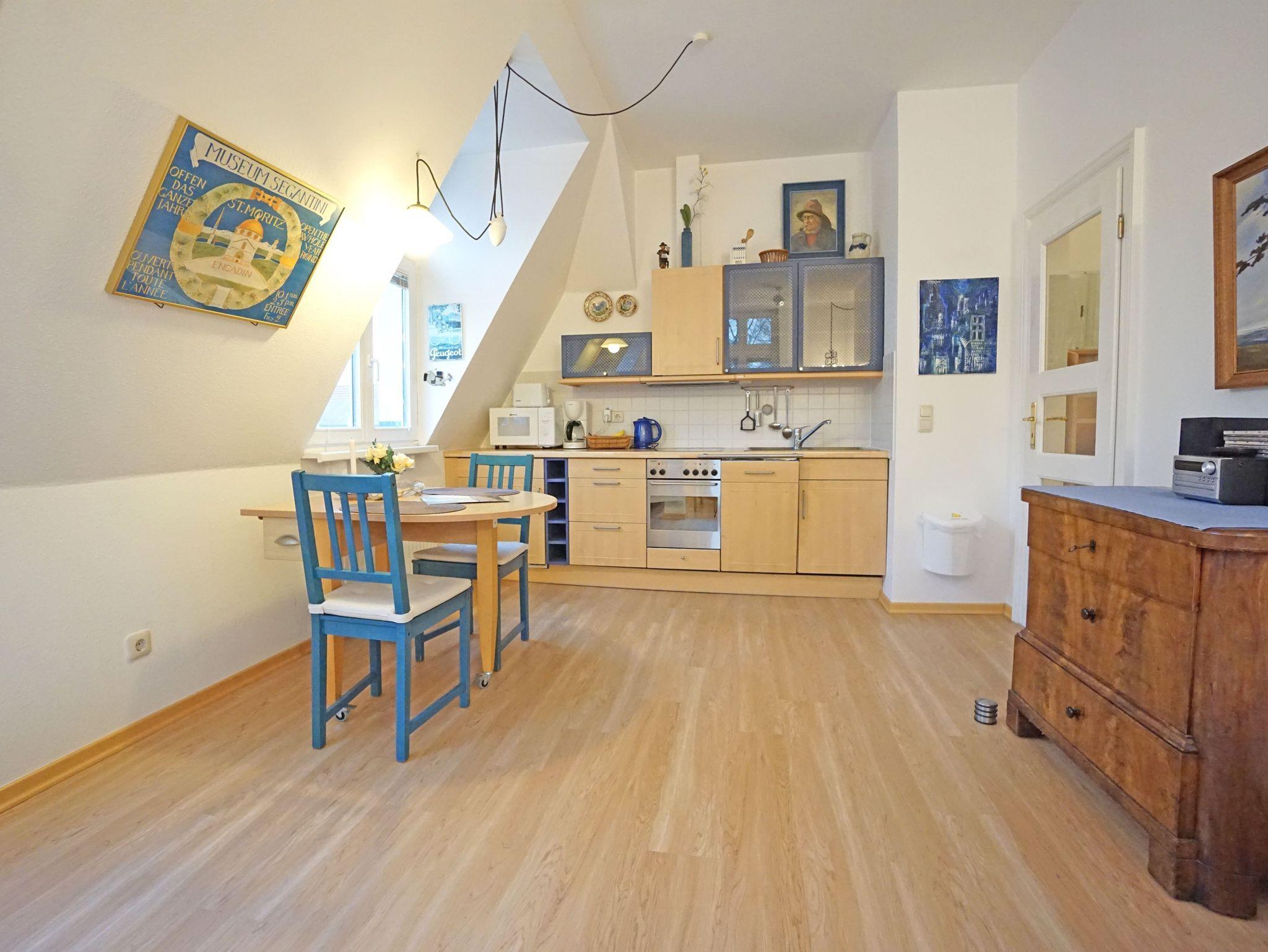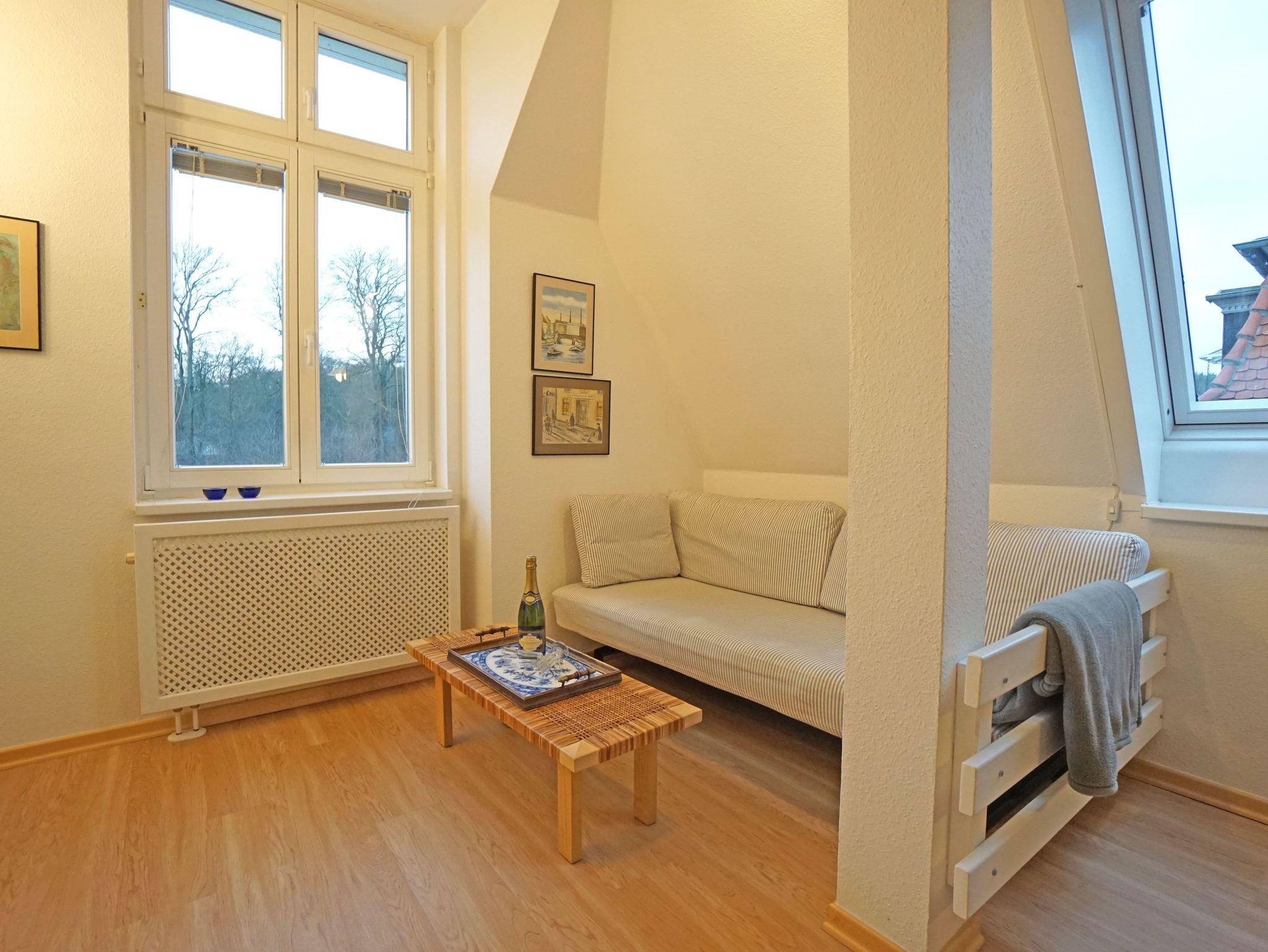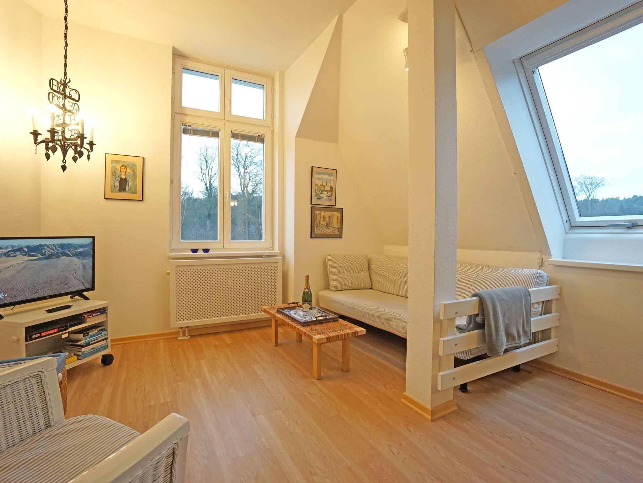 Die liebevoll eingerichtete 2 Zimmer Nichtraucherwohnung liegt in der 2.(obersten) Etage einer restaurierten Jugendstilvilla zur Südseite, mit Blick auf den Buchenwald. Sie ist sehr hell und ruhig gelegen.