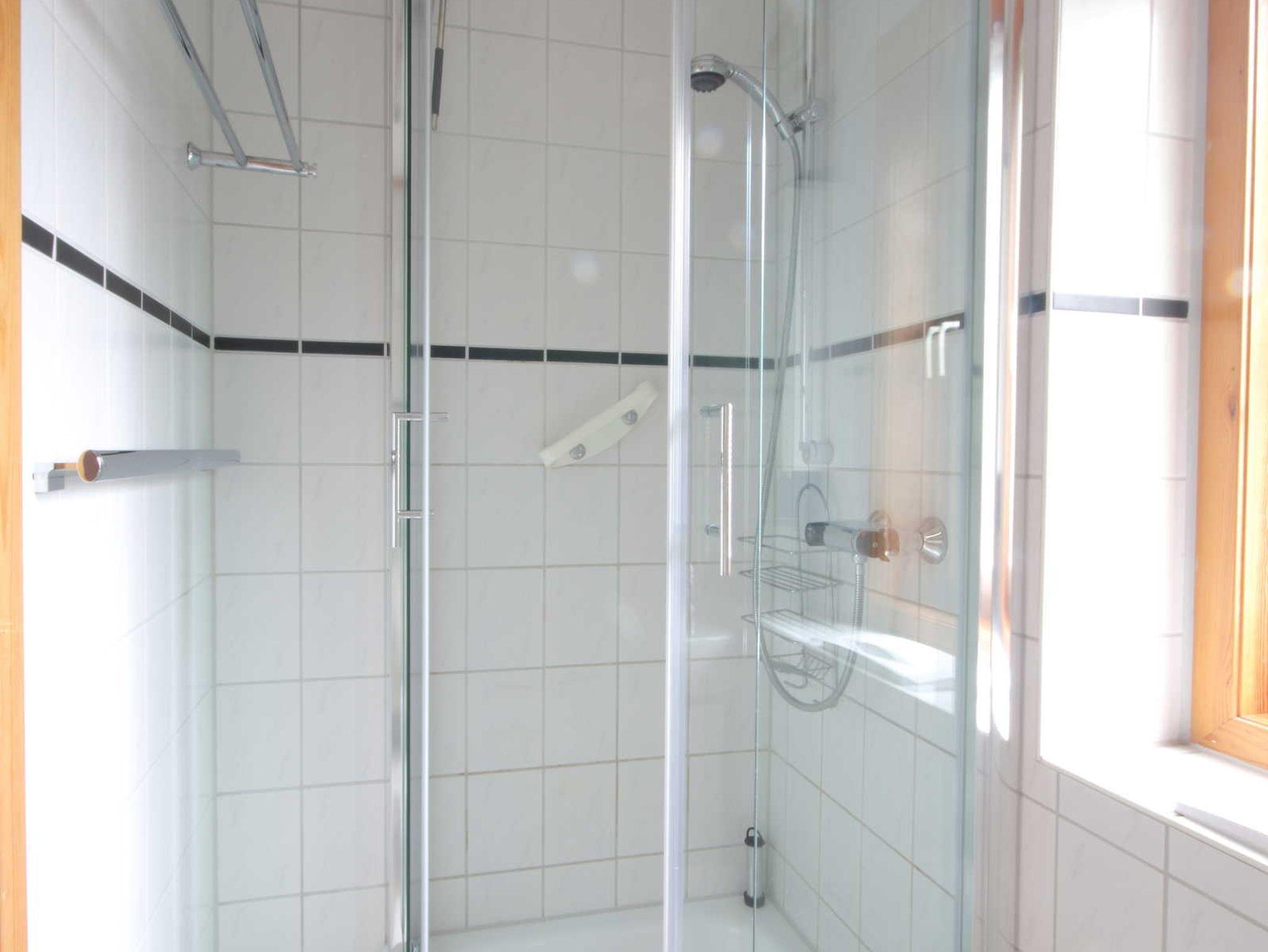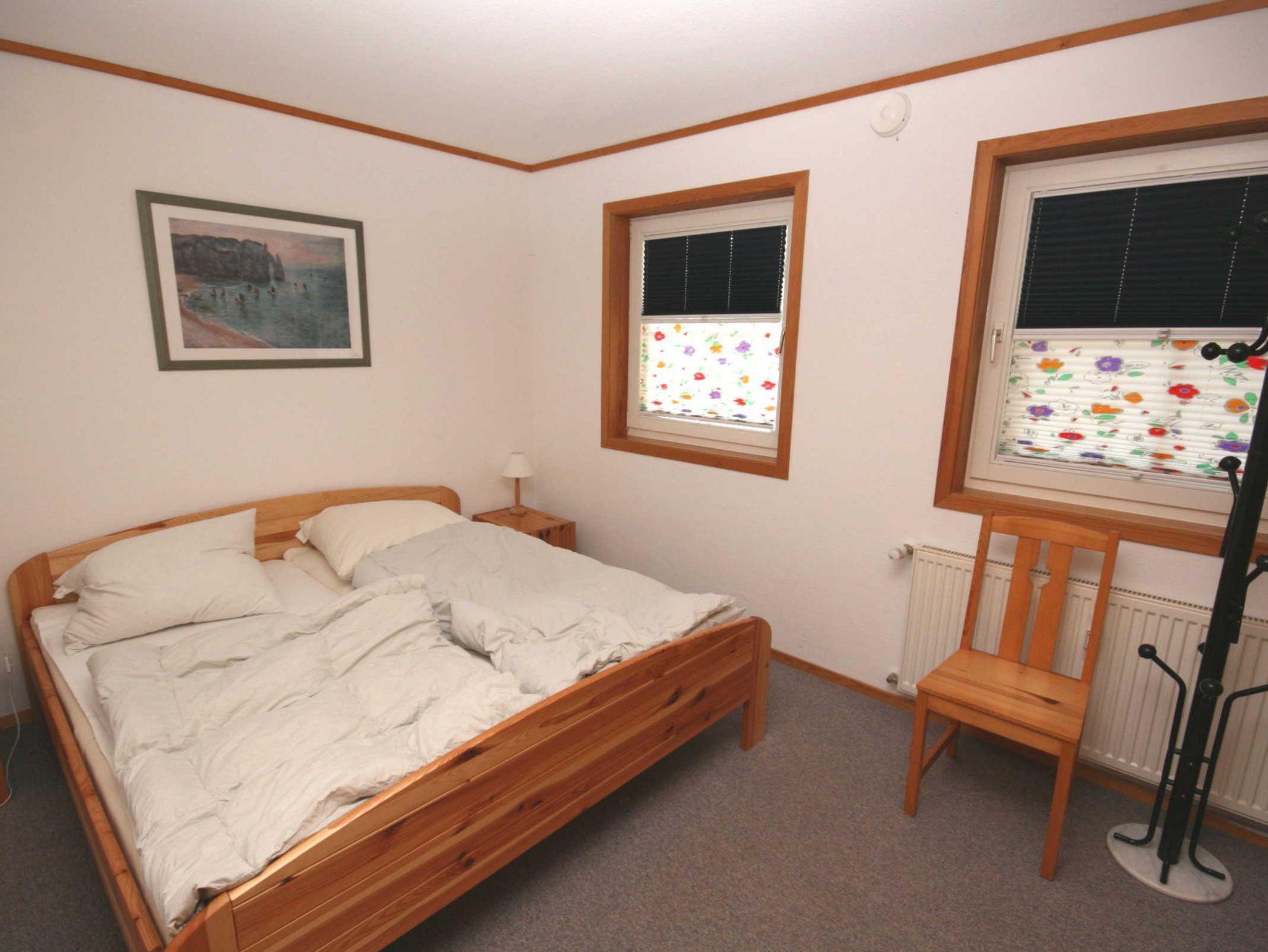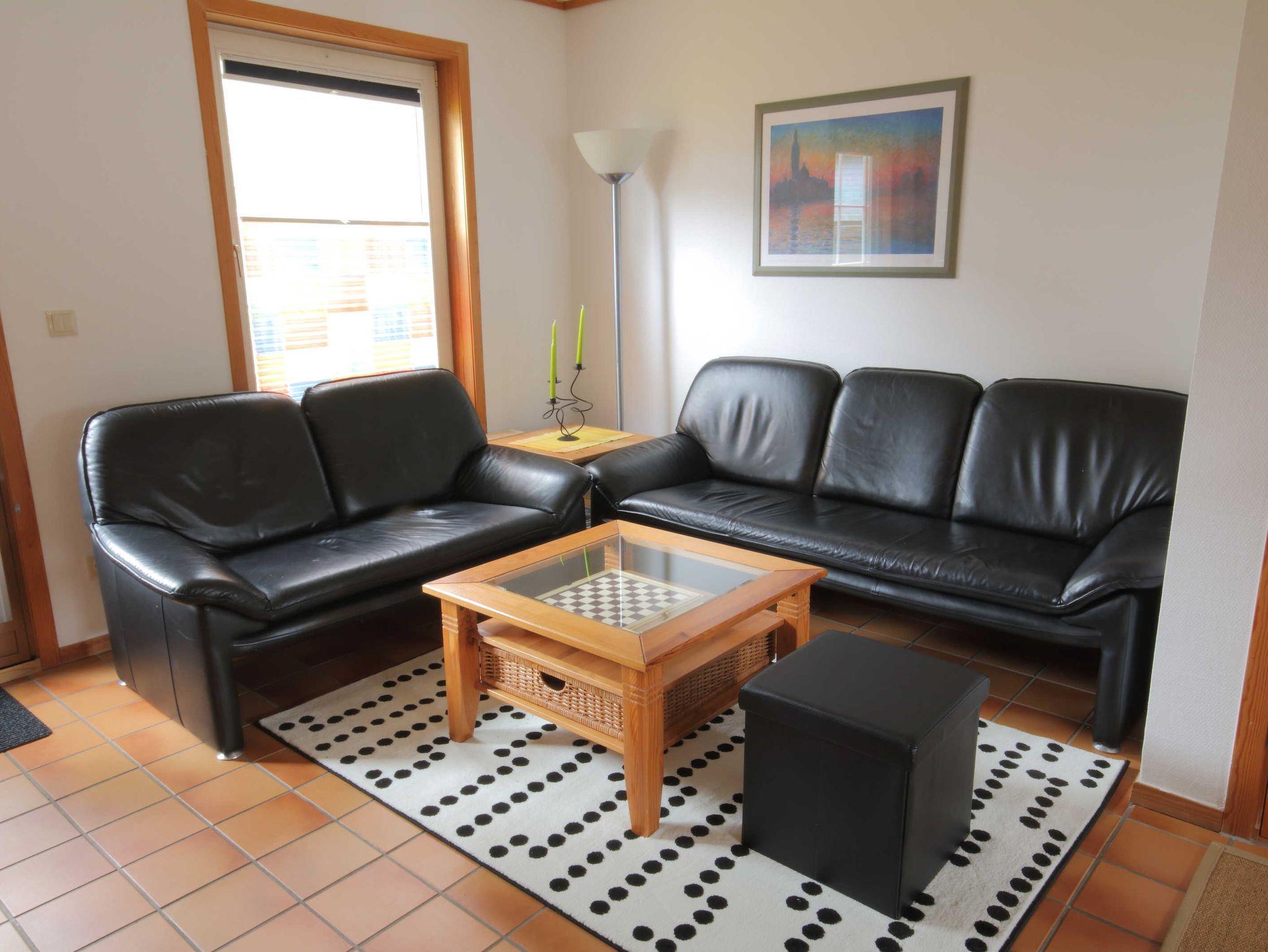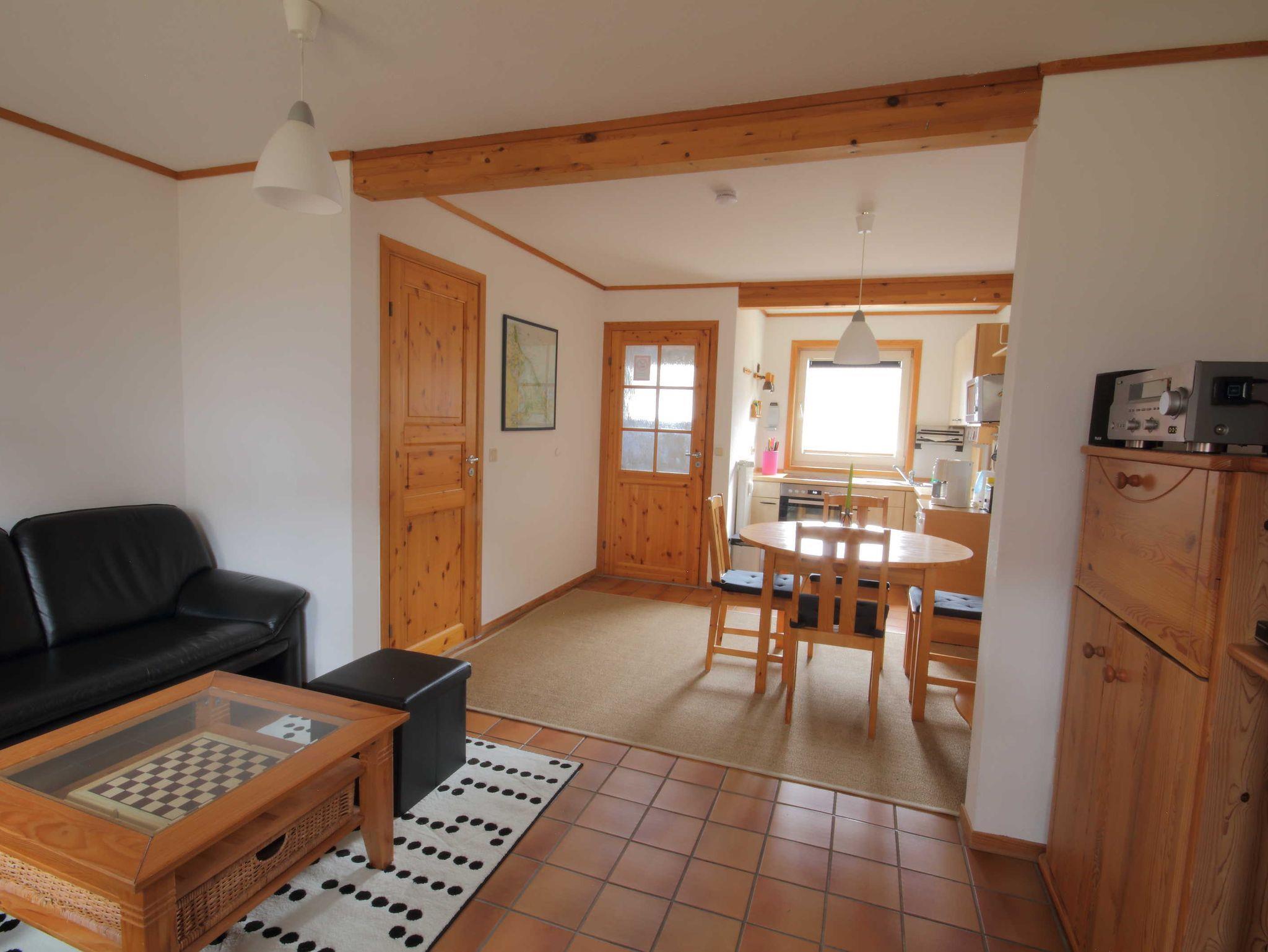 Das Haus ist 56 m² groß und verfügt im Erdgeschoss über einen großen offenen Wohnbereich mit Küche und eine Abstellkammer. Durch viele Fenster (fast alle mit Insektenschutzgitter) ist das Haus angenehm hell. Vom Wohnbereich gelangen Sie auf die Terrasse mit Gartenmöbeln. Über die Treppe gelangen Sie ins Obergeschoss, wo Sie neben dem Duschbad/WC ein Schlafzimmer und ein weiteres Schlaf- bzw. Kinderzimmer erwartet. Alle Fenster sind mit Doppelplisses ausgestattet, die sowohl Sicht bzw. Sonnenschutz bieten als auch zur Verdunkelung der Räume geeignet sind (Ausnahmen: Kinderzimmer: nur Abdunkelung und Bad: Innenrollo). Ein WLAN Netz steht kostenlos zur Verfügung, wobei wir keine Gewähr übernehmen für die tatsächliche Verfügbarkeit, Geeignetheit oder Zuverlässigkeit des Internetzuganges, da das WLAN für die gesamte Ferienanlage eingerichtet ist. Unser Haus ist für max. 5 Personen eingerichtet. Wir haben es gemütlich und kindgerecht ausgestattet. In der offenen Küche ist man selbst beim Kochen mittenmang, auch wenn andere sich gerade auf der Ledercouch ausruhen, spielen oder TV gucken. Die Wohnung verfügt über alle Annehmlichkeiten, die man im Urlaub benötigt, um sich wohlzufühlen. Gerade für unsere kleinen Gäste haben wir mit Buggy, Kinderbett, Kinderstühlen für kleine und ganz kleine Kinder, Kindergeschirr etc. vorgesorgt. Doch auch unsere erwachsenen Gäste müssen sich auch bei schlechtem Wetter nicht langweilen. Spiele, Bücher, TV, Hifi-Anlage und DVD-Player stehen zur freien Verfügung. Geschlafen wird im Schlafzimmer in einem großen Doppelbett und im Schlaf/Kinderzimmer in einem Etagenbett mit ausziehbarem dritten Bett. Das Etagenbett ist auch für Erwachsene geeignet. In der Wohnung ist Rauchen nicht gestattet, auch können wir leider keine Haustiere erlauben.