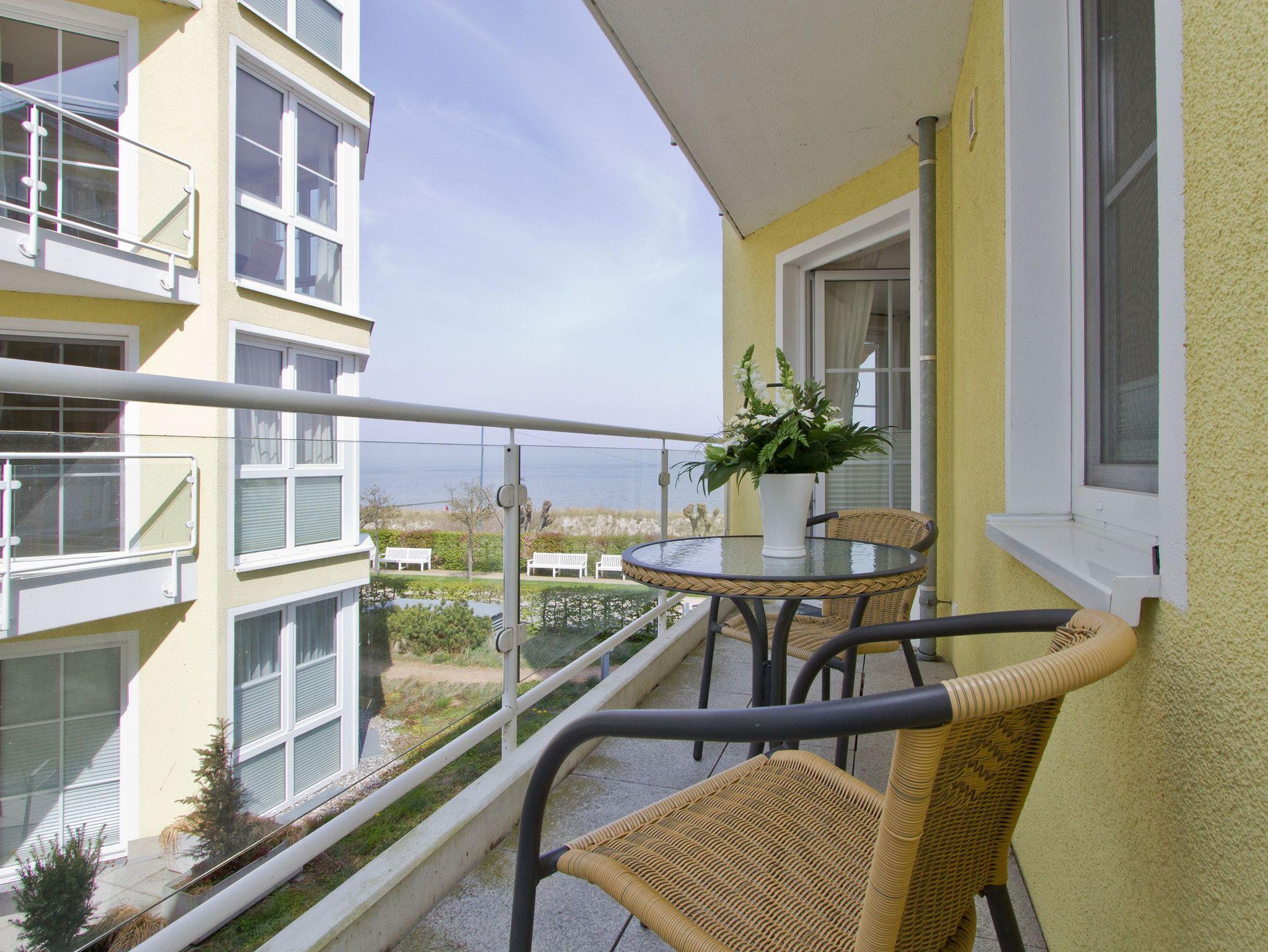 Helle 3-Raum-Ferienwohnung mit Balkon und freiem Meerblick in der Dünenresidenz Bansin.