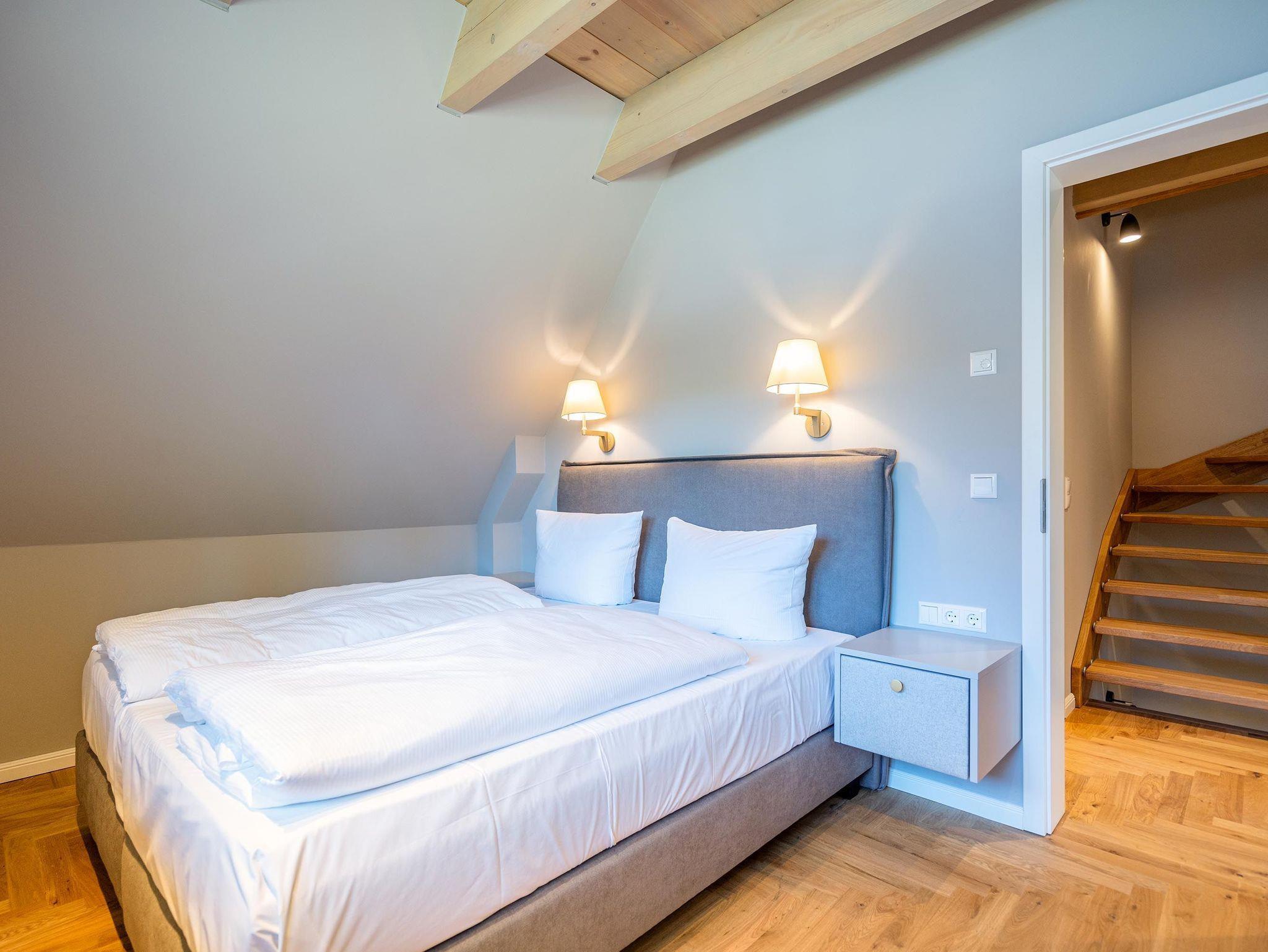 Willkommen in der charmanten Reetdach-Doppelhaushälfte N° 3, eingebettet in die malerische Landschaft des Seebads Bansin. Dieses großzügige Domizil erstreckt sich über drei Etagen und bietet Platz für bis zu 8 Erwachsene. Ideal für einen entspannten Aufenthalt an der Ostseeküste. Im Erdgeschoss erwartet Sie ein offener Wohn- und Essbereich, der viel Raum für gemeinsame Zeit mit Familie und Freunden bietet. Die voll ausgestattete Küche lässt keine Wünsche offen und verfügt unter anderem über einen Essplatz für bis zu 8 Personen. Der gemütliche Wohnbereich ist mit einer komfortablen Sitzgruppe, einem Flachbild-TV, einem Kaminofen sowie einer hochwertigen Sonoro Streaming Audio Anlage inklusive CD-Player und Radio ausgestattet. Von hier aus gelangen Sie auf die sonnige Süd-West-Terrasse mit einer Fläche von ca. 12 qm, auf der Sie Garten und frische Ostseeluft genießen können. Ebenfalls im Erdgeschoss befindet sich ein modernes Badezimmer mit finnischer Sauna, Dusche, Waschtisch und WC. Ein Waschtrockner im Flurschrank sorgt für zusätzlichen Komfort während Ihres Aufenthalts. Im ersten Obergeschoss stehen Ihnen drei komfortable Schlafzimmer zur Verfügung. Alle Schlafzimmer sind mit hochwertigen Boxspringdoppelbetten (1,80 m x 2,00 m), Einbaukleiderschränken und jeweils einem Flachbild-TV ausgestattet. Zwei der Schlafzimmer bieten zudem Zugang zum Süd-West-Balkon mit schönem Blick ins Grüne. Ein weiteres Badezimmer mit Dusche, Waschtisch und WC ergänzt diese Etage. Die zweite Etage beherbergt das vierte Schlafzimmer mit einem Boxspringdoppelbett (1,60 m x 2,00 m), einer Kommode sowie einem Flachbild-TV. Zusätzlich steht Ihnen hier ein innenliegendes Gäste-WC zur Verfügung. Im Außenbereich befindet sich ein abschließbarer Abstellraum für Fahrräder. Zwei Stellplätze unter dem Carport bieten geschützte Parkmöglichkeiten für Ihre PKW. Diese hochwertige Ferienhaushälfte verbindet Komfort, Funktionalität und eine attraktive Lage und bietet Ihnen einen idealen Rückzugsort für erholsame Urlaubstage an der Ostseeküste.