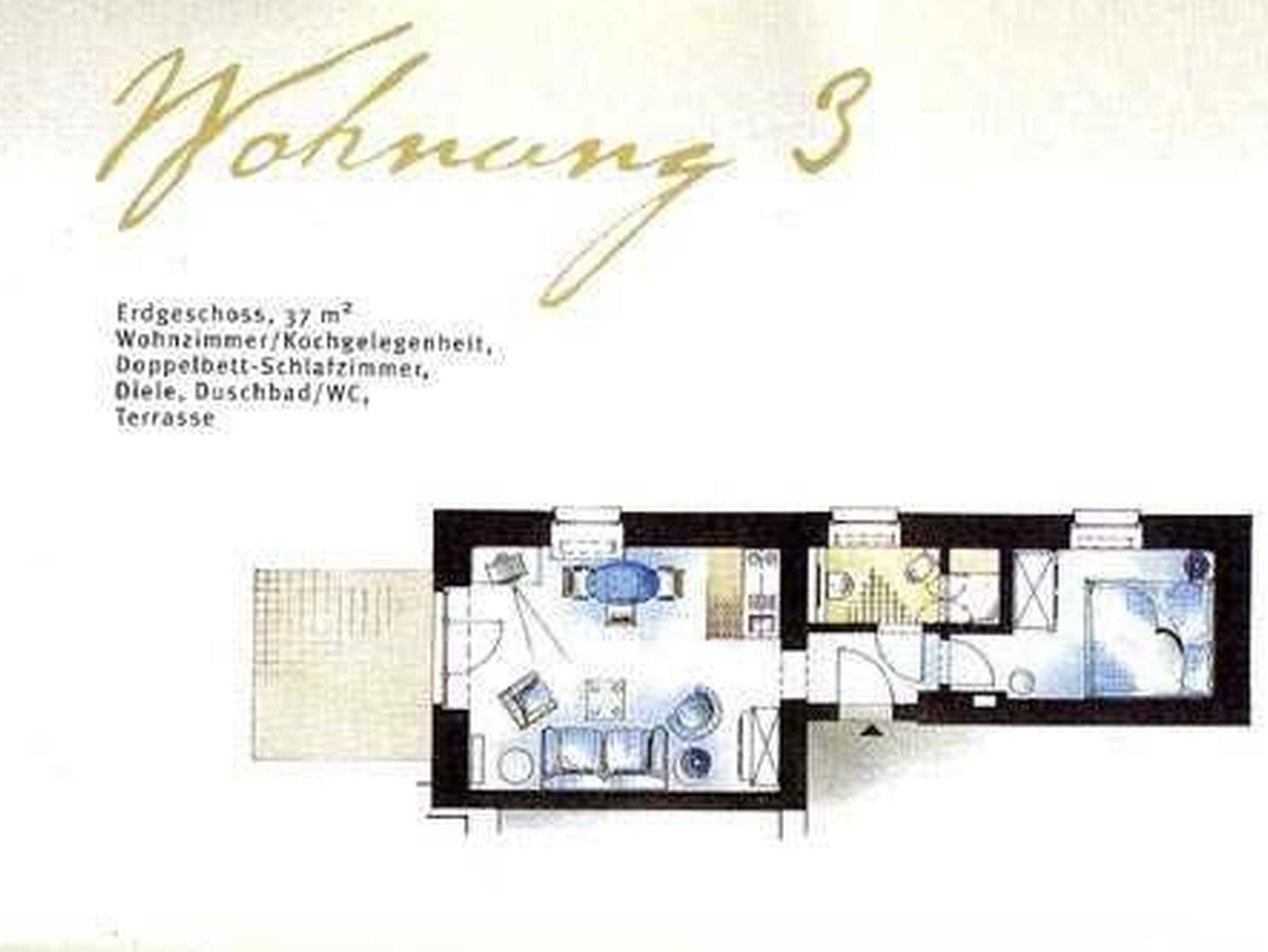 Sie verfügt über einen hellen Wohnraum mit Schlafcouch (140cm Liegefläche) und eine vollausgestattete Küchenzeile. Das Schlafzimmer ist mit einem komfortablen Doppelbett ausgestattet (2 Matratzen; 80cmx200cm). Das Badezimmer verfügt über eine Duschkabine und ist über ein Fenster zu belüften.