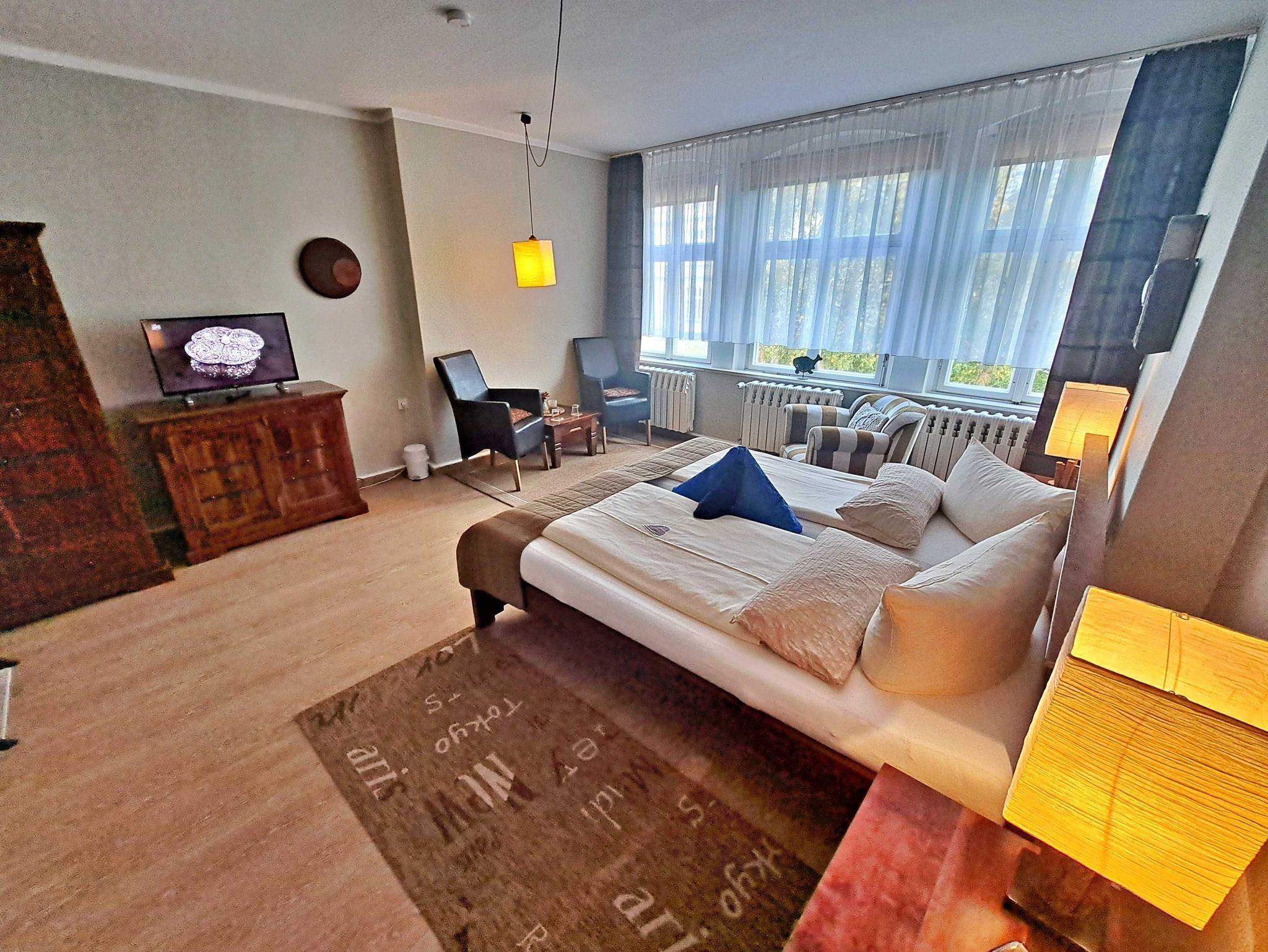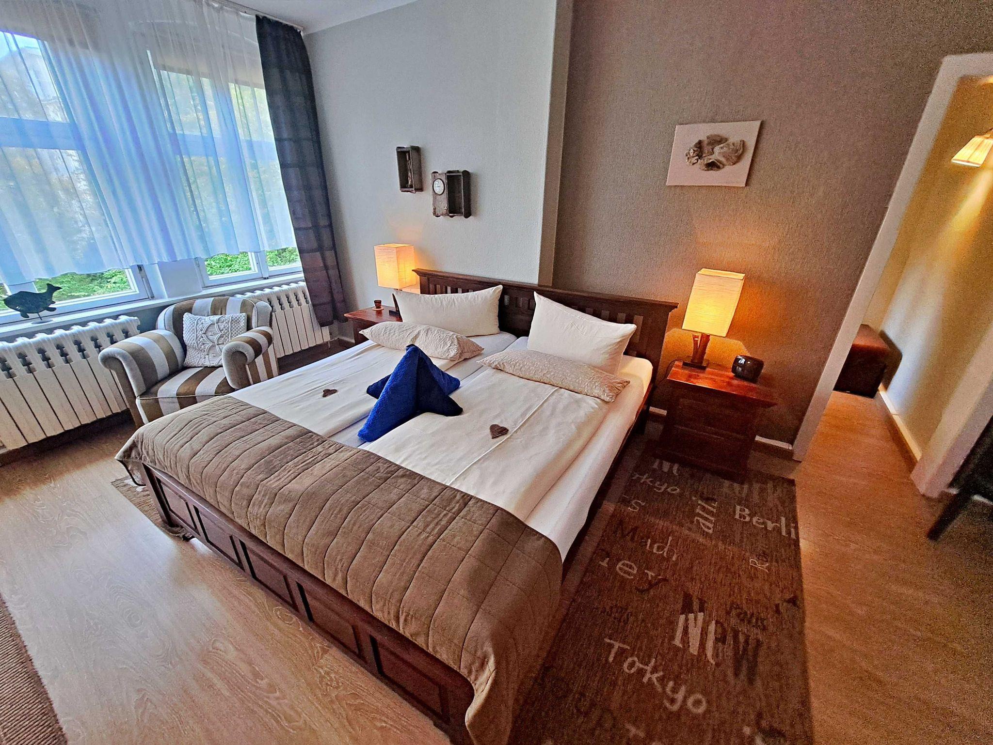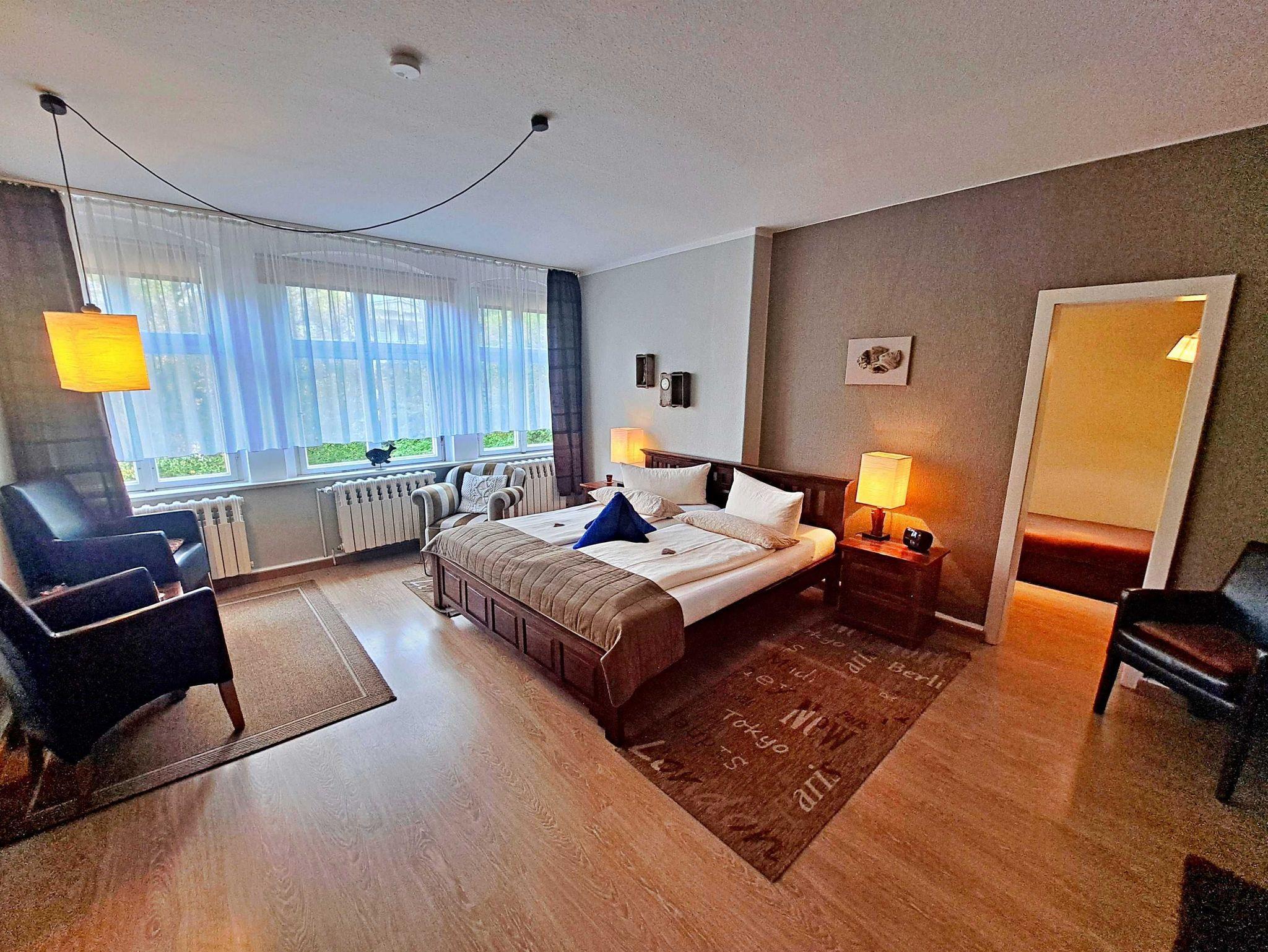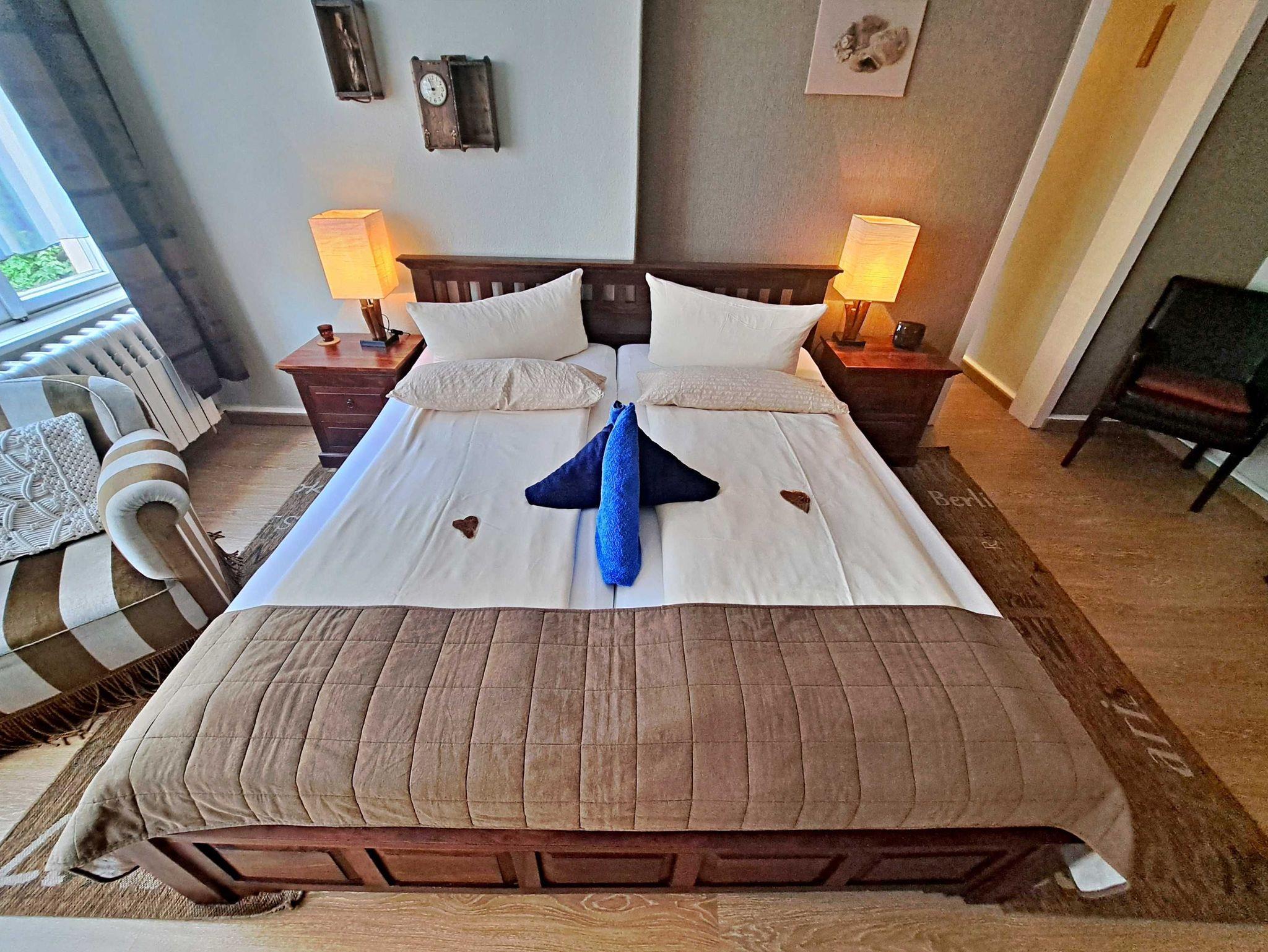 Herzlich willkommen in unserem geräumigen Familienzimmer im ersten Obergeschoss der Pension! Hier erwartet Sie eine einladende Atmosphäre, die durch die stilvollen Akazienholzmöbel ein leicht afrikanisches Urlaubsgefühl vermittelt. Das Zimmer ist komfortabel ausgestattet mit einem gemütlichen Doppelbett, bequemen Sitzgelegenheiten und einem TV, sodass Sie sich rundum wohlfühlen können. Zusätzlich steht Ihnen ein separates Zimmer mit einem Einzelbett zur Verfügung, ideal für Familien oder Freunde. Das Bad mit Dusche/WC und Fön sorgt für Ihren Komfort. Und das Beste: Das W-LAN-Netz steht Ihnen während Ihres gesamten Aufenthalts kostenlos zur Verfügung und Ihr Auto können Sie direkt an der Unterkunft parken.