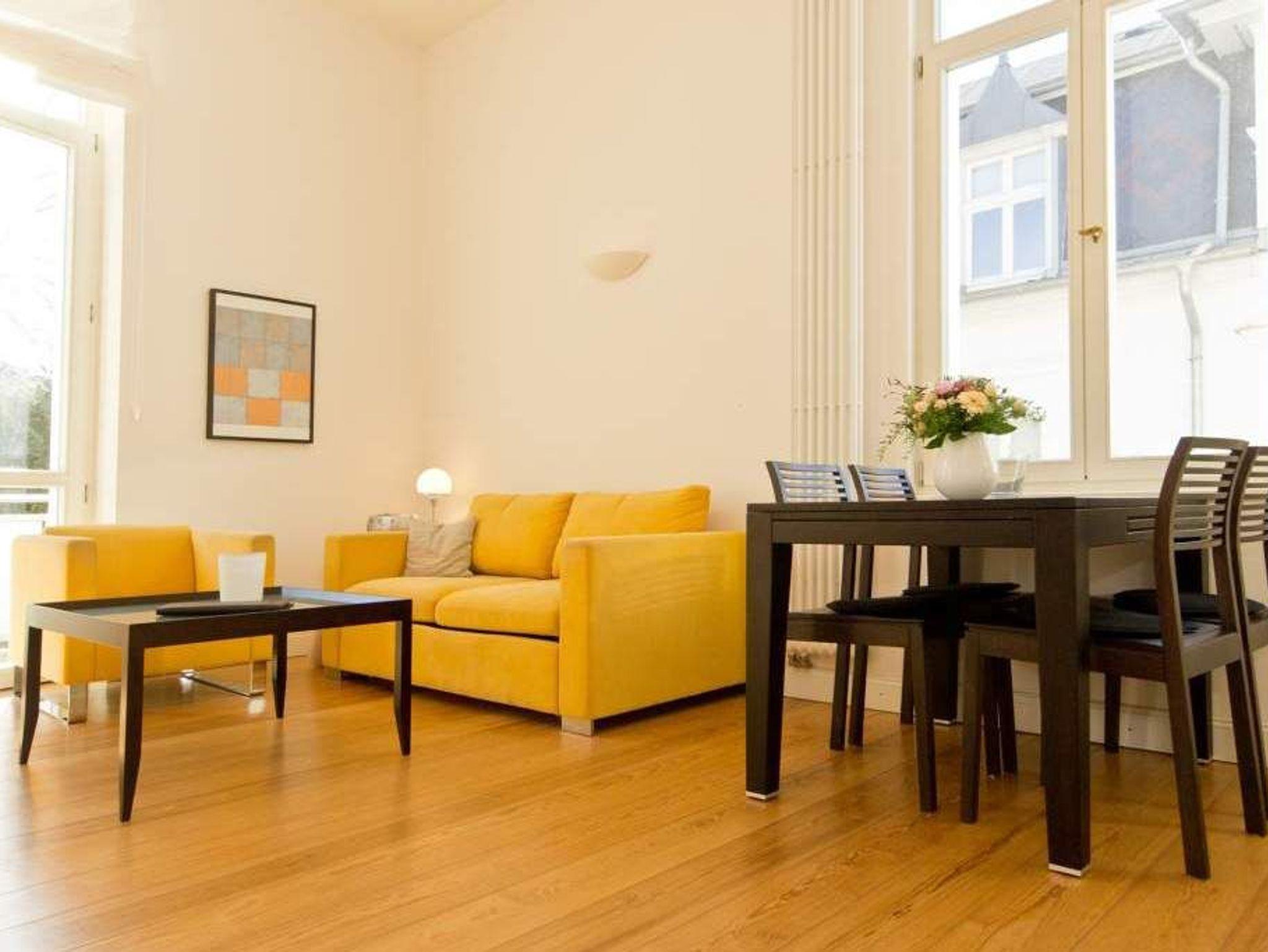 Moderne Ferienwohnung mit Balkon in der historischen Villa Artemis nahe Strand und Wald.
