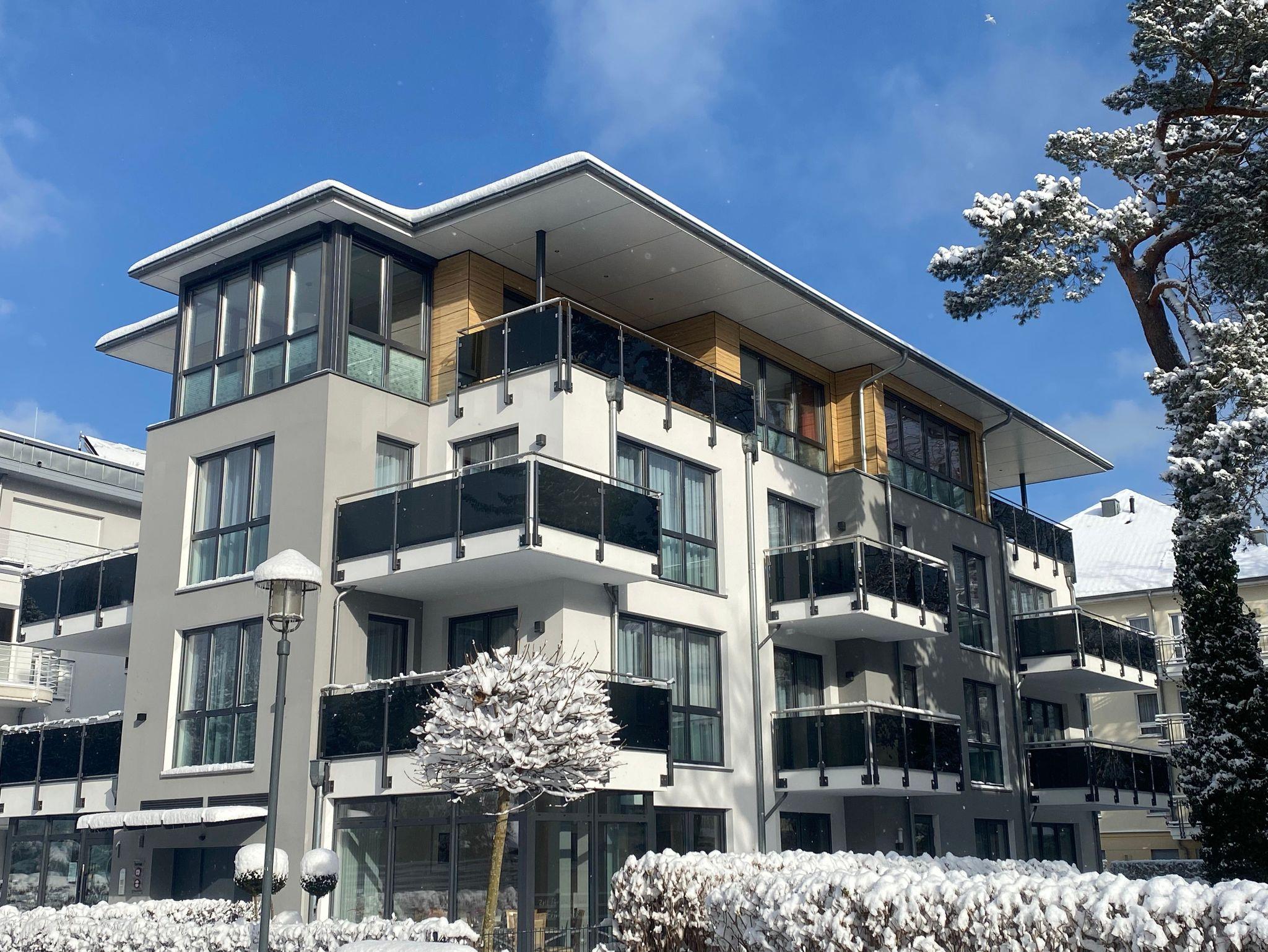 Das Appartementhaus mit 9 exklusiven 2-3 Zimmerwohnungen wurde im September 2019 eröffnet. Hier finden Sie jeglichen Komfort zu zweit oder mit der Familie. Alle 3 Zimmerwohnungen verfügen über zwei Vollbäder und zwei Schlafzimmer mit Doppelbetten. Zusätzlich haben wir auch eine behindertengerechte Wohnung mit zwei Schlafzimmern und zwei Bädern. Einige Wohnungen verfügen über eine eigene Sauna. Alle Wohnungen haben mindestens ein großen Balkon. Das Haus befindet sich im Promenadenbereich der 3 Kaiserbäder. Der Strandaufgang zum feinsandigen Ostseestrand befindet sich unmittelbar vor dem Grundstück. Ihren Strandkorb mieten Sie am Strandaufgang vor dem Haus.