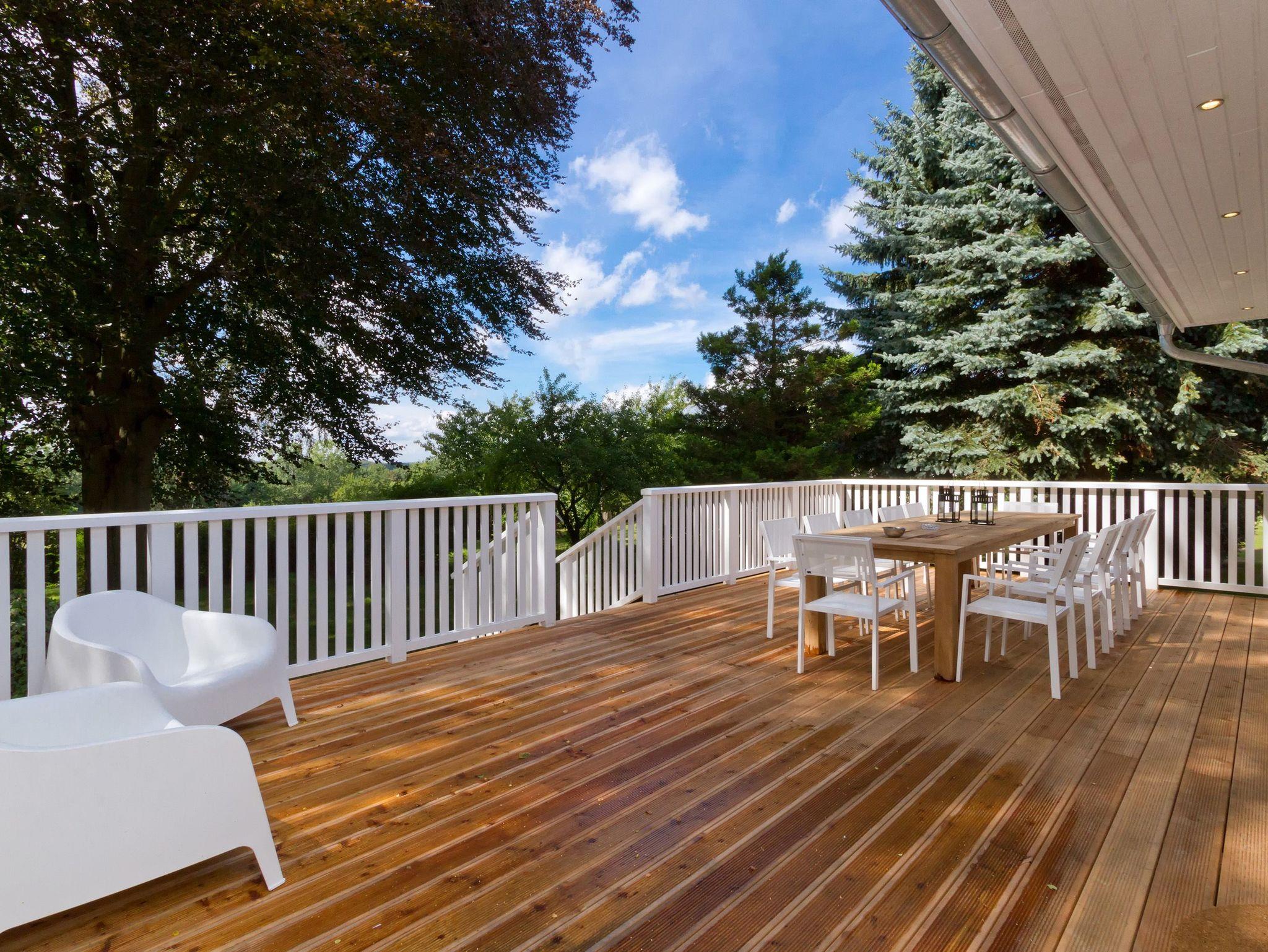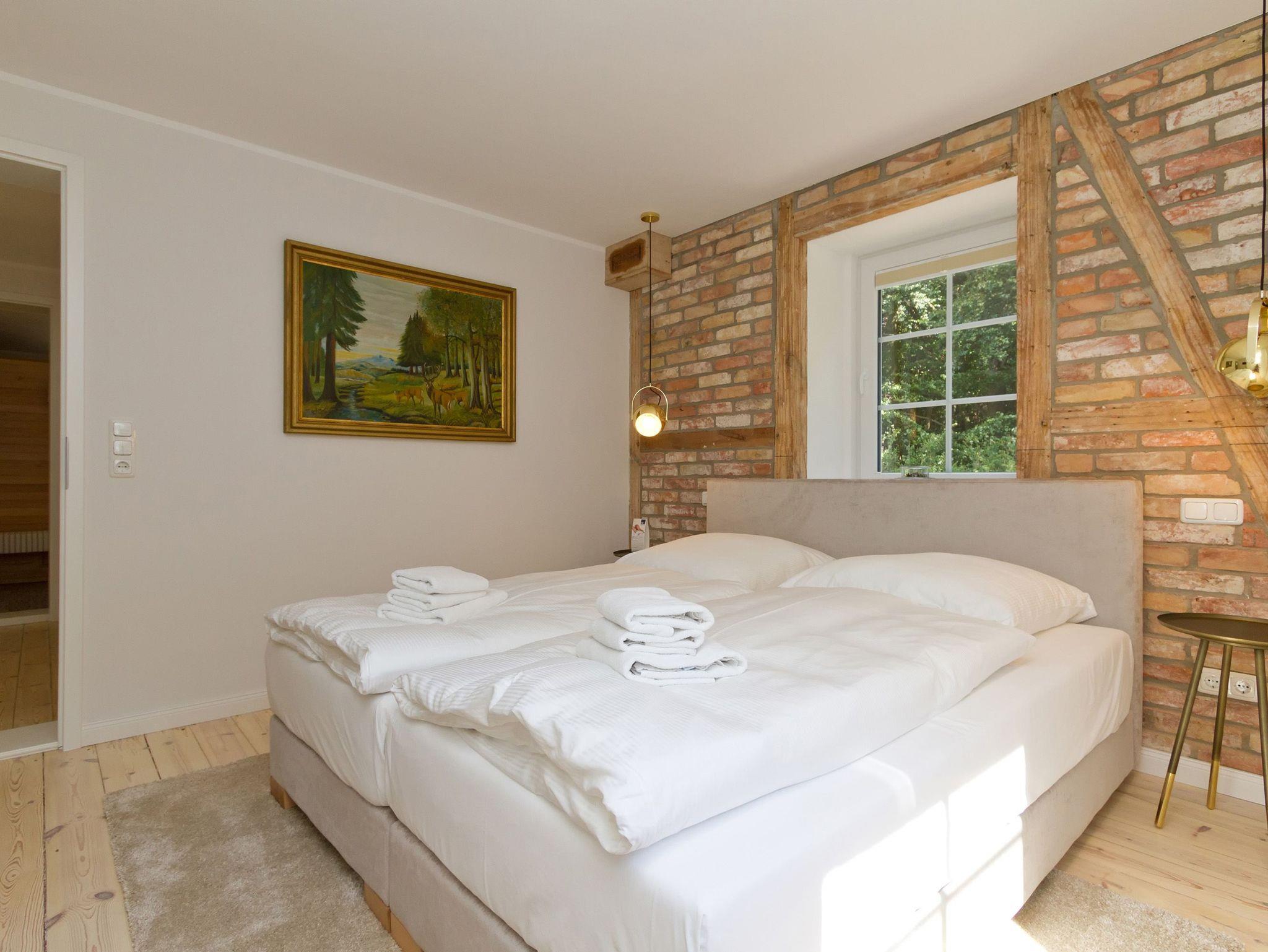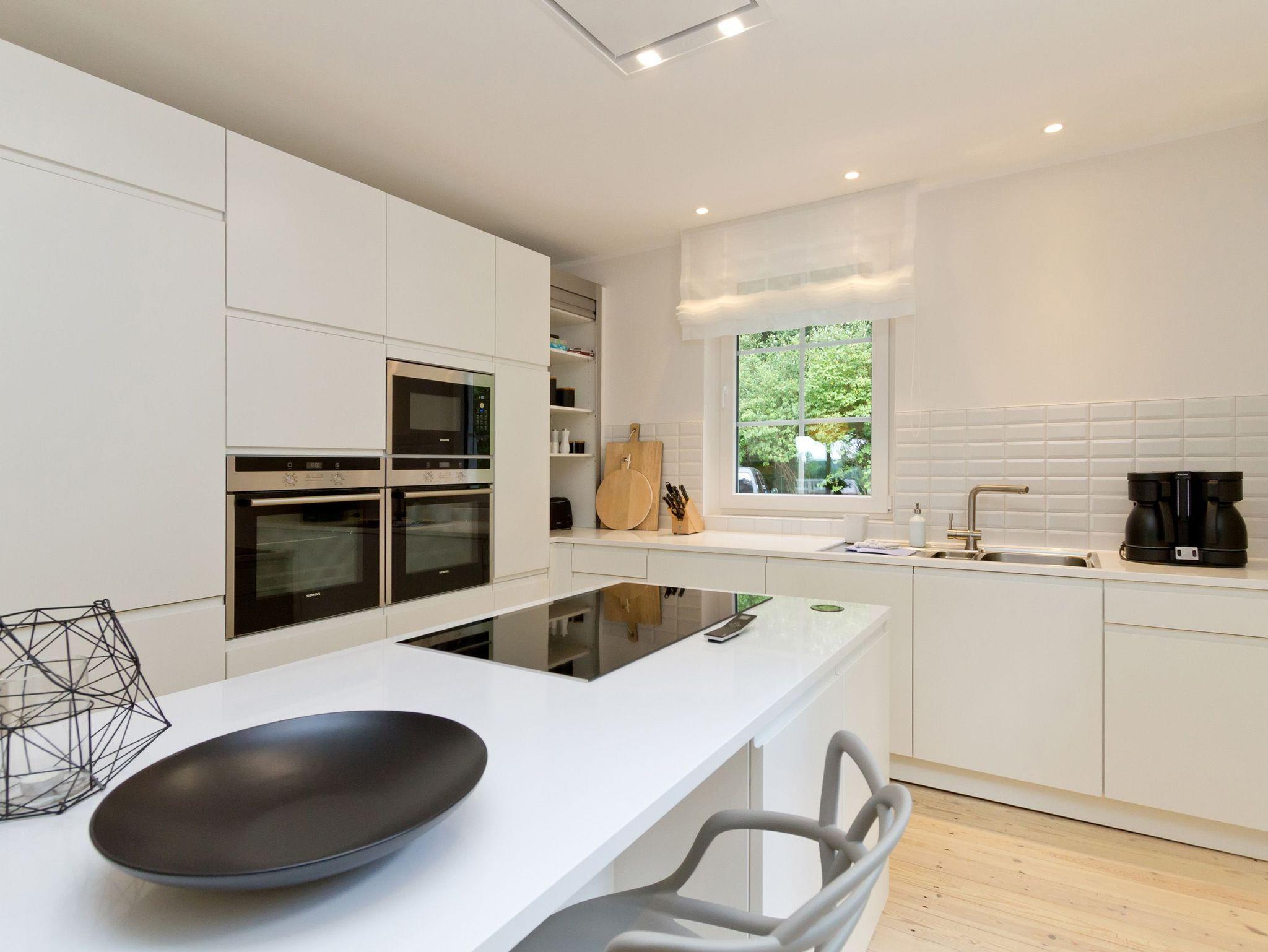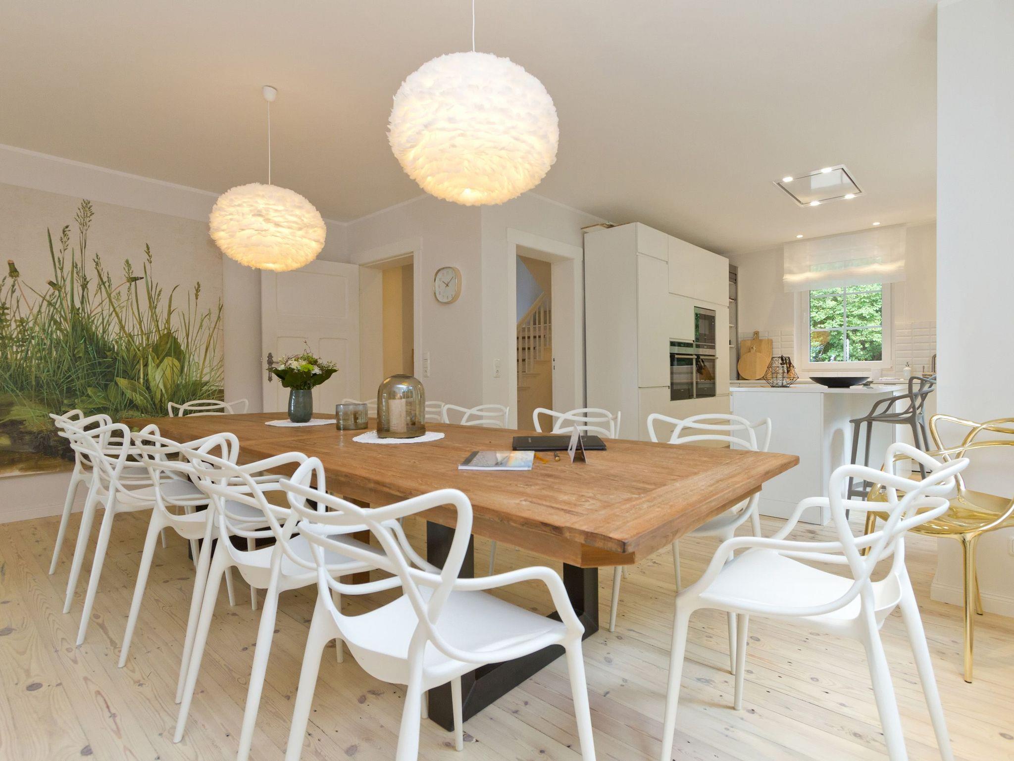 Modern. Stylisch. Großzügig. Das Ferienhaus Adlerhorst hat's! Und zwar von allem ein wenig mehr. Es erwartet Sie viel Platz (240 qm), auch für eine große Familie (für 12 Personen und 3 Kleinkinder bis 3 Jahre im Kinderbett). Die Ausstattung ist modern, stylisch und sehr geschmackvoll. Helle Farben, ein nordischer Stil und hochwertige Materialien verleihen dem Haus Esprit und Charme. Über 3 Etagen verteilt sich hier das Leben. Im Erdgeschoss schließt sich an die offene komplett ausgestattete Küche (2x Backofen, großes Ceranfeld, Kühlschrank, Mikrowelle) der großzügige Essplatz im Esszimmer an. Der wunderschöne alte Holztisch lädt nicht nur zum Essen ein. Die vorgelagerte, helle Veranda dient als großer Wohnbereich. Hier lockt eine chillige Wohnlandschaft, ein riesiger Flat-TV, ein moderner Gaskamin (per Fernbedienung zu nutzen) und ein wunderschöner Blick in den Garten (Zugang zur Terrasse). Ein Schlafzimmer mit einem Duschbad en Suite und ein Gäste-WC (mit Waschmaschine und Trockner) ergänzen das Erdgeschoss. Über die schöne, alte Treppe gelangen Sie in die 2. Etage. Hier finden Sie 3 komplette Schlafzimmer mit komfortablen Doppelboxspringbetten (1,80 m x 2,00m), ein Bad mit Dusche und Badewanne und ein großes Wellnessbad mit Dusche und Sauna, die besonders in der kalten Jahreszeit ein schönes Highlight ist. Im ausgebauten Dachgeschoss bieten zwei weitere Schlafzimmer Platz zum Wohlfühlen. Auch hier sind die Doppelboxspringbetten (1,80 m x 2,00m) für den gesunden Schlaf selbstverständlich. In allen Schlafzimmern gibt es einen Flat-TV. Für Ihren Komfort sind die Betten bei der Anreise bezogen und Handtücher liegen bereit. Für kleine Gäste stellen wir Kinderreisebetten und Kinderhochstühle zur Verfügung.