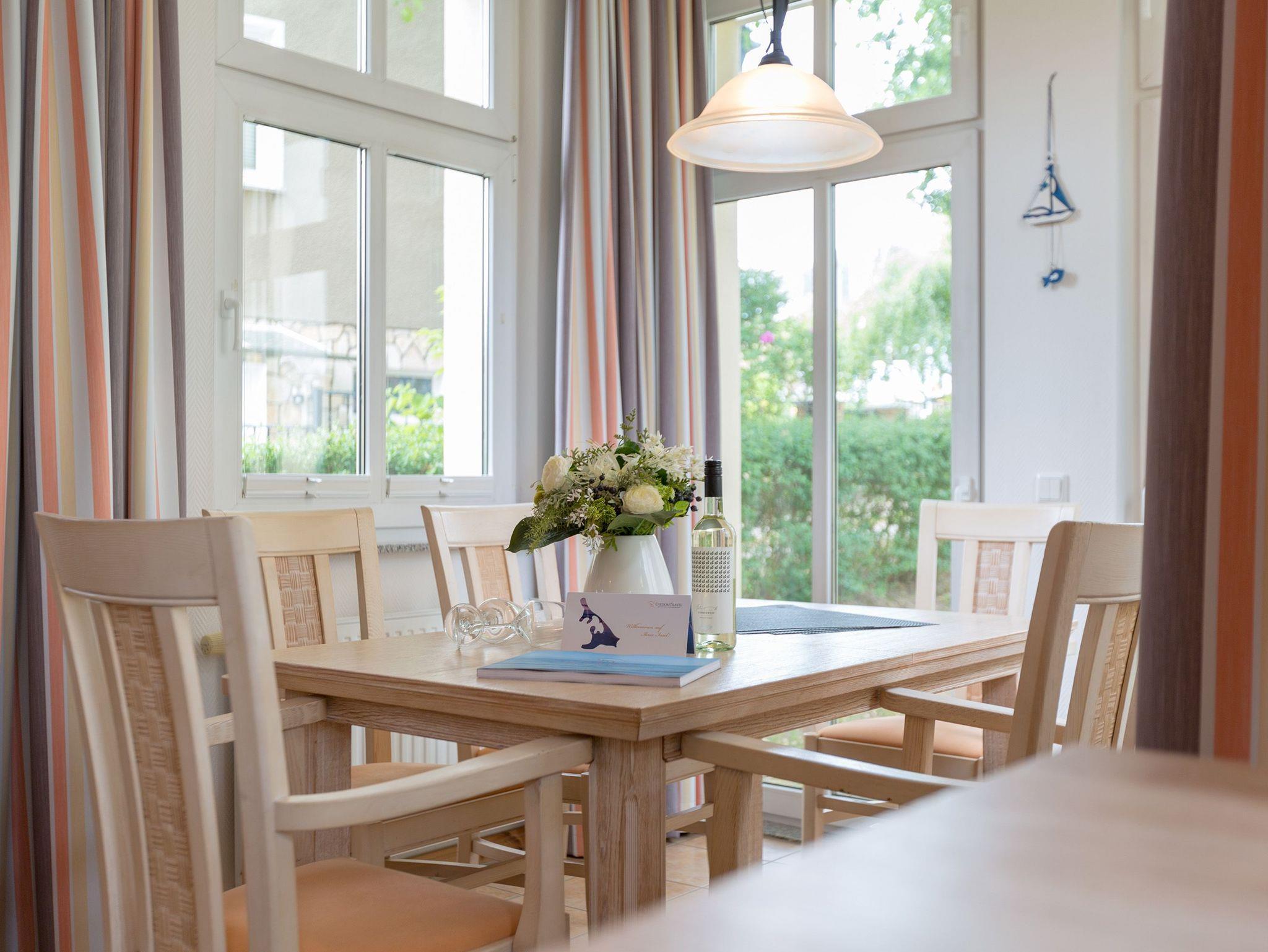 Das Gartenhaus der Ostseevilla ist das richtige Urlaubsziel, wenn Sie Strandnähe, Erholung und Komfort suchen. Ansprechende Appartements, deren Aufteilung sich über das Erd- und Obergeschoss erstreckt, erwarten Sie mit geschmackvoller Einrichtung und einem Kamin. Münzwaschmaschine und -trockner im Nachbarhaus gehören ebenso zur Ausstattung, wie ein PKW-Stellplatz und ein Fahrradabstellraum. Das WLAN-Netz im Haus ist kostenfrei nutzbar.
