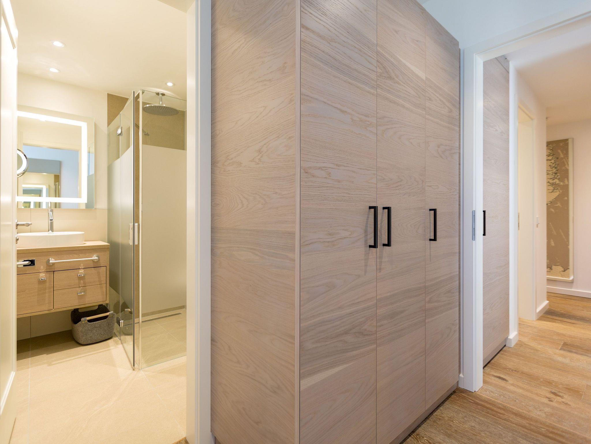 Die großen Fenster lassen viel Licht in dieses exklusive und elegant eingerichtete Feriendomizil der Extra-Klasse im 1. Obergeschoss des modernen Beachhouse direkt an der Bansiner Promenade. Auf 68 Quadratmetern finden Sie in den drei Zimmern und zwei Bädern alles, was Sie sich für einen erholsamen Urlaub zu viert plus Kind (bis drei Jahre im Kindereisebett) und geliebtem Vierbeiner nur wünschen können. Viel Platz zum Durchatmen und Ausspannen haben Sie im wunderschönen und stylischen Wohn-Ess-Zimmer. Hier stimmt einfach alles. Und alles ist aufeinander abgestimmt. Denn das Auge erlaubt schließlich mit. Farben und Möbel bilden in diesem kleinen Paradies auf Zeit eine harmonische Einheit. Nordische Schlichtheit und hochwertige Natur-Materialien und Möbel sorgen für viel Lagom das schwedische Wort für Balance und Ausgewogenheit. Ein Gas-Kamin ist an ungemütlichen Tagen ein echtes Wohlfühl-Highlight. Beobachten Sie das Flammenspiel vom bequemen Sofa aus. Oder lassen Sie sich vom Flat-TV unterhalten. Zur High-End-Ausstattung gehört auch eine Hi-Fi-Anlage mit Bluetooth-Funktion. Das WLAN ist kostenfrei. In der vollausgestatteten und offenen Küche finden Sie alles für extravagante Kochsessions. Der schöne Esstisch bietet den passenden Rahmen zum Dinieren. Doch was wünscht sich der ostseehungrige Auszeitler am meisten? Das Meer im Blick und in den Ohren. Vom Balkon aus können Sie Ihre Sehnsucht nach dem endlos weiten Blau stillen. Sehen Sie sich ruhig satt an der Ostsee, die von hier aus zum Greifen nah scheint. Schließlich ist sie auch nur ein paar Meter vom Beachhouse entfernt. Auf den kleinen Balkon (9 Quadratmeter) mit Süd-West-Ausrichtung führen alle drei Zimmer hinaus. Genießen Sie auf den gemütlichen Gartenstühlen bei einem erfrischenden Getränk den Sonnenuntergang. Und tauchen des Nachts ein in entspannende Träume. Denn die bequemen Boxspringdoppelbetten (1,80 m x 2,00 m) in jedem Schlafzimmer warten nur darauf, Sie damit zu verwöhnen. Jedes Schlafzimmer hat zudem einen geräumigen Schrank und einen eigenen Flat-TV. Die zwei Bäder sind zwei Wellness-Oasen für sich. Unter den Regenduschen wird der wohlig warme Schauer zum Vergnügen. Großzügige Waschtische mit beleuchteten Spiegeln bieten viel Platz zum Frischmachen oder Stylen. Ein weiteres Highlight dieses Appartements ist die Finnische Sauna im Masterbad. Hier können Sie getrost die Alltagssorgen ausschwitzen. Handtücher liegen bei Anreise für Sie bereit und die Betten sind bezogen. In einem kleinen Hauswirtschaftsraum befindet sich ein Wasch-Trockner. In der modernen Tiefgarage ist für Sie der Stellplatz Nr. 6 im Doppelparker oben (max. Höhe 2,00 m, max. Länge 5,10 m, max. Breite 2,50 m, max. Last 2.600 kg) reserviert.