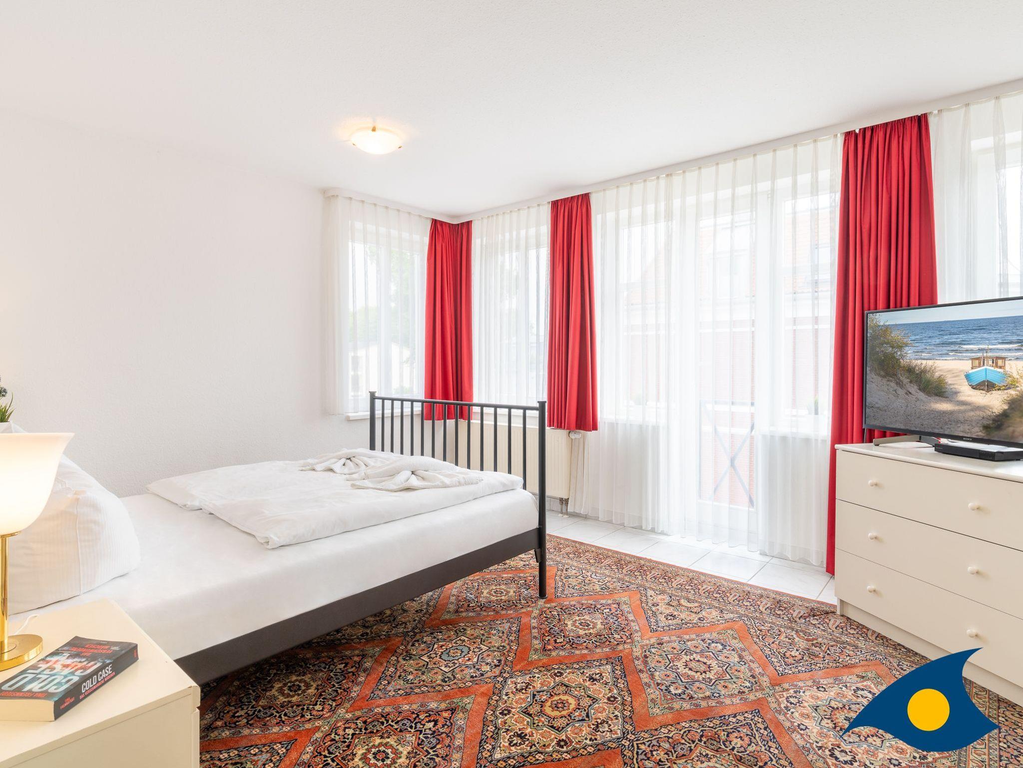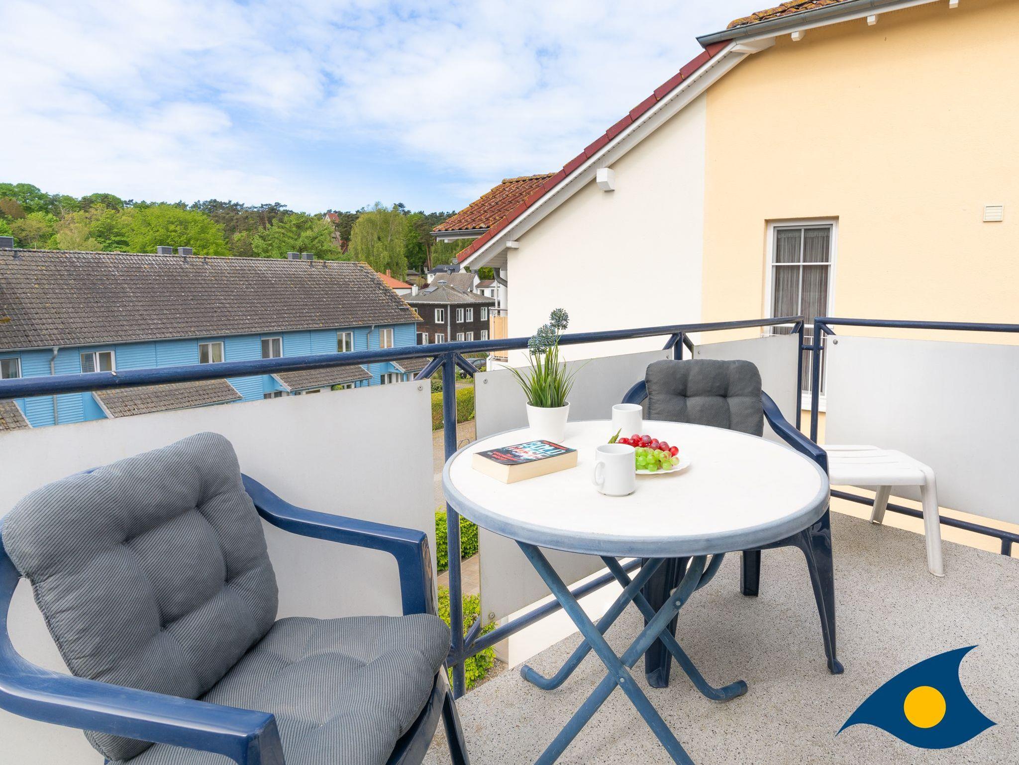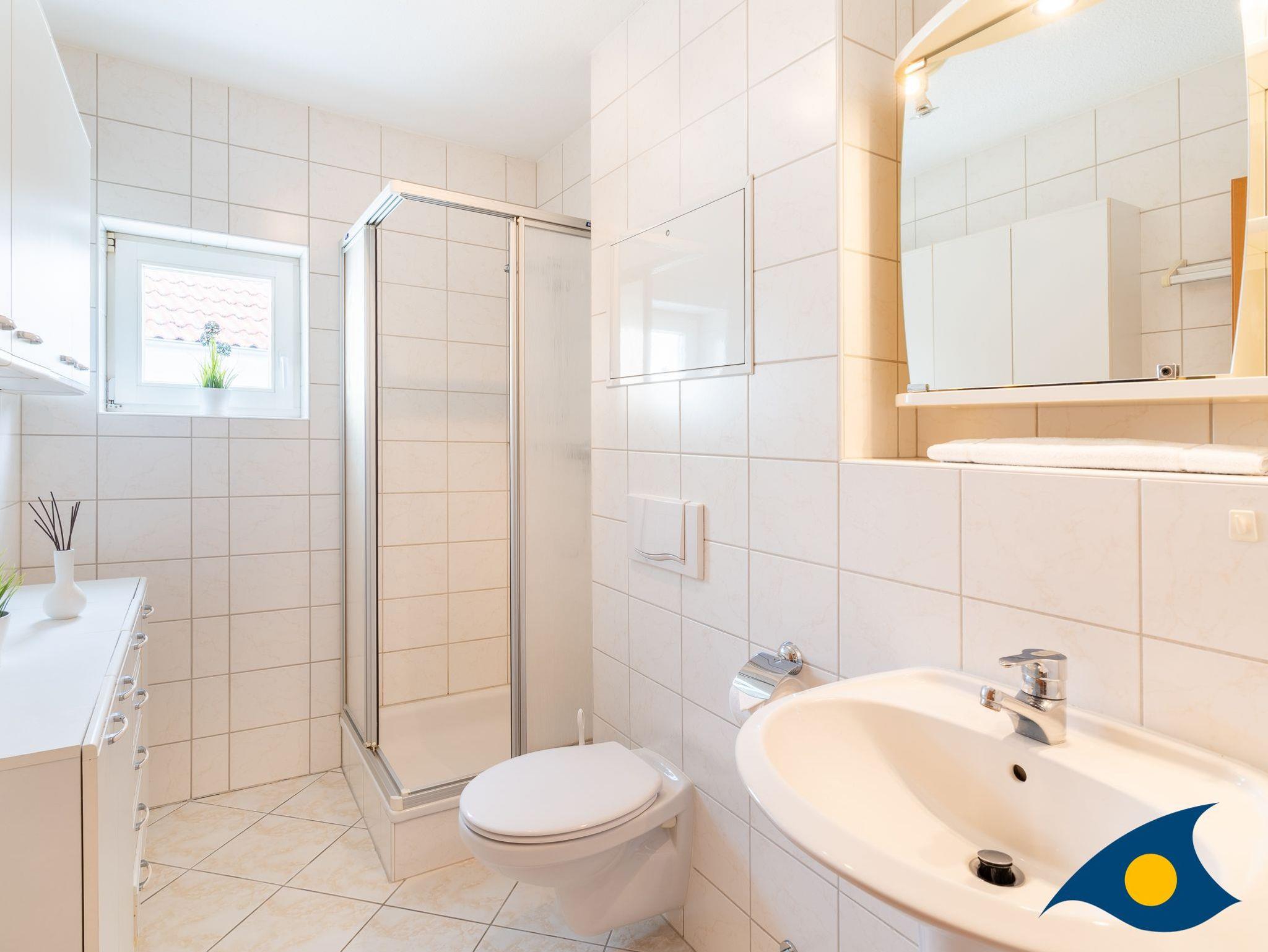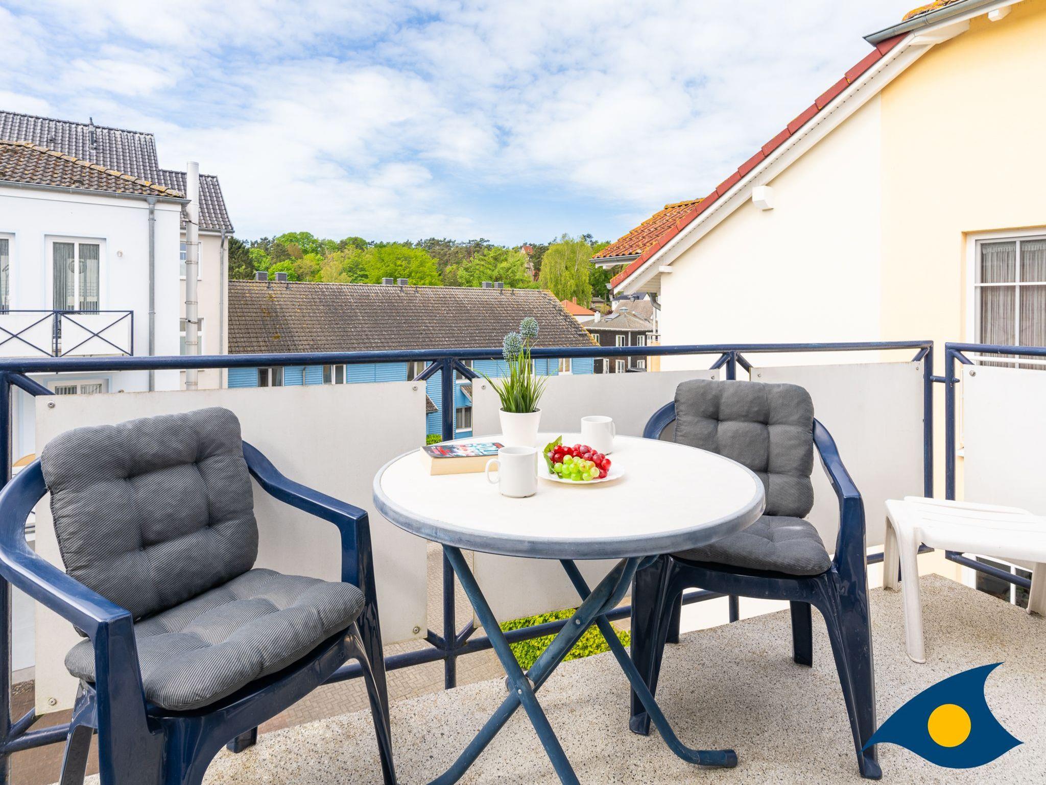 Im 2. Obergeschoss des Hauses befindet sich diese ca. 50 qm große Ferienwohnung, die Platz für bis zu 4 Personen bietet. Vom Wohnzimmer aus gelangen Sie auf den Sonnenbalkon, der mit einer Markise ausgestattet ist. Die separate Küche ist voll ausgestattet.