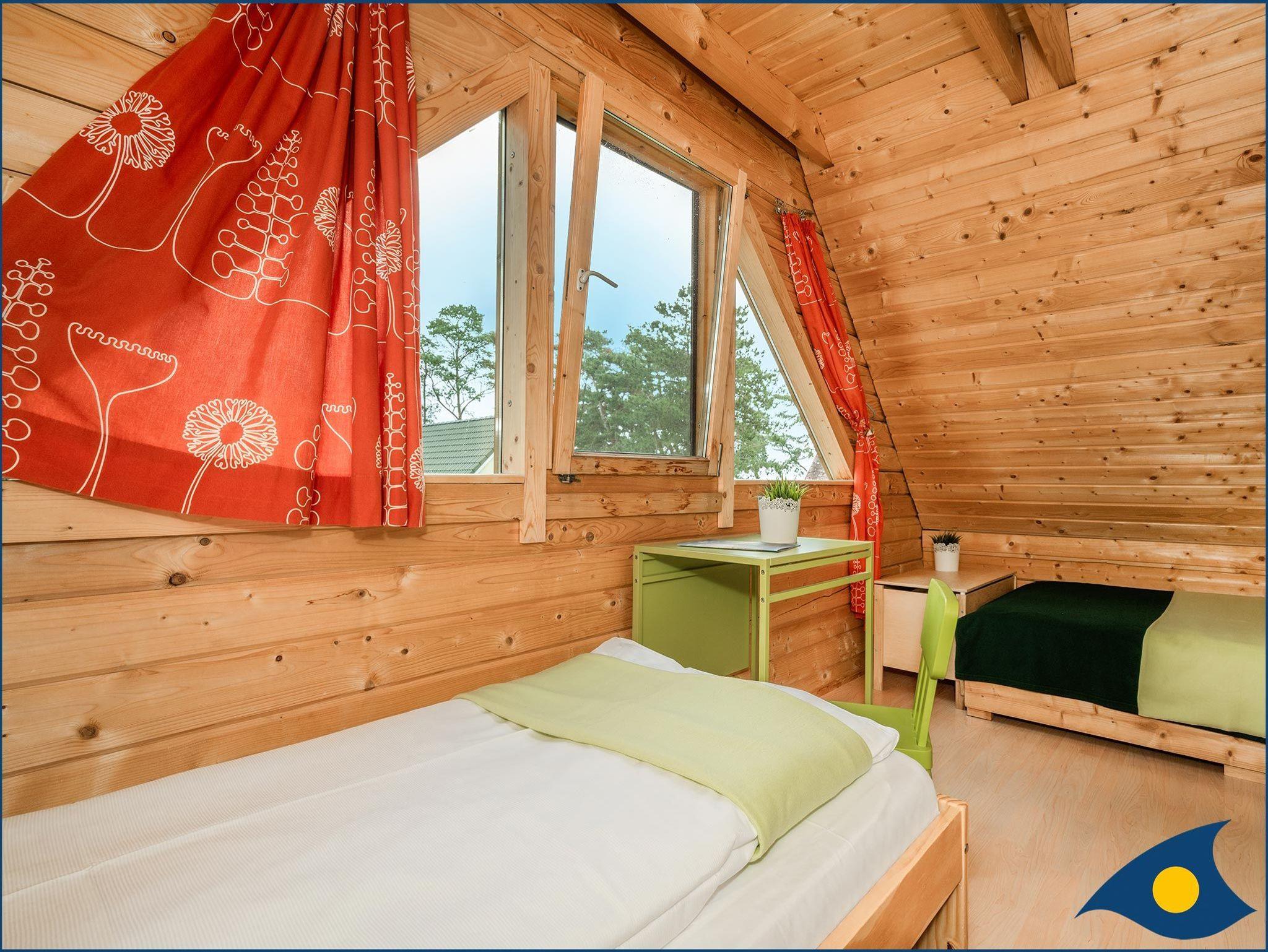 Beide Schlafzimmer liegen im Obergeschoss, eins mit einem bequemen Doppelbett und eins mit zwei Einzelbetten und einer Liege. Das große Schlafzimmer verfügt zusätzlich über eine Sitzecke, die eine Rückzugsmöglichkeit, aber auch einen weiteren Fernsehplatz bietet.