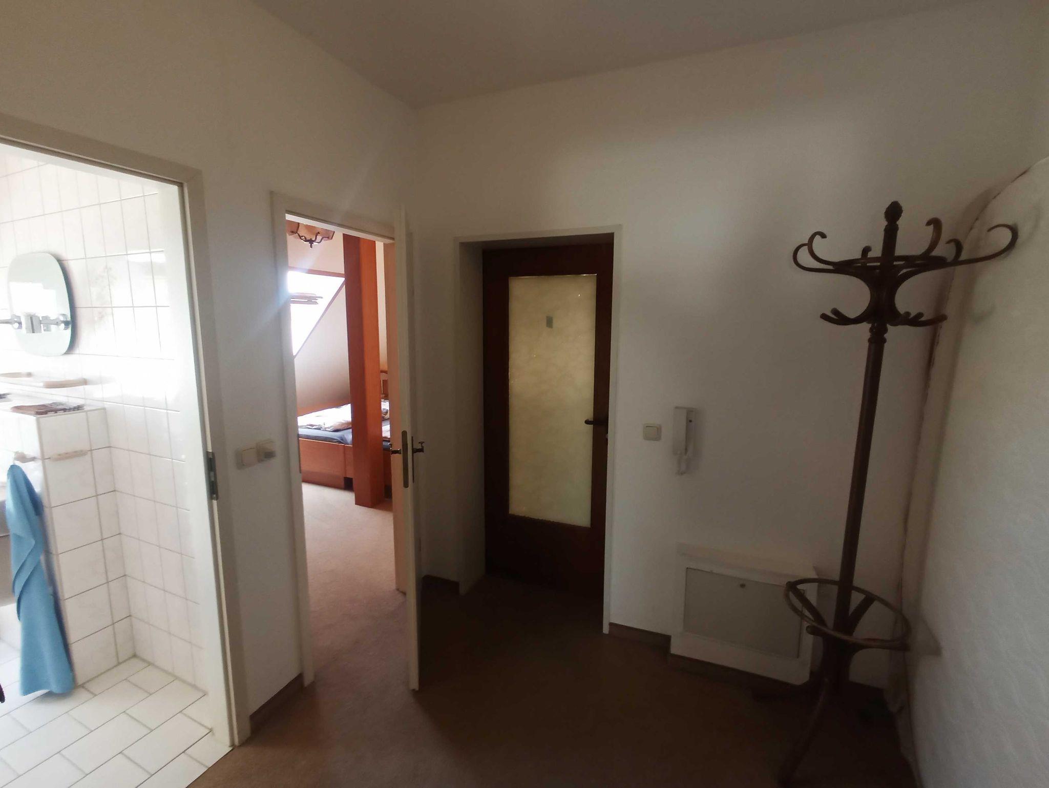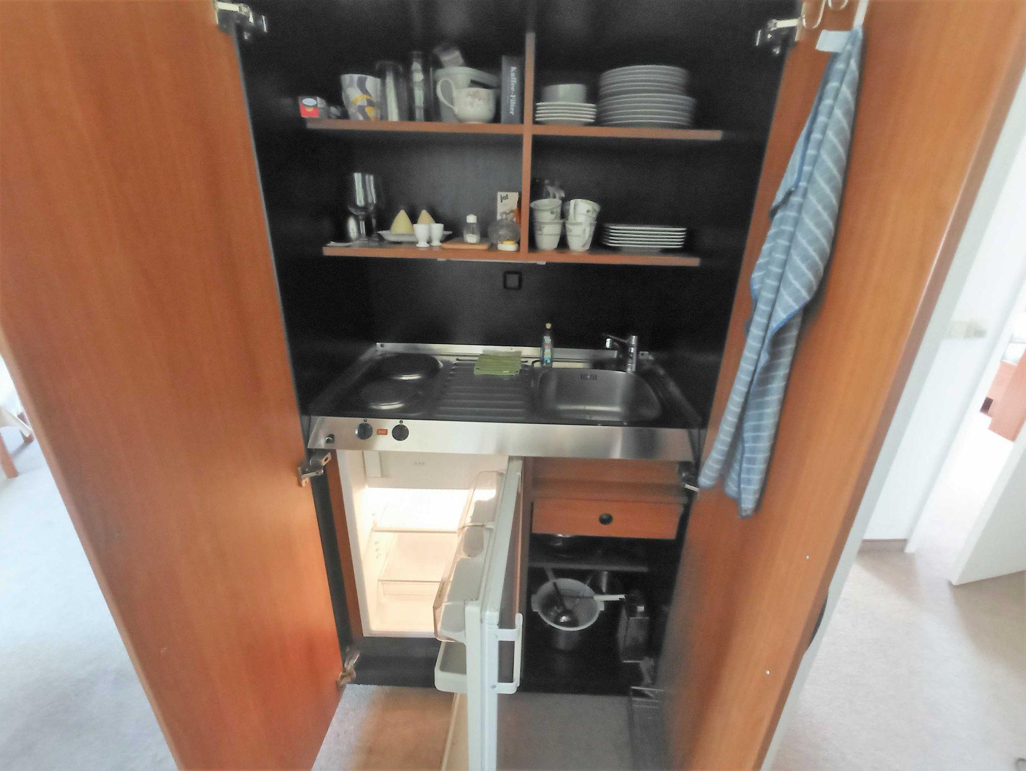 Die 2-Raum-Wohnung in der 2. Etage mit 40 m² für 2-3 Personen verfügt über einen Wohnraum mit Pantryküche, 1 Schlafzimmer mit Doppelbett und Einzelbett, Bad mit Dusche und WC.