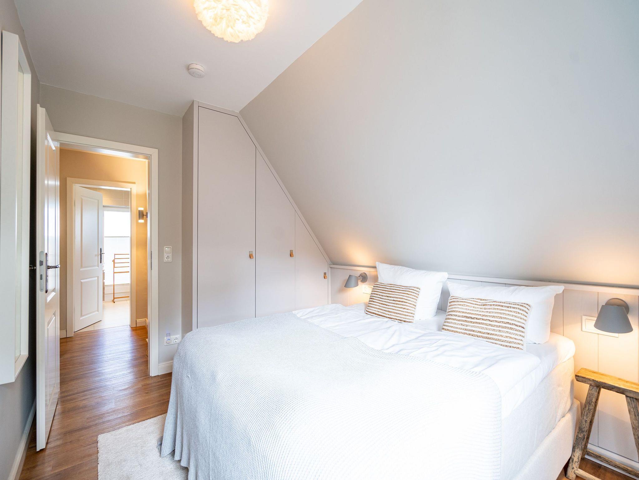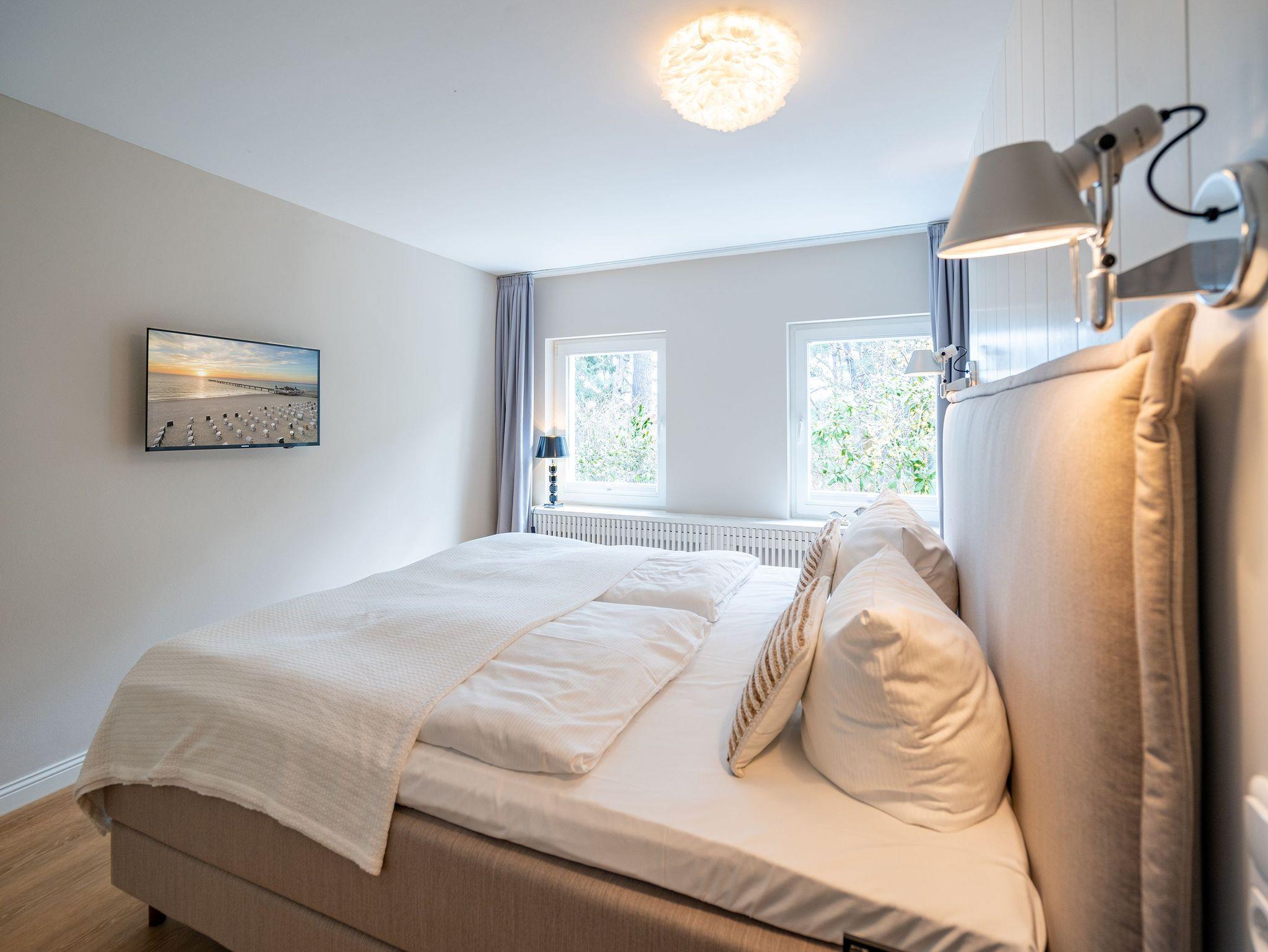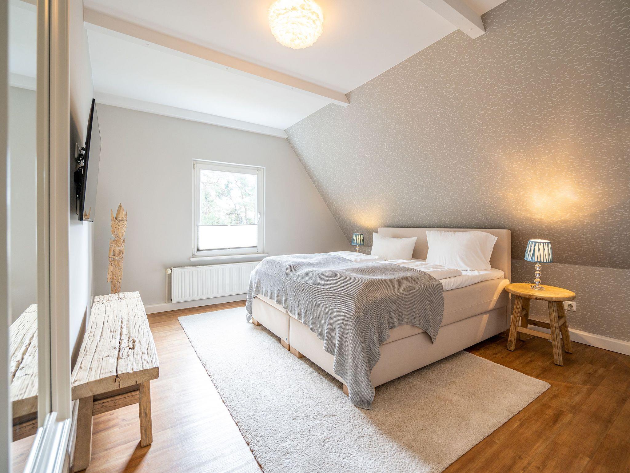 Von einer Innenarchitektin gestaltet und zentral, aber dennoch ruhig gelegen, offeriert Ihnen das Ferienhaus einen zeitlos-eleganten Wohnkomfort auf drei Ebenen. Modern und gekonnt eingerichtet, mit sehr viel Liebe zum Detail dekoriert, bietet es Platz für den Urlaub zu zweit, mit Freunden oder in Familie (max. 8 Personen und 2 Kleinkinder bis 3 Jahre). Im Erdgeschoss des Hauses finden Sie den großzügigen Wohnbereich mit bequemer Sitzgruppe, Flat-TV und Holzofenkamin. Auf der angrenzenden Südterrasse mit Strandkorb und Gartenmöbeln lässt es sich gemütlich bis in die Abendstunden hinein relaxen. Weiterhin befinden sich auf dieser Etage eine neue, sehr gut ausgestattete Küche, ein Esszimmer, eine gemütliche Leseecke und ein Gäste-WC. Im Obergeschoss bieten die 3 Schlafzimmer mit hochwertigen Boxspringbetten (1,80m x 2,00m und Flat-TV und 1 x 1,60m x 2,00m ) eine großzügige Schlafraumsituation, die durch ein Bad mit Dusche, WC und kleiner Badewanne ergänzt wird.