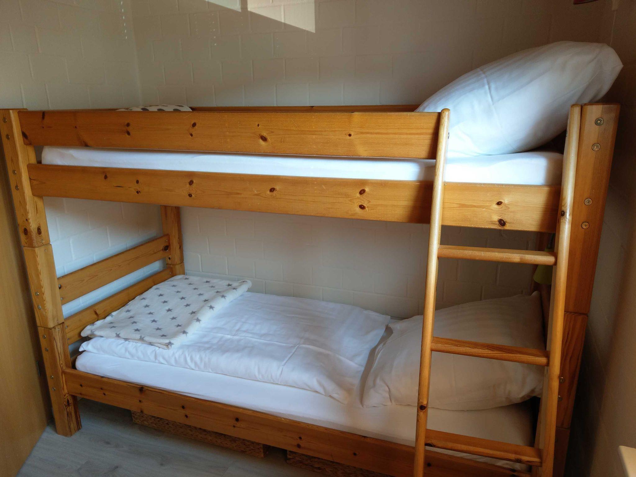Kinderzimmer mit Etagenbett. Beide Zimmer haben neu Kleiderschränke. Das Bad