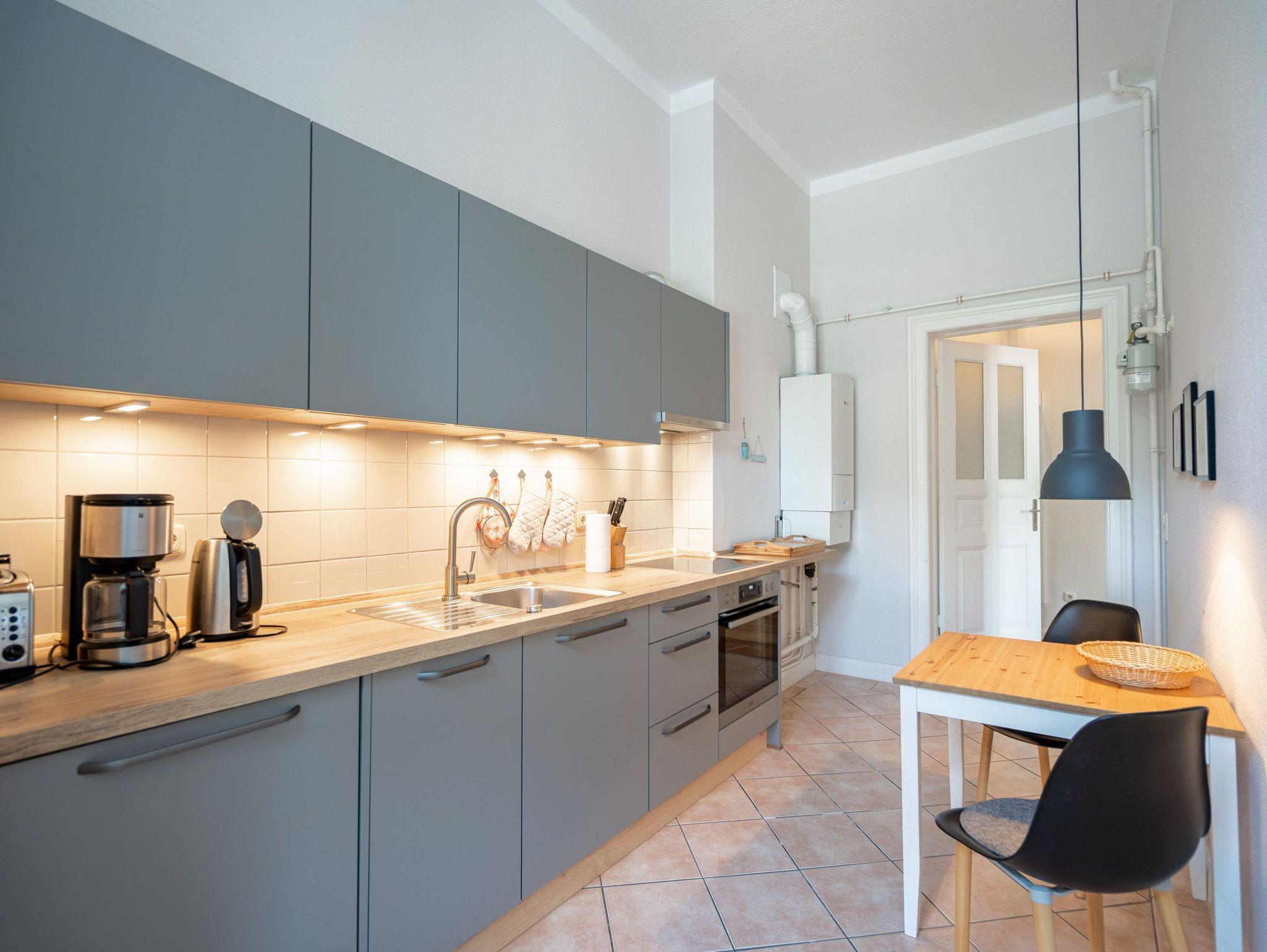 Das Meer zum Greifen nahe, erwartet Sie eine einladendes 2-Raum-Ferienwohnung (62 qm) im 1. Obergeschoss der Villa. 4 Personen finden hier in den hellen, freundlichen Räumen Platz zum Wohlfühlen. Der Wohnbereich ist mit einer bequemen Sitzgruppe (dient als Aufbettungsmöglichkeit für die 3. und 4. Person), Flat-TV und Blue-Ray-DVD-Spieler ausgestattet. Die lichtdurchflutete, verglaste Veranda mit Essplatz wird sicher schnell zu Ihrem Lieblingsplatz, von hier hat man (durch die Villen in der 1. Reihe) einen schönen Blick auf die Ostsee. Im großzügigen Schlafzimmer verspricht das moderne Boxspringbett angenehmen Schlafkomfort. Die separate und komplett ausgestattete Küche mit kleinem Essplatz und das Bad mit Dusche, WC und Bidet ergänzen die Wohnung. Ein Pkw-Stellplatz (Nr.7) befindet sich am Haus. Das WLAN-Netz ist kostenfrei verfügbar. Für Ihren Komfort sind die Betten bei der Anreise bezogen und Handtücher liegen bereit. Auf Wunsch stellen wir für unsere kleinen Gäste ein Kinderreisebett und einen Kinderhochstuhl ( gegen einen Aufpreis) zur Verfügung.