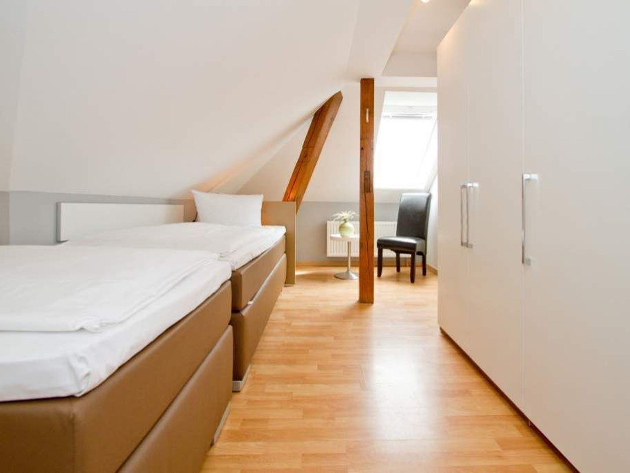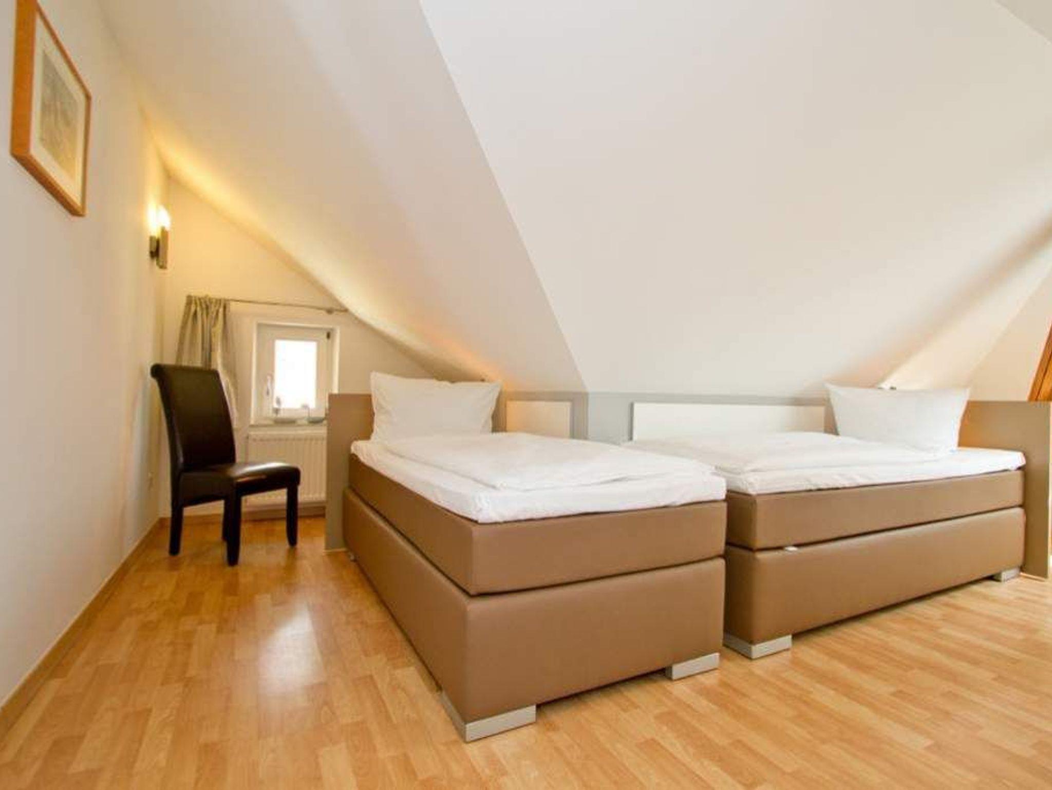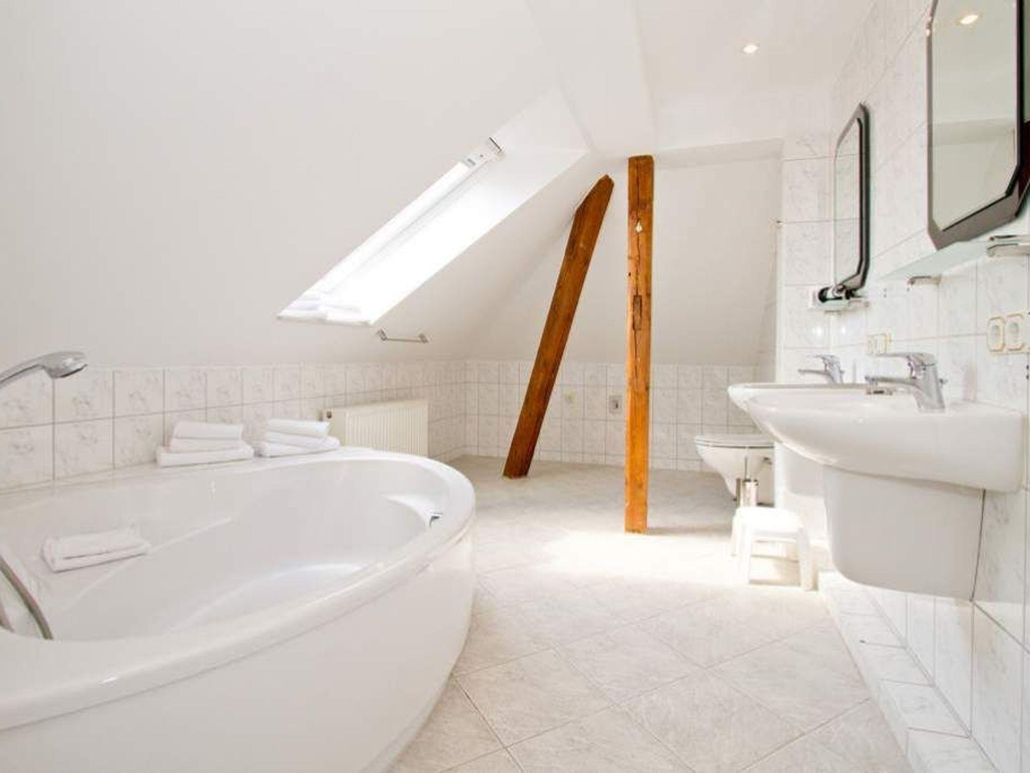 Viel Platz (100 qm) und jede Menge Gemütlichkeit erwarten Sie im Dachstudio der Villa Dora. Die Ferienwohnung 14 bietet Platz für bis zu 4 Personen. Moderne Möbel und Ausstattungen, gepaart mit Dachbalken und Schrägen, ergeben hier eine besonders wohnliche Atmosphäre. Der schöne Wohnbereich ist mit bequemer Sitzgruppe und Flat-TV ausgestattet. Hier findet man auch eine kleine Rückzugsecke unter der Dachschräge. Auf zwei Sesseln genießt man von hier aus, aus den kleinen Dachfenstern, den tollen Blick auf die Ostsee. Sicher wird dies schnell zu Ihrem Lieblingsplatz. Die zum Wohnbereich angrenzende, offen gehaltene Küche ist komplett ausgestattet und bietet auch dem Esstisch Platz. Zwei Schlafzimmer mit komfortablen Boxspringbetten (1x Doppelbett (1,60m x 2,00m) / 1x getrennte Betten (0,80m x 1,90m)) ergänzen die Wohnung ebenso wie das große Bad mit Doppelwaschbecken, WC, Dusche und Eck-Badewanne. Für Ihren Komfort sind die Betten bei der Anreise bezogen und Handtücher liegen bereit. Für kleine Gäste kann ein Kinderreisebett und ein Kinderhochstuhl bestellt werden. Für Ihren PKW steht Ihnen ein Parkplatz mit Poller vor dem Haus zur Verfügung.
