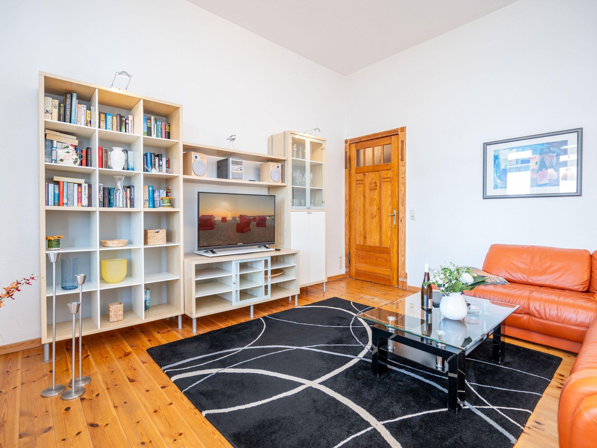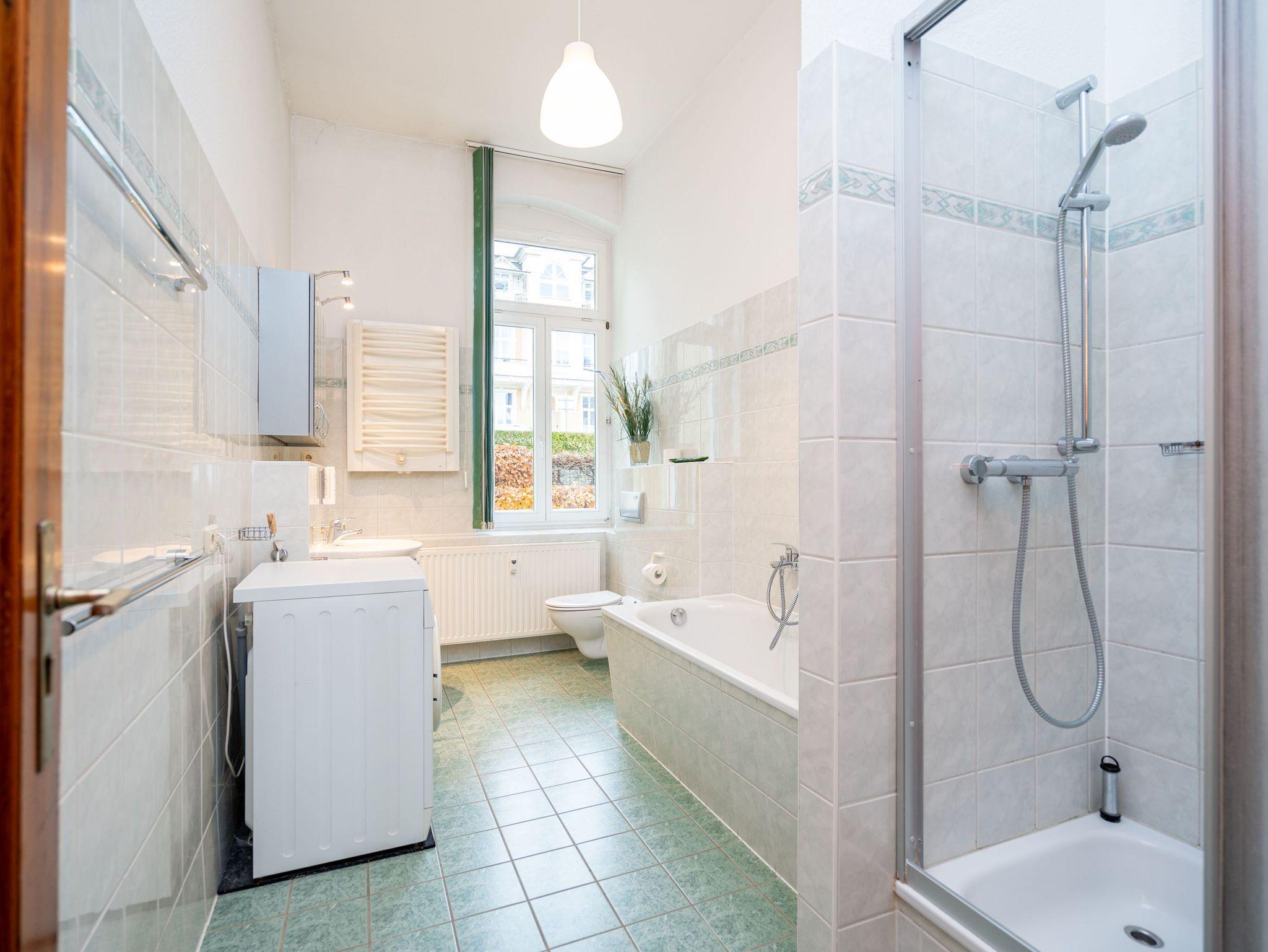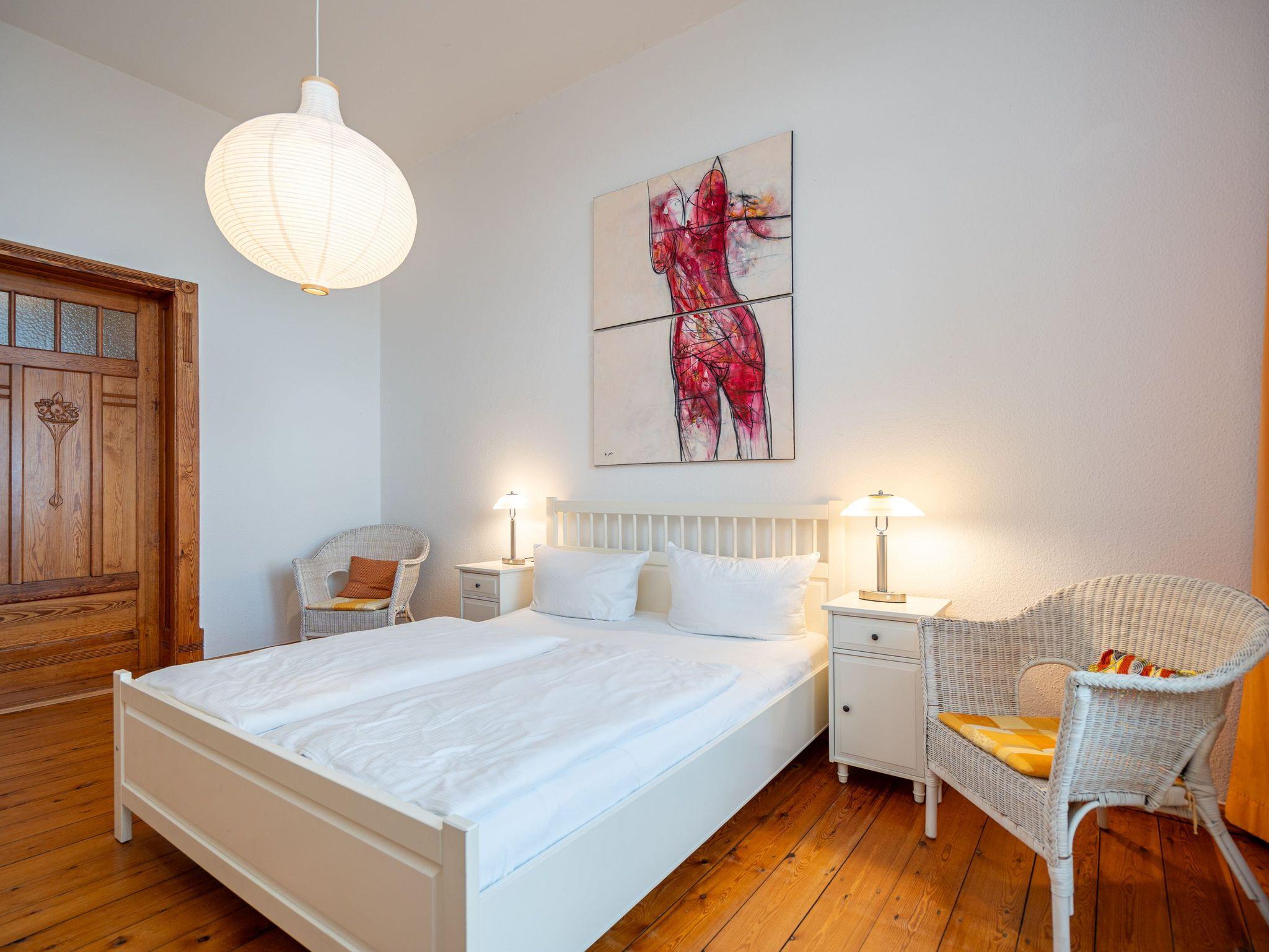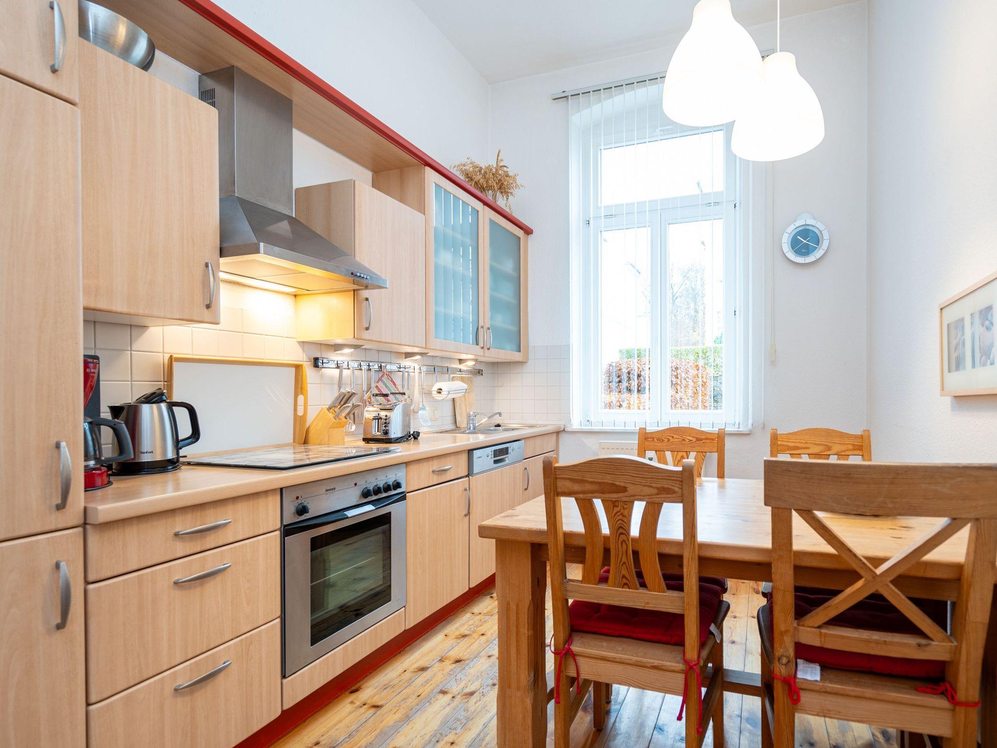 Die großzügige, lichtdurchflutete Ferienwohnung im Hochparterre der Villa bietet Platz für bis zu vier Personen und ein Kleinkind bis 3 Jahre. Von hier genießen Sie einen fantastischen Blick auf die Ostsee. Das geschmackvoll eingerichtete Appartement verfügt über ein Wohnzimmer mit verglaster Veranda, eine komplett ausgestattete Küche, zwei Schlafzimmer (ein Schlafzimmer mit Doppelbett, eines mit zwei Einzelbetten) sowie ein Bad mit Badewanne, Dusche und Waschmaschine. Der zur Ostsee ausgerichtete Balkon mit Strandkorb lädt zum Verweilen ein. Für Kleinkinder kann auf Wunsch ein Babyreisebett ohne zusätzliche Matratze sowie ein Hochstuhl gegen Gebühr bereitgestellt werden.