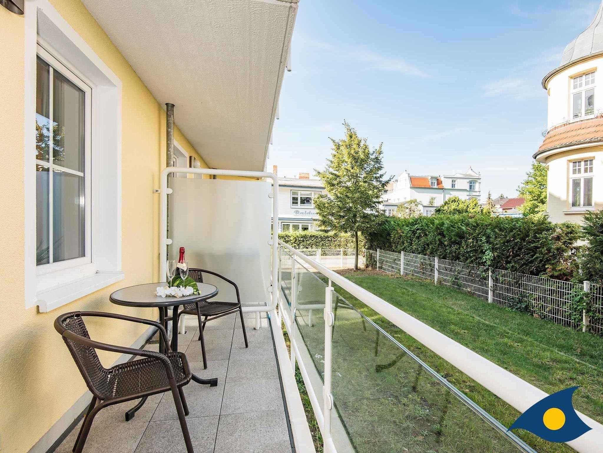 Der Balkon lädt zum morgendlichen Frühstück, zum Entspannen und einem Gläschen Wein am Abend ein.