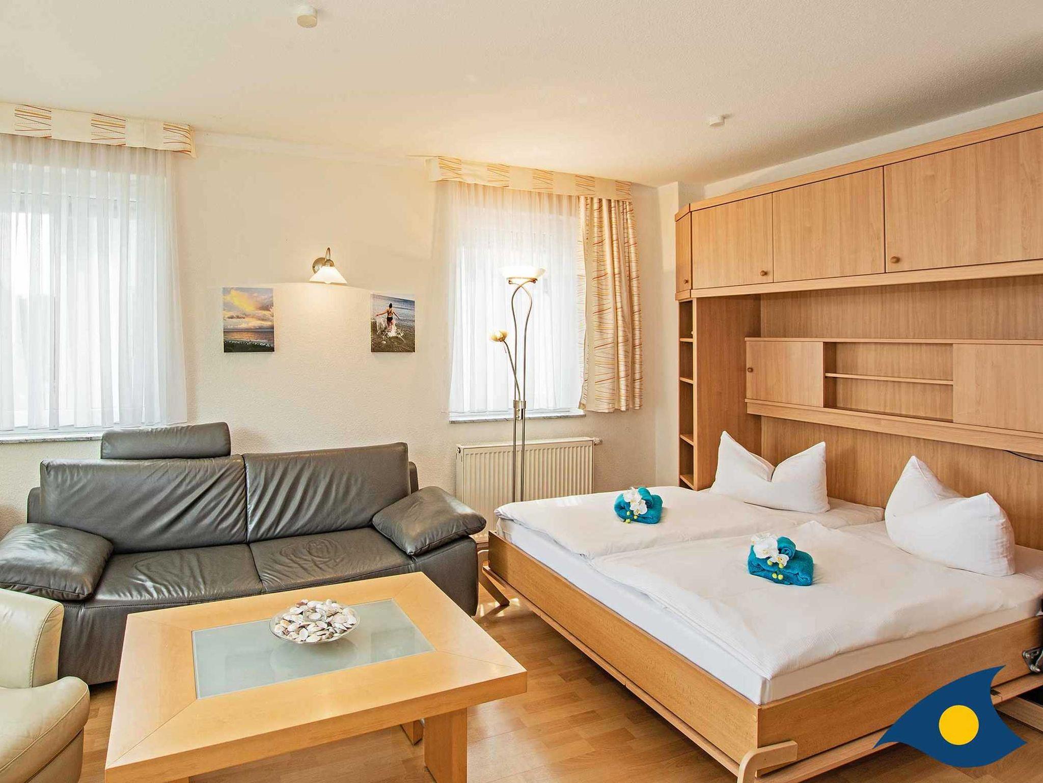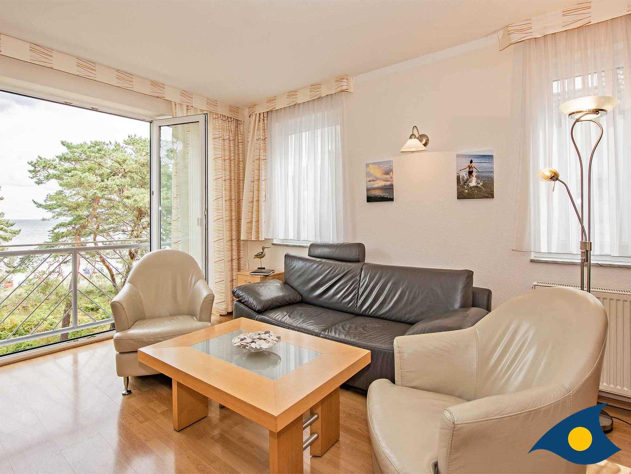 Dieses modern und liebevoll eingerichtete Appartement in der 4. Etage bietet einen fantastischen Blick auf die Ostsee. Im Wohnzimmer befindet sich ein komfortables Schrankbett mit Federkernmatratze für die dritte und vierte Person. Das Schlafzimmer ist mit einem zusätzlichen Fernseher ausgestattet. Ein CD-Player steht ebenfalls zur Verfügung.