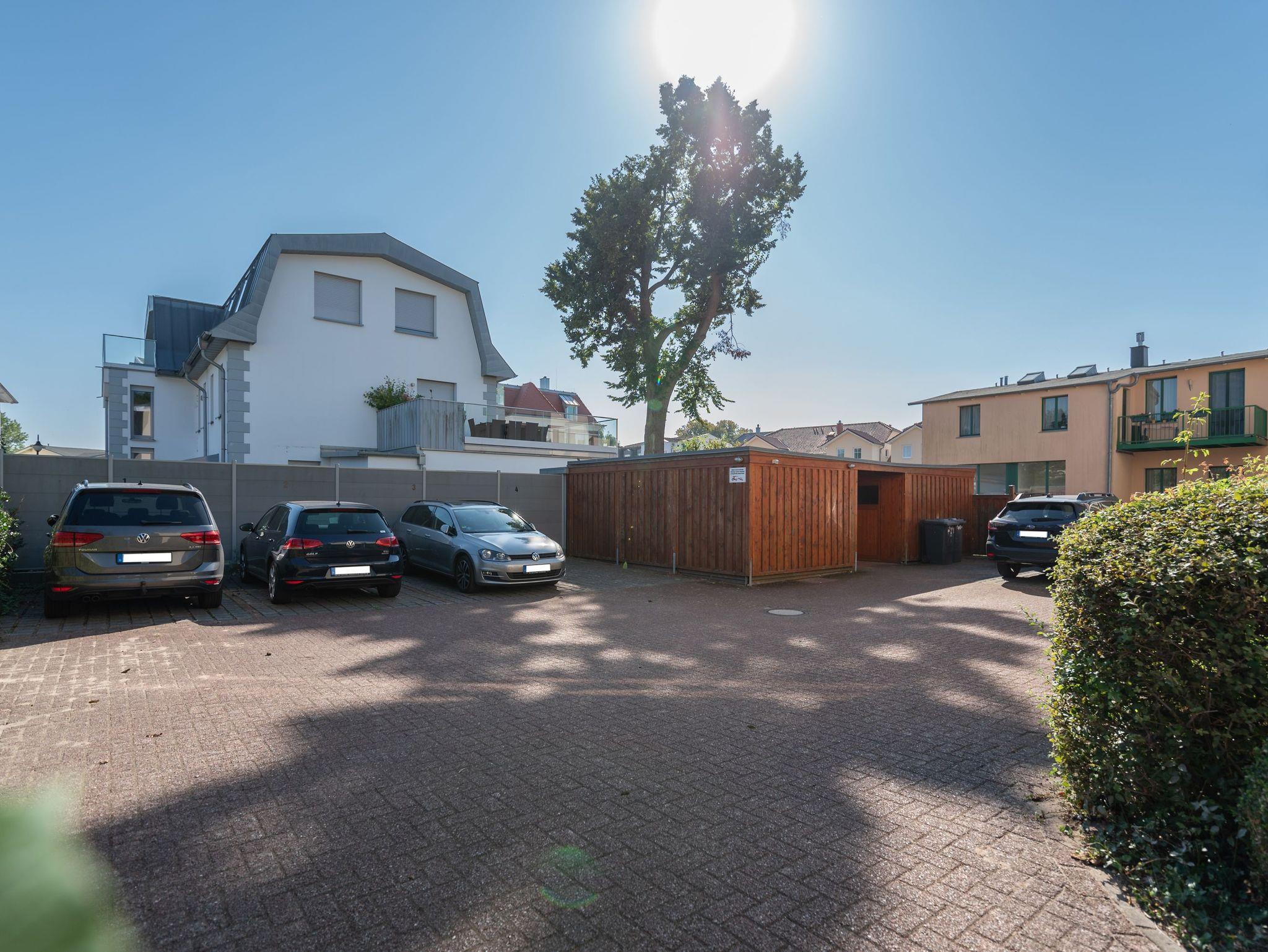Zur Wohnung gehört ein eigener Stellplatz und ein abschließbarer Schuppen, in dem Sie zusätzliche Dinge sicher unterbringen können.