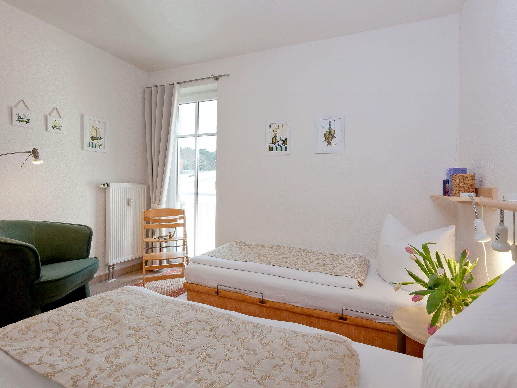 Im Schlafzimmer ist die Aufbettung mit einem Kleinkind bis 3 Jahre in einem Babyreisebett möglich. Das Babyreisebett können Sie kostenlos hinzubuchen.