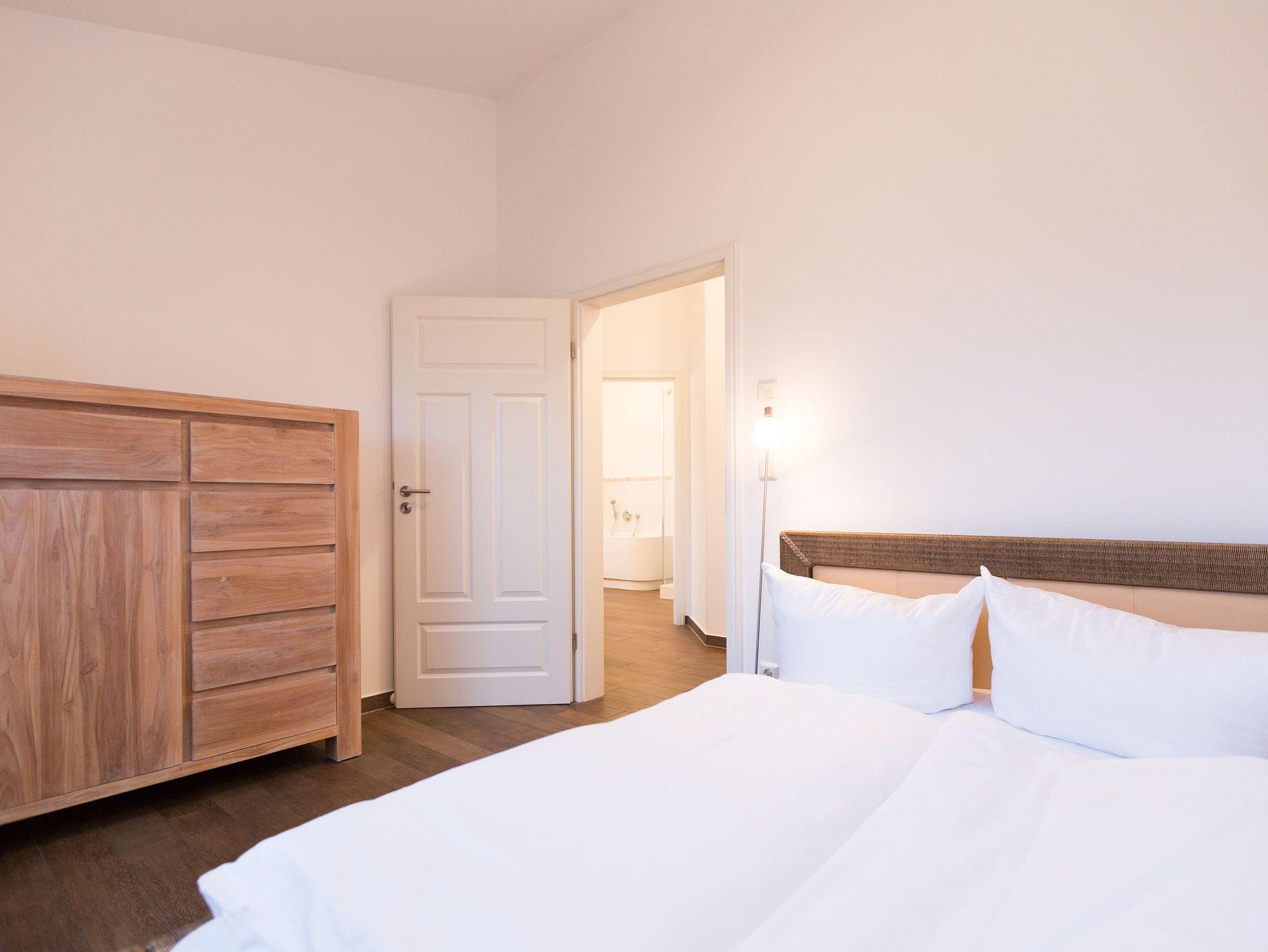 Im Penthouse der Neuen Villa Ernst wird Sie nicht nur die einmalige Lage begeistern. Ein helles Ambiente gepaart mit einer hochwertigen Ausstattung versprechen höchsten Urlaubsgenuss. Die moderne, voll ausgestattete offene Küche begeistert auch den anspruchsvollen Gast. Zum Frühstück empfiehlt sich der Ostbalkon mit ein wenig Blick auf die Ostsee. Das Penthouse verfügt über zwei Schlafzimmer mit Doppelbetten (1x 1,80 m / 1x 1,20 m) und bietet Platz für max. 3 Erwachsene und ein Kleinkind (bis 3 Jahre im Kinderreisebett). Auf Wunsch stellen wir für unsere kleinen Gäste ein Kinderreisebett (ohne zusätzliche Matratze [&] Bettzeug) und einen Kinderhochstuhl (gegen einen Aufpreis) zur Verfügung. Für Ihren Komfort sind die Betten bei der Anreise bezogen und Handtücher liegen bereit. Ein Openair Event erleben Sie auf der großen Süddachterrasse, mit Blick auf den Bansiner Schloonsee. Kostenfreies WLAN rundet Ihren Urlaub ab.