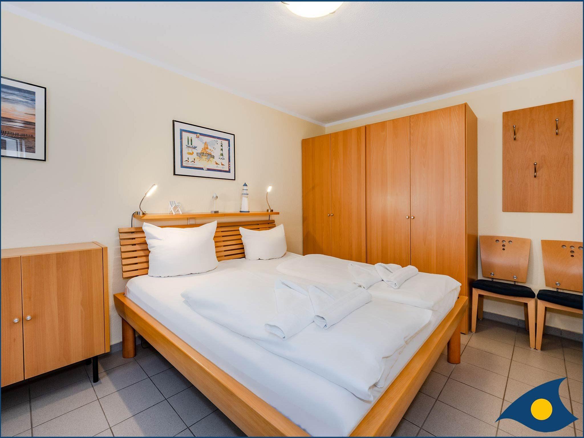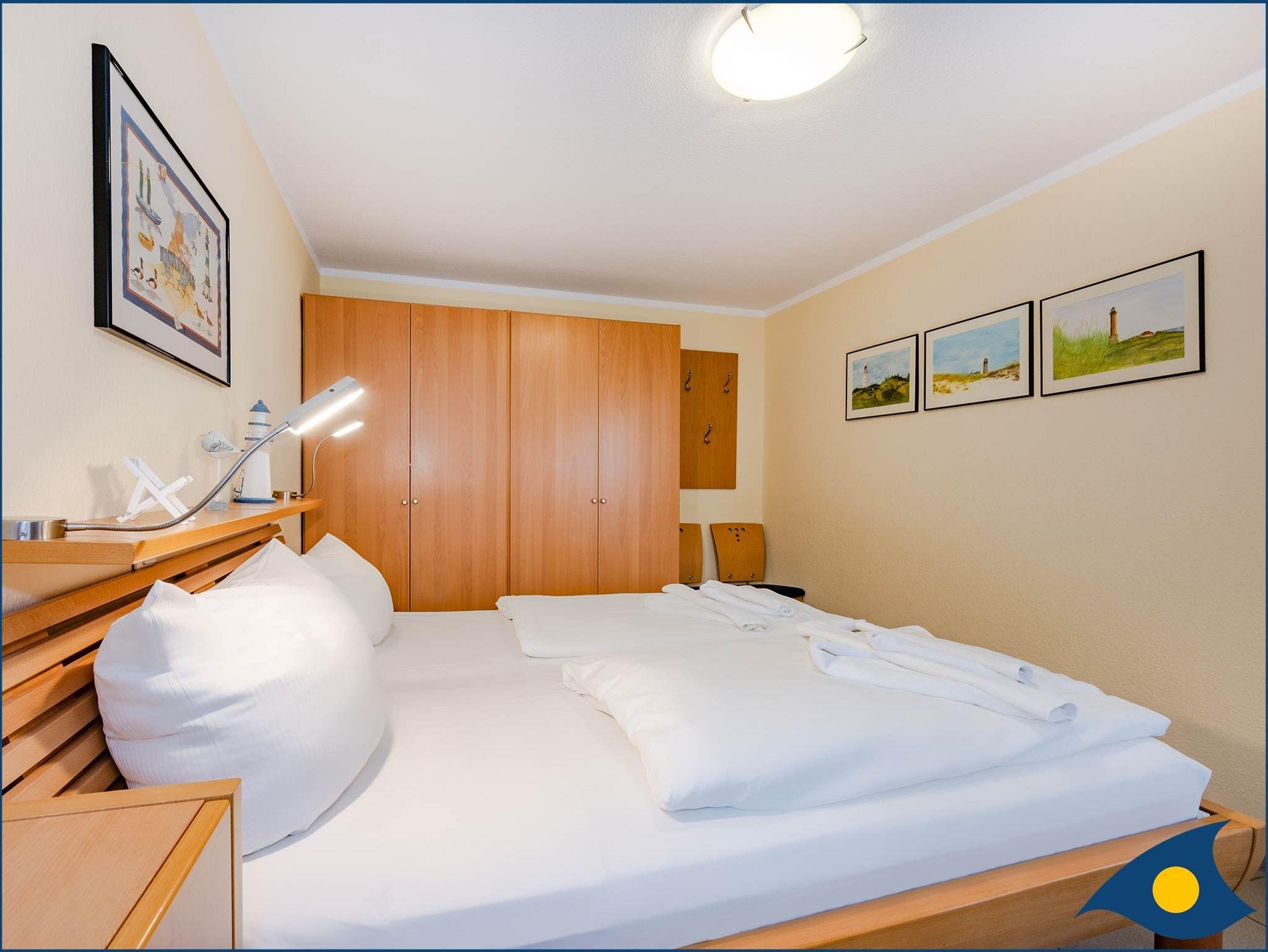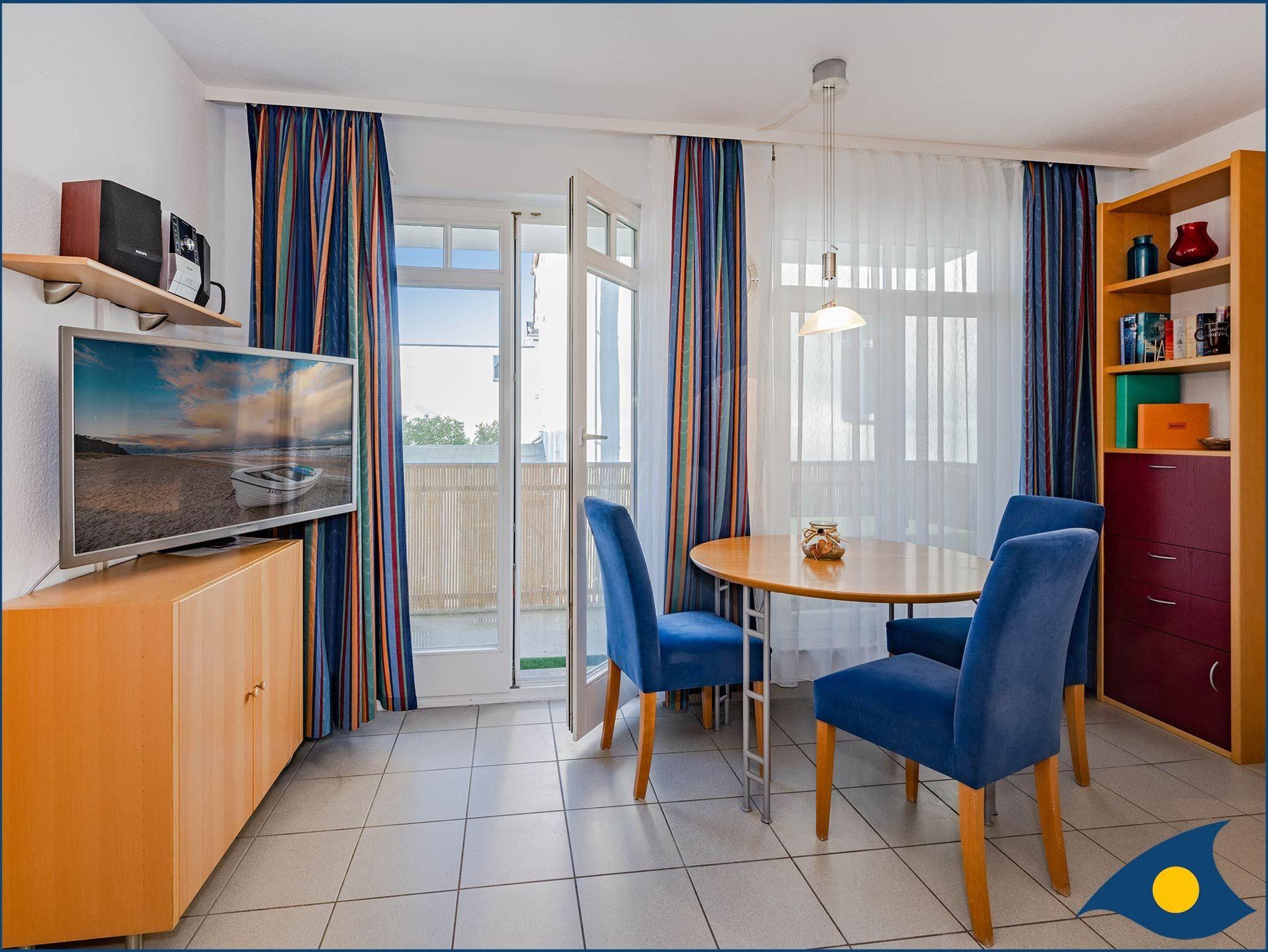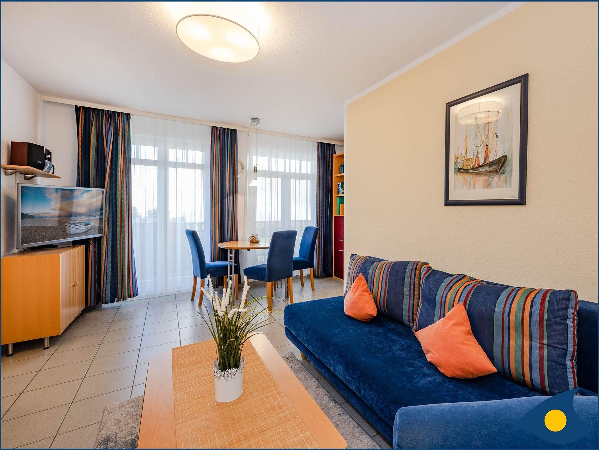 Diese liebevoll und hochwertig gestaltete 2-Raum-Ferienwohnung Pinta vermittelt Wohlfühl-Atmosphäre. Sie verfügt über ein Schlafzimmer mit TV, einem Wohnzimmer mit großem LED-TV, einer Doppelbettcouch, einer Sitzecke, einem separaten Essplatz, einer modernen Pantryküche mit Mikrowelle und Minibackofen und ein helles Dusch-Bad. Auf dem großen West-Balkon können Sie mit seitlichem Meerblick warme Sommertage genießen. Sie erreichen Ihr Domizil bequem mit dem Fahrstuhl. Waschmaschine, Trockner (geringe Gebühr) und Unterstellmöglichkeit für Fahrräder befinden sich im Haus (auf eigene Gefahr). Haustiere sind willkommen. Im Ort gibt es mehrere Fahrradverleiher.