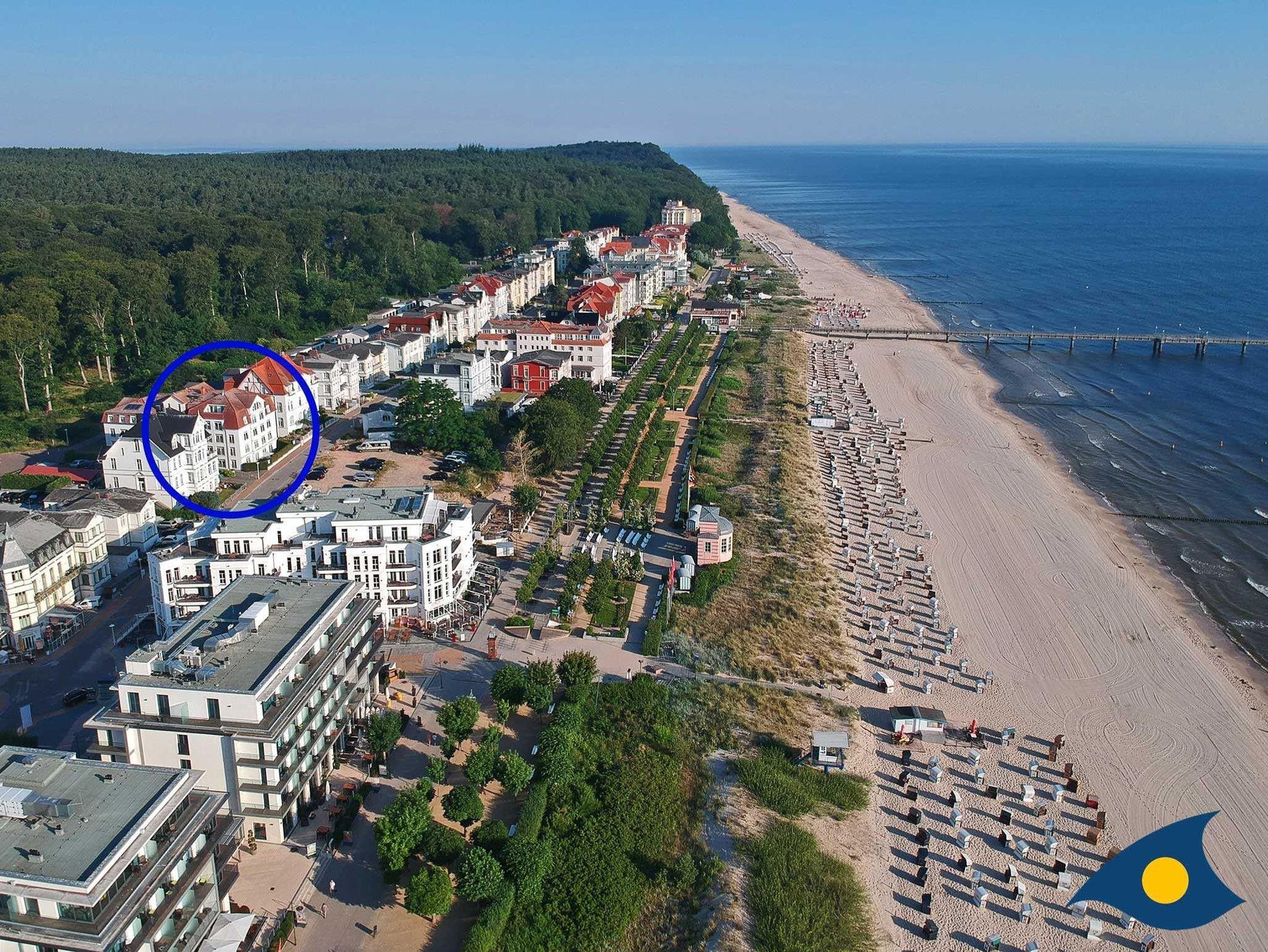 Das Haus befindet sich in der historischen Bergstraße nahe der Seestraße und bietet beste Voraussetzungen für einen erlebnisreichen Badeurlaub. Nach wenigen Metern erreichen Sie schon die Strandpromenade und dann den sauberen, feinsandigen Strand. Hinter dem Haus beginnt der herrliche Buchenwald, der zu Wanderungen und Fahrradtouren einlädt. Die Wohnungen bieten einen schönen Blick bis hinüber zum Meer.
