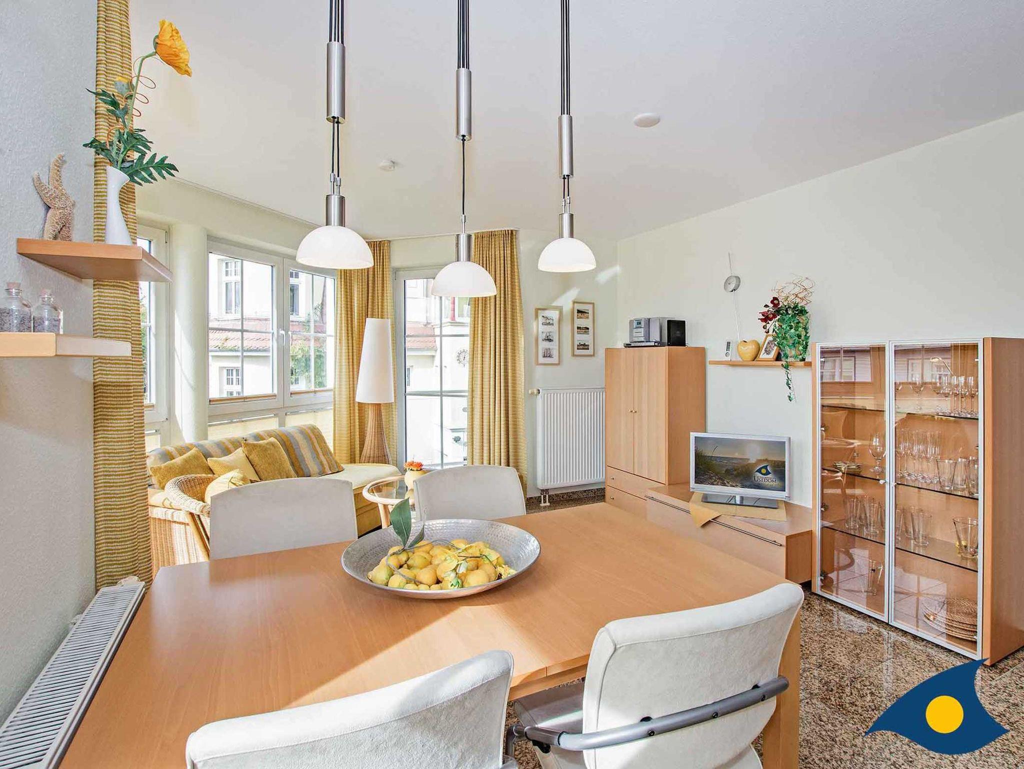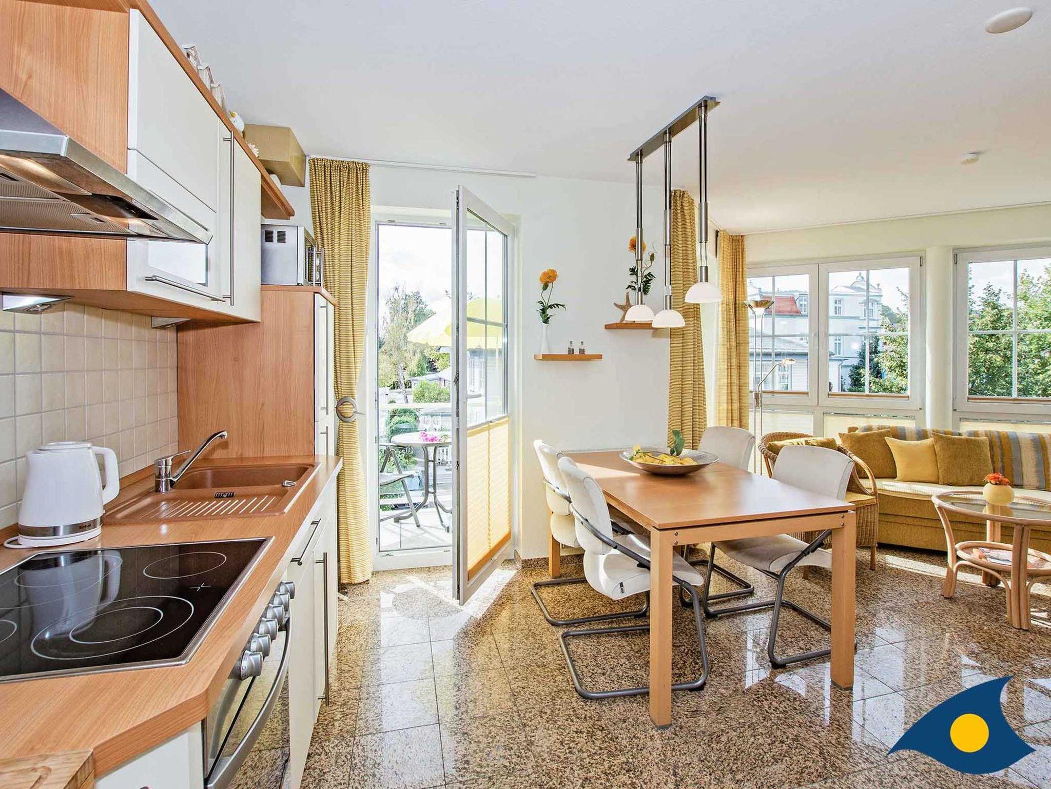 Im Flair des alten Kaiserbades finden Sie hier ein liebevoll eingerichtetes, lichtdurchflutetes Wohn- und Esszimmer mit hochwertigen Möbeln und komplett ausgestatteter Küchenzeile inkl. Geschirrspüler vor, welches keine Wünsche für einen entspannten Urlaub offen lässt.