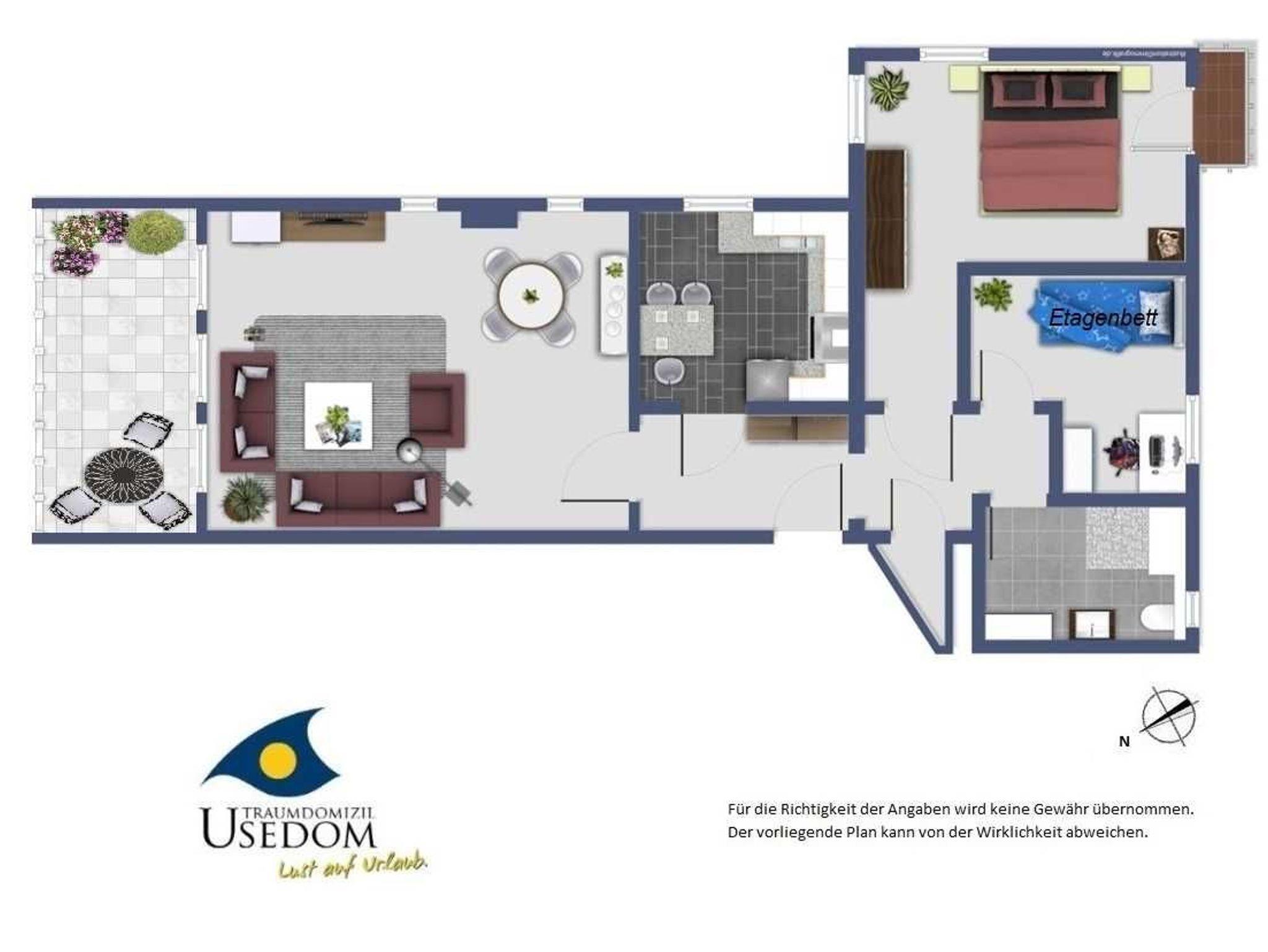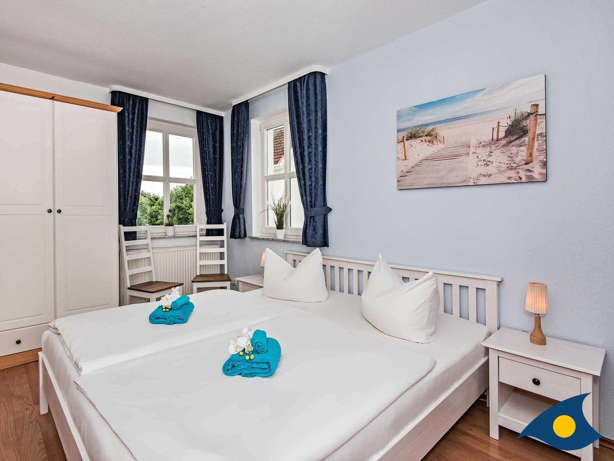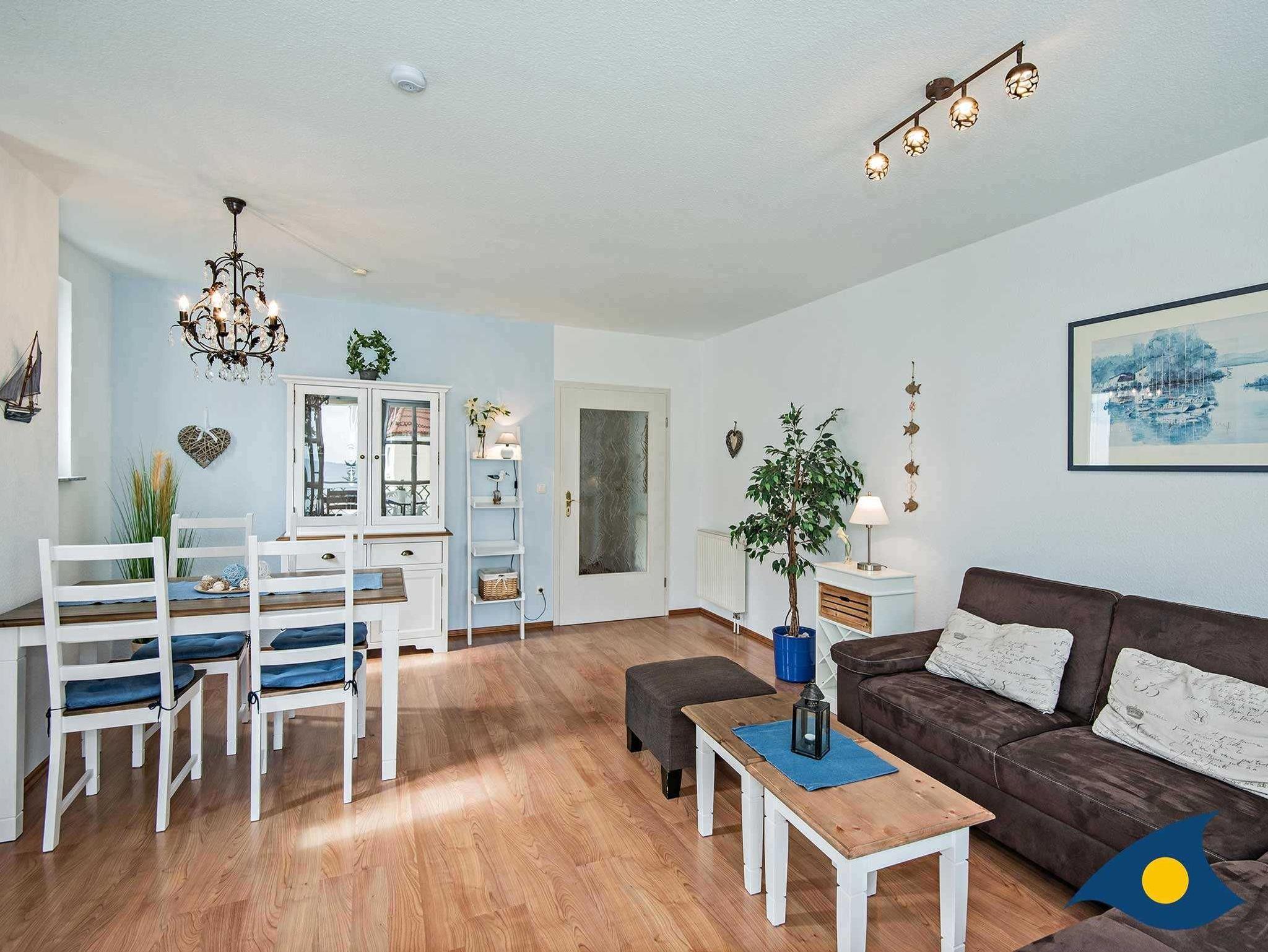 Die hochwertige Einrichtung wurde mit hübschen maritimen Accessoires ergänzt. Die separate Küche bietet einen weiteren Essplatz für ein schnelles Frühstück, einen Herd mit vier Kochplatten incl. Backofen und eine Spülmaschine.