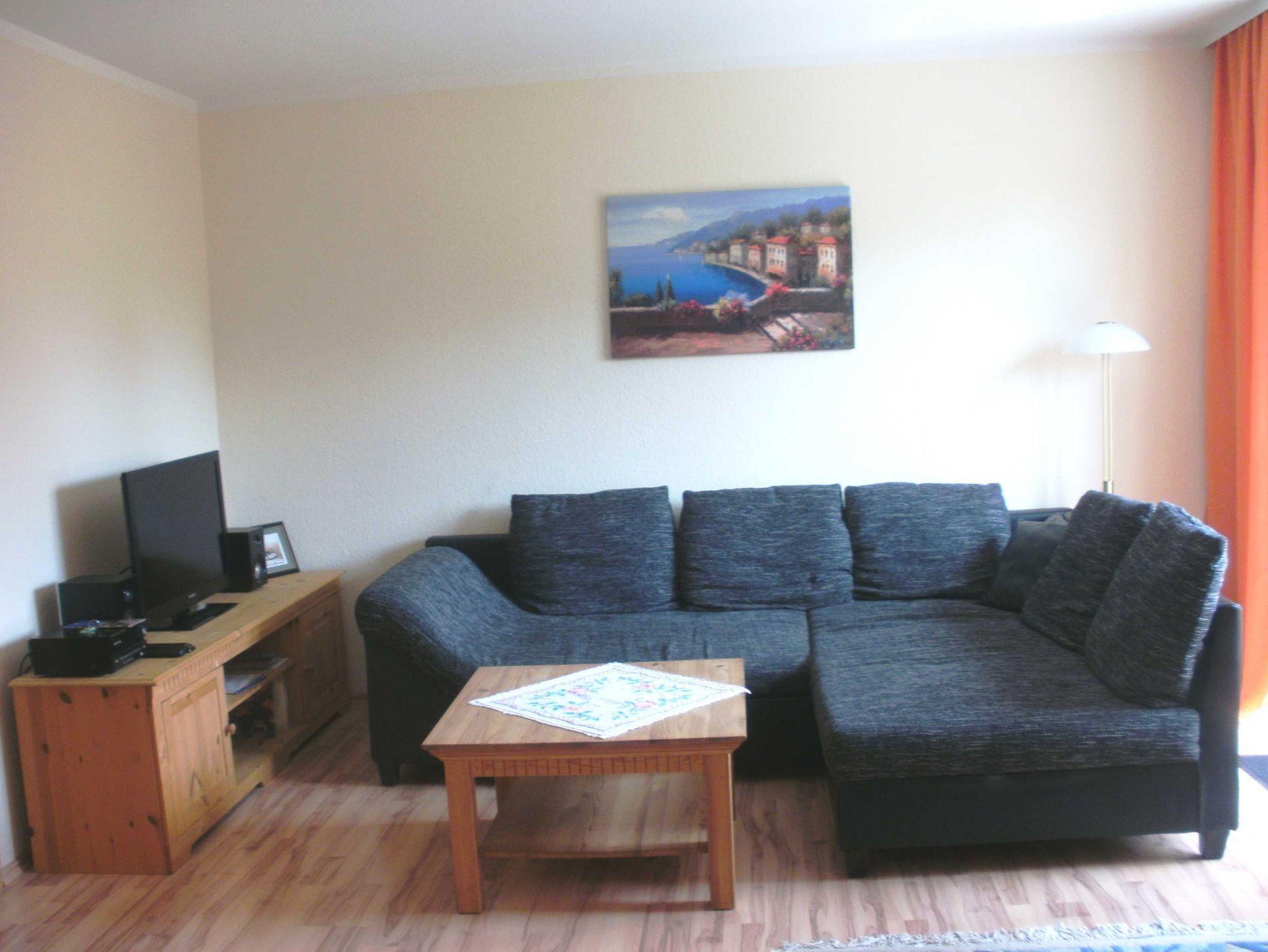 Gemütliche, sonnige und komfortable 2-Zimmer-Wohnung im Landhausstil mit Balkon im ersten Obergeschoss der zweigeschössigen Ferienresidenz Aquamarina Ein großes Wohnzimmer, Einbauküche mit Geschirrspüler, Essecke, Sitzgruppe mit Schlafcouch für 1 - 2 Personen, Laminat, Kabel-LED-TV, CD-Radio, sowie ein großes Schlafzimmer und ein modernes Duschbad begrüßen Sie aufs herzlichste.