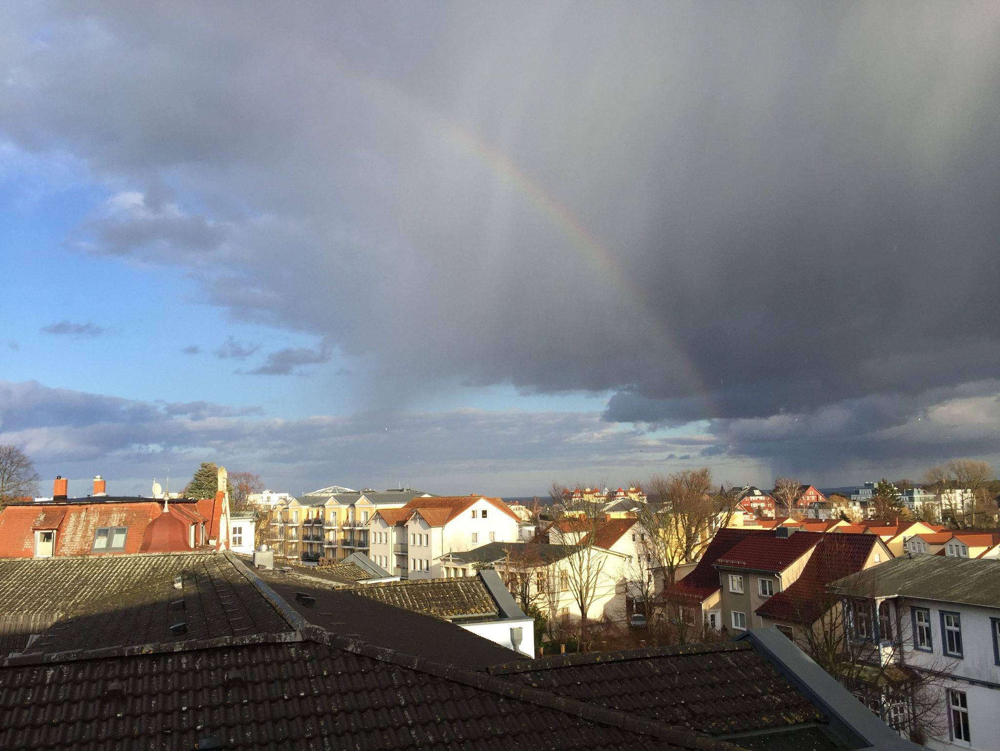Der Frühstücksplatz bietet einen phantastischen Panoramablick bis auf die Ostsee. Die Wohnung ist mit 2 Bädern ausgestattet (einschl. WaMa)