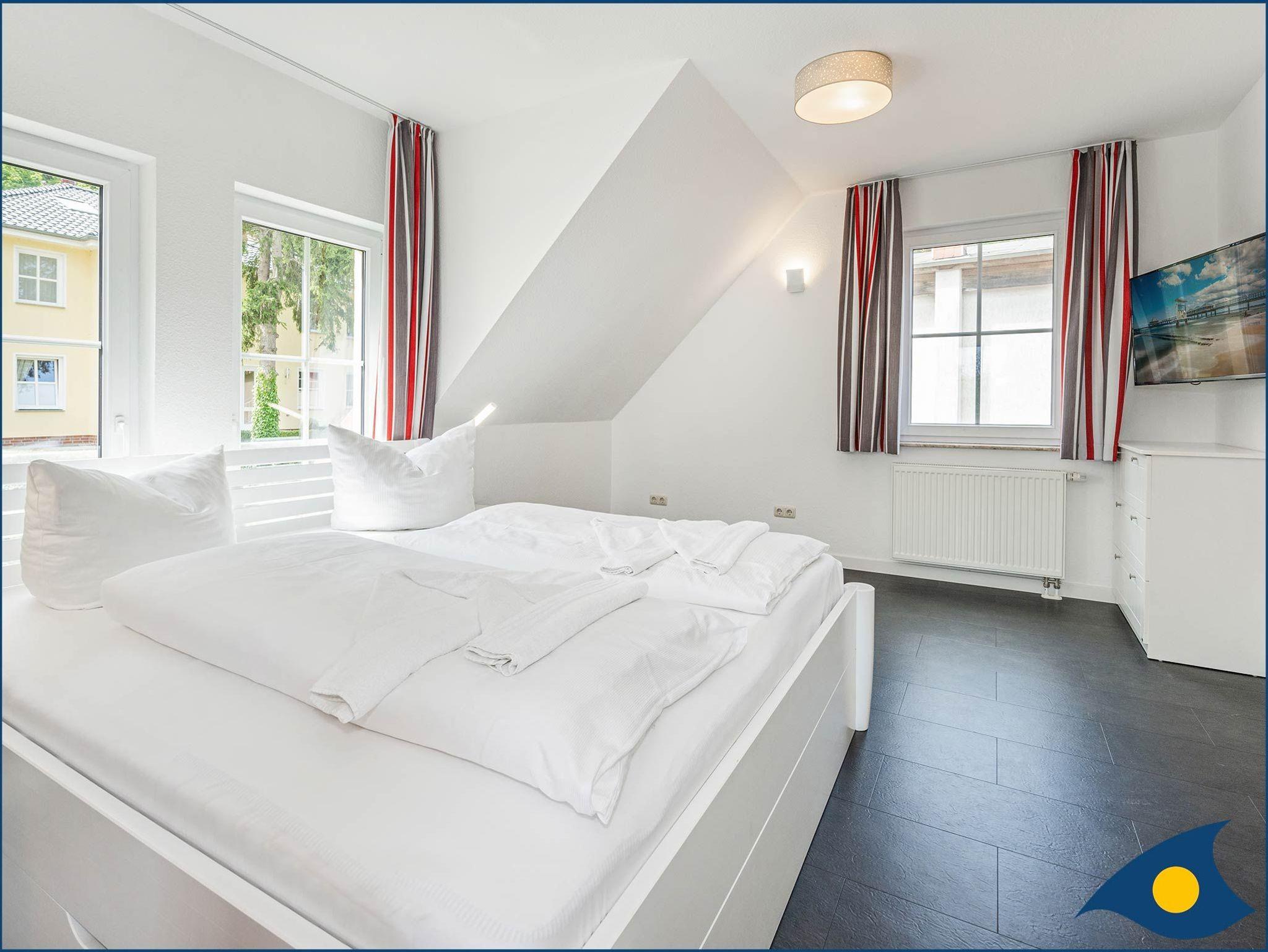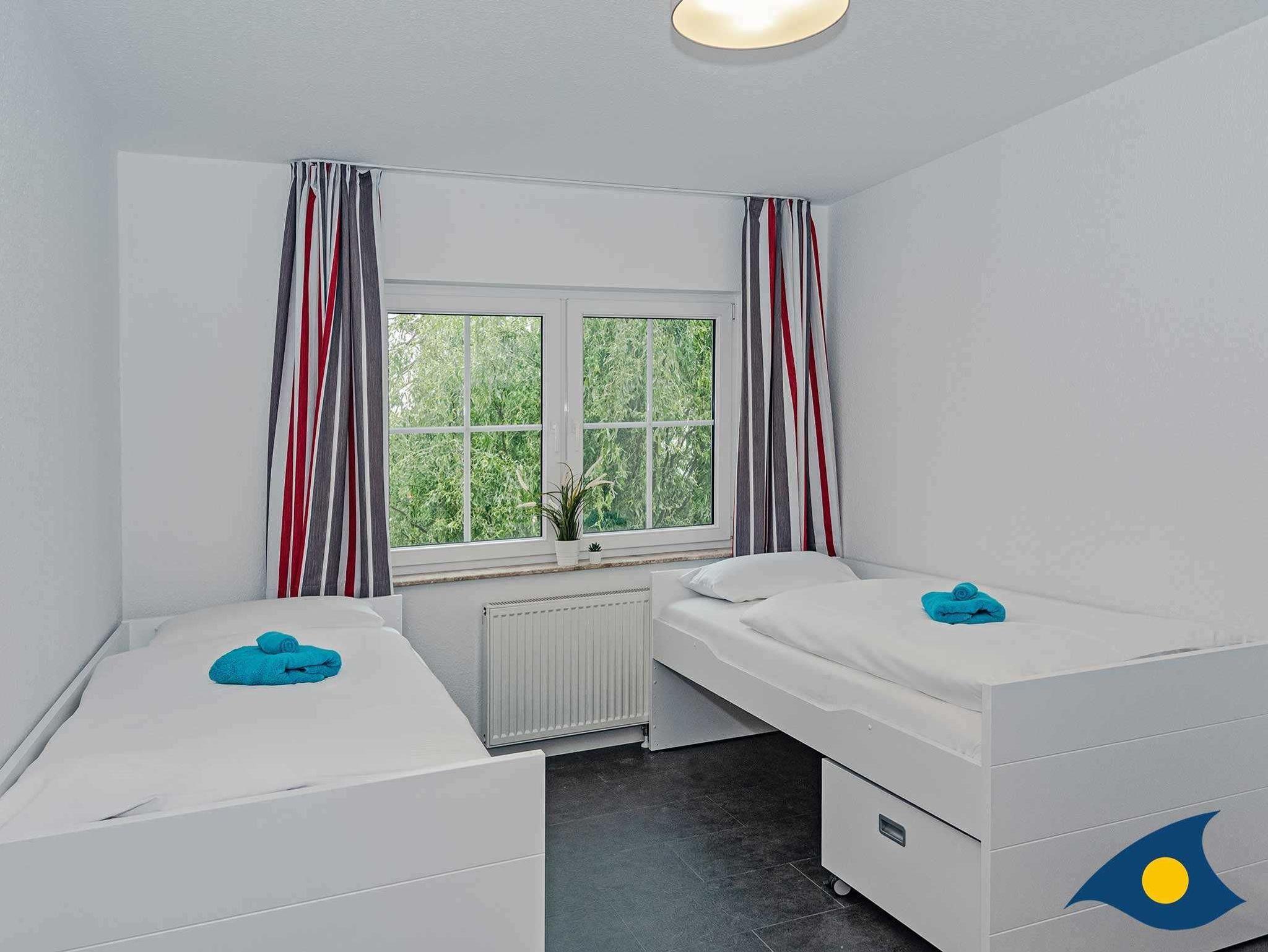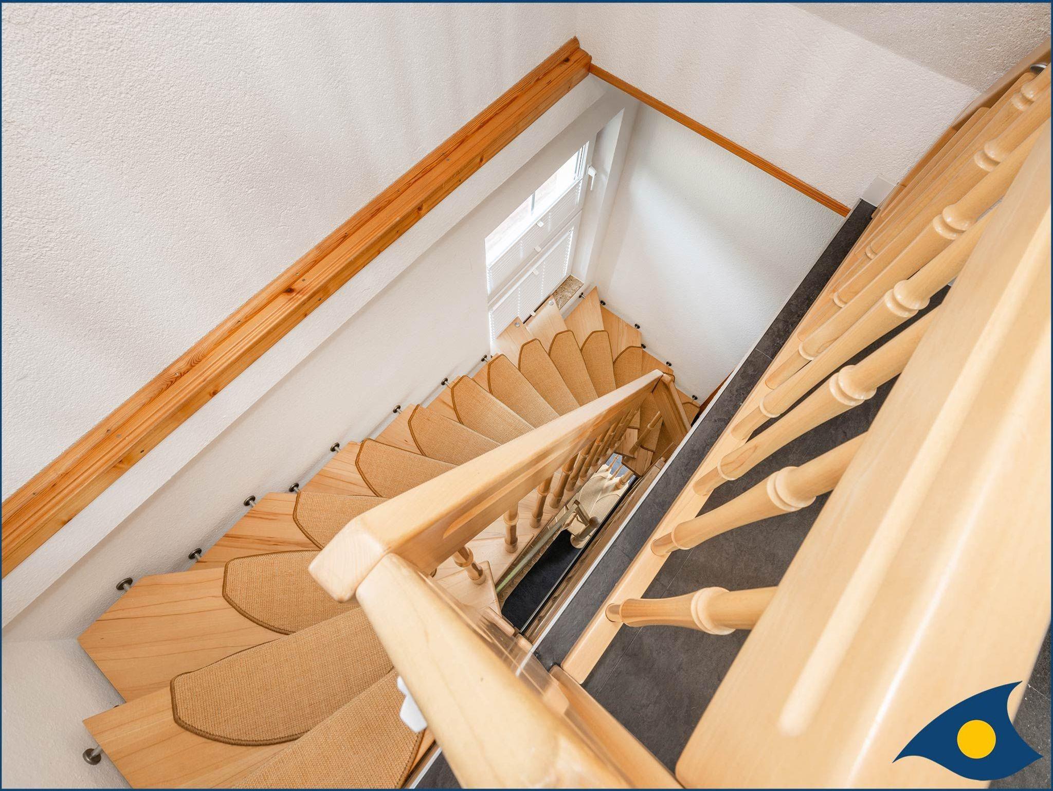 Vom Hausflur aus gelangt man in das Duschbad, sowie in die obere Etage. Das Highlight der ersten Etage ist das geschmackvoll gestaltete Vollbad mit Waschmaschine. Bei einem heißen Bad können Sie die Seele baumeln lassen und den Alltagsstress vergessen. Zwei separate Schlafzimmer, eins mit einem Doppelbett, sowie eins mit zwei Einzelbetten schaffen den nötigen Raum zur Erholung. Ausreichend Platz für Ihre Urlaubsgarderobe finden Sie dabei in den zahlreichen Schränken und großzügig geschnittenen Bettkästen.