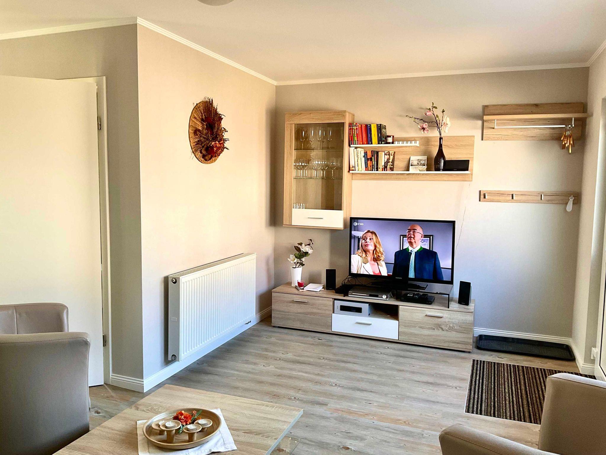 Zur Ausstattung zählen im Wohnzimmer ein Flachbild-TV mit DVD-Player, Stereoanlage, Bücher für Erwachsene und Kinder, Brettspiele u.v.m. Eine Radwanderkarte wird selbstverständlich für die Erkundung der Insel zur Verfügung gestellt.