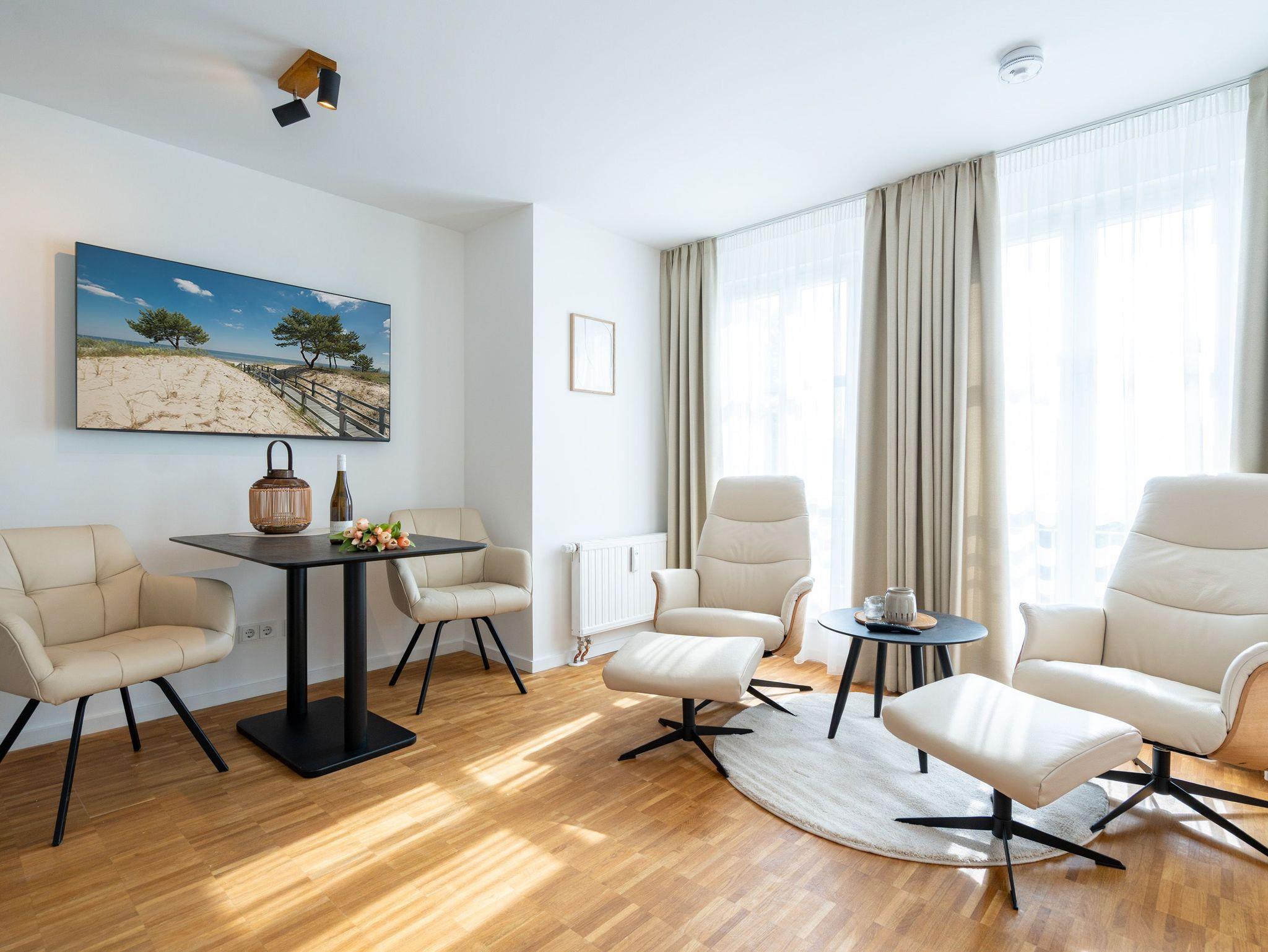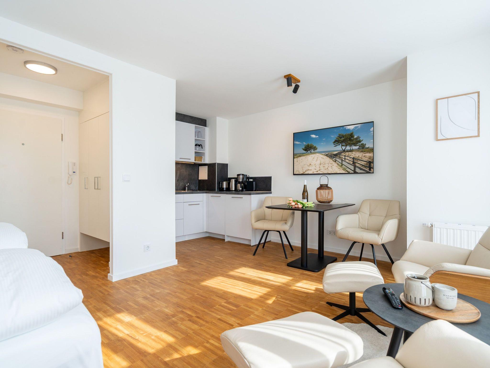 Charmantes 1-Raum-Appartement in Bansin mit moderner Küche, WLAN, Sauna und Parkplatz – ideal für eine entspannte Auszeit zu zweit.