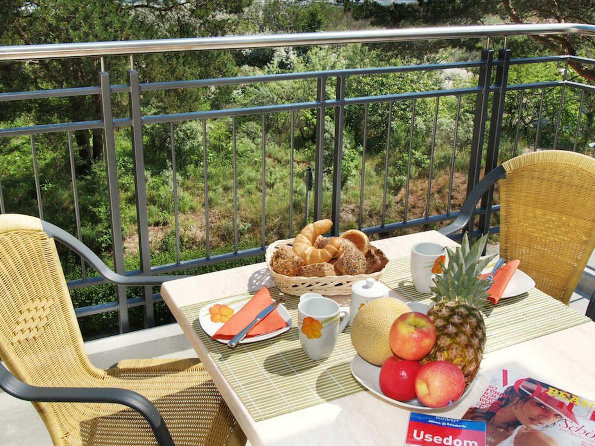 Moderne stilvolle 2 Zimmerferienwohnung ca. 2 - 4 Personen. Wohnzimmer mit TV, CD Eßplatz und integrierter Einbauküche mit Geschirrspüler. Die Wohnung besitzt einen großen sonnigen Südbalkon.Vom Balkon haben Sie einen Blick auf die Ostsee.