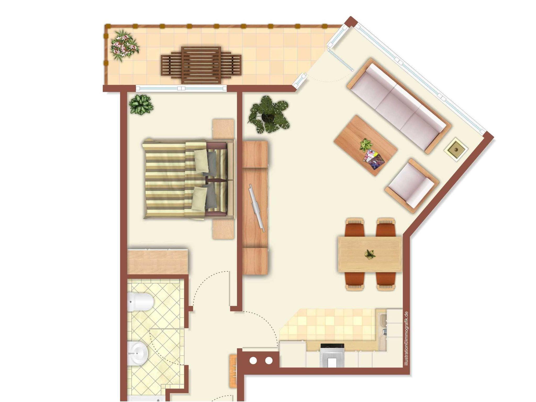 Dieses wunderschöne, modern eingerichtete Zweiraumappartement bietet beste Voraussetzungen für entspannte Urlaubstage auf der Sonneninsel. Auf dem Balkon können Sie die herrliche Nachmittagssonne genießen. Für die dritte und vierte Person steht im Wohnzimmer einen bequeme Schlafcouch zur Verfügung.