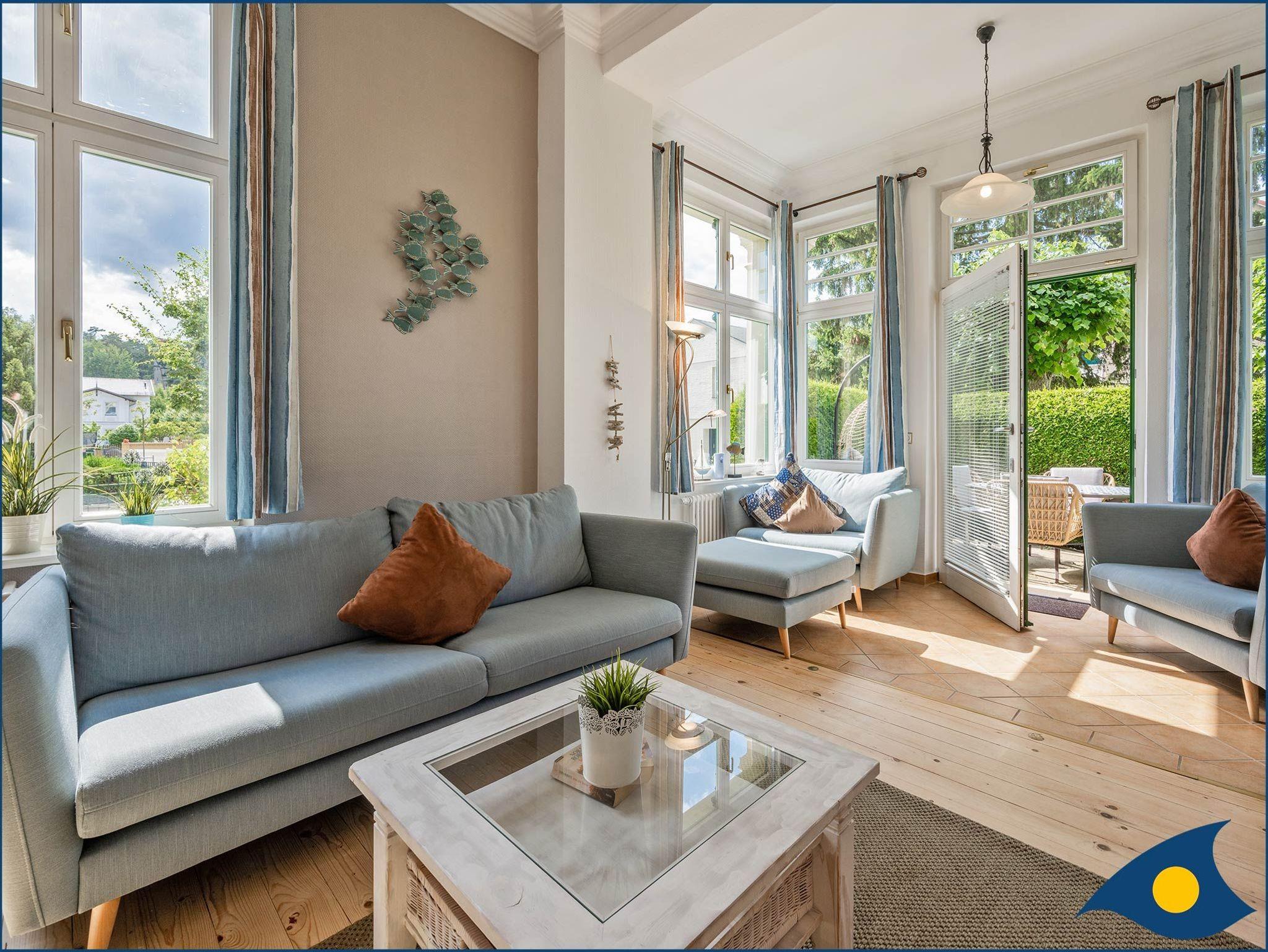 Die Villa Waldblick besticht durch ihre originalgetreu sanierte Fassade im Bäderstil. Fast alle Balkone sind nach Süden ausgerichtet, die Wohnungen sind hell und sonnig, kein Baumbestand verdunkelt die Räume. Die Appartements wurden stilgerecht, liebevoll und hochwertig eingerichtet. Kleine Accessoires sorgen für individuelle Gemütlichkeit. Großzügige Landhausküchen mit Essecken laden in einigen Wohnungen zum Beisammensein ein. Der Grillplatz im Garten kann von allen Mietern genutzt werden. Zu jeder Wohnung gehört ein kostenloser PKW-Stellplatz direkt am Objekt.